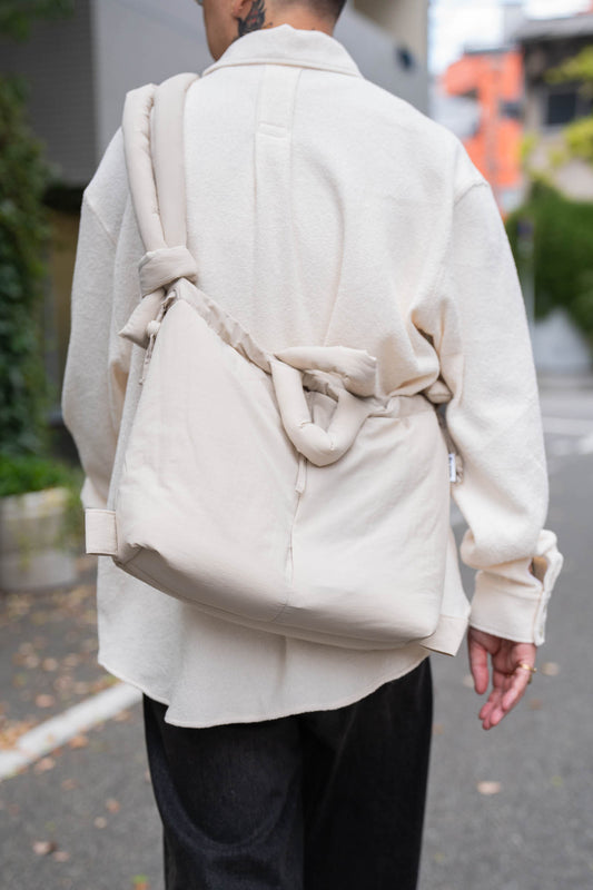 大丸隆平が設立した大丸製作所(oomaru seisakusho)が手掛けるユニセックスブランド「オーバーコート(OVERCOAT)」。 ニューヨークファッションウィークでのコレクション発表を続けながら、2021年春夏コレクションで初めて東京で単独の展示会を開催。 パタンナーとして経験を積んだ大丸は、布と人間との間に生じる「ゆとり」のデザインをクリエイションの軸として持っているという。 その上で、自身の拠点である「ニューヨークを着る」という制限を自らのアウトプットに課した結果としてオーバーコートが生まれた。 「ニューヨークの景観ということだけではなく、都市が持つ"ダイナミックさ"や"ダイバーシティ"を感じるニューヨークを表現したい」と語る。