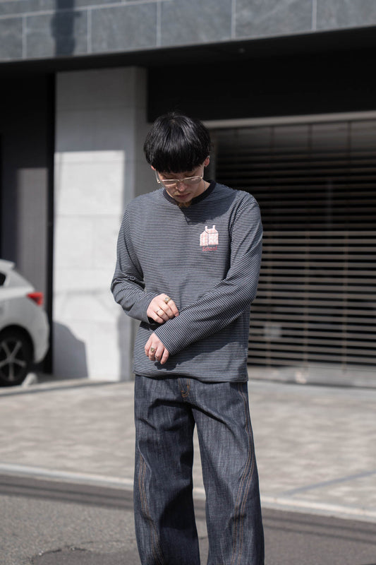 Hand-Embroidered Stripe Long Sleeve T-Shirt