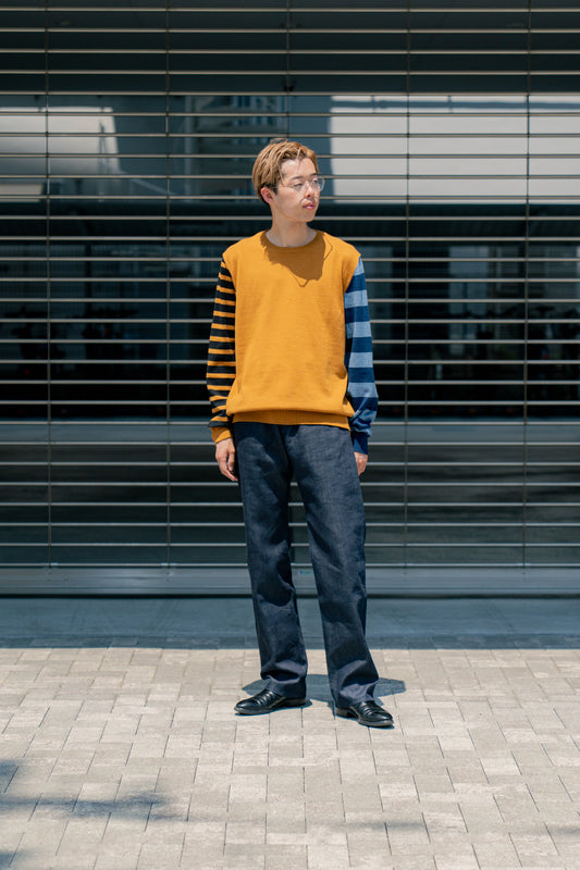 COTTON CASHMERE BORDER SLEEVE SWEATER