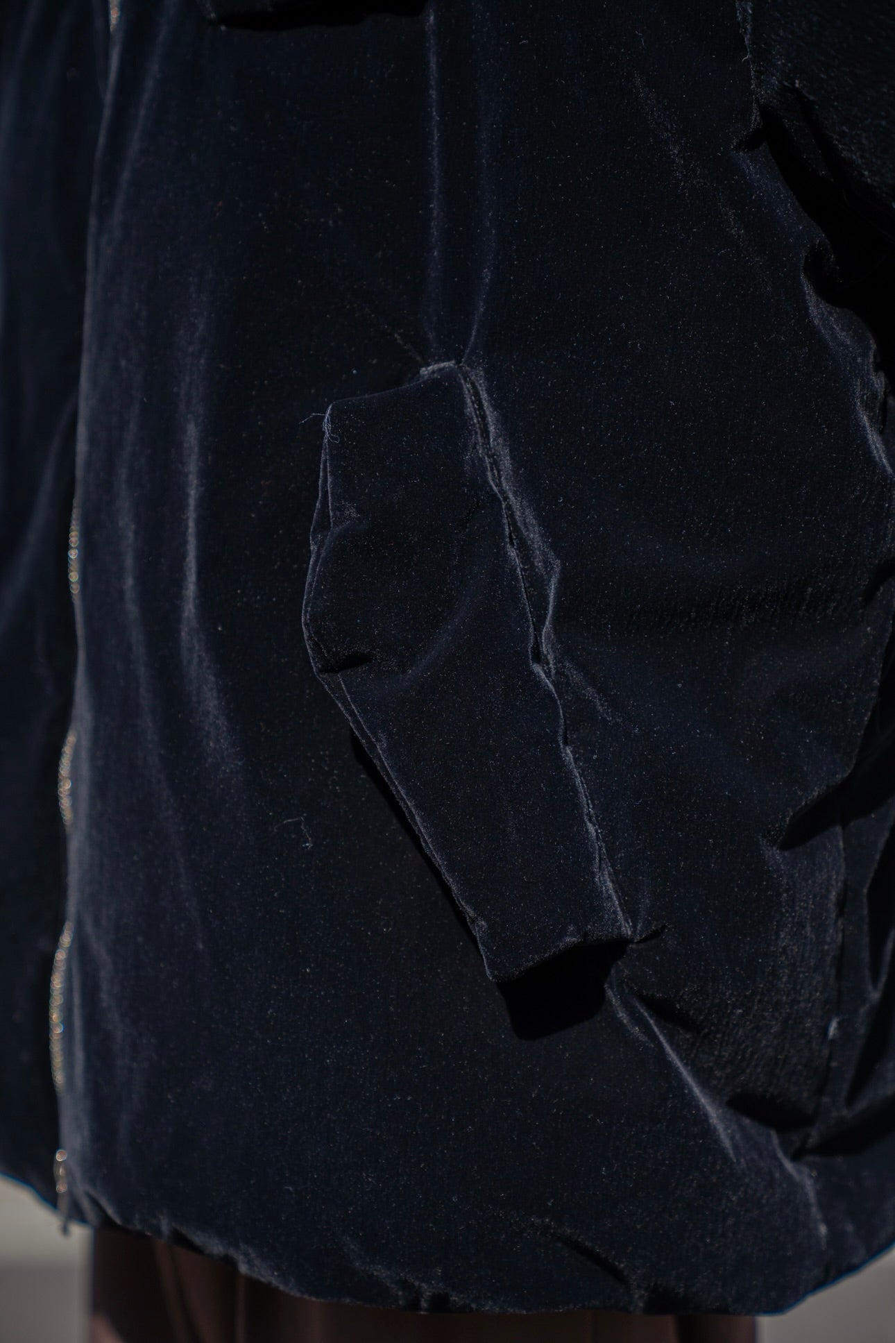 高級感のあるファスナークロージャー、ゴムパイピング、メタポケット、たくさんの背面のダーツ、ラウンドシルエット、ギャザーライニング、マシーンウォッシャブル。