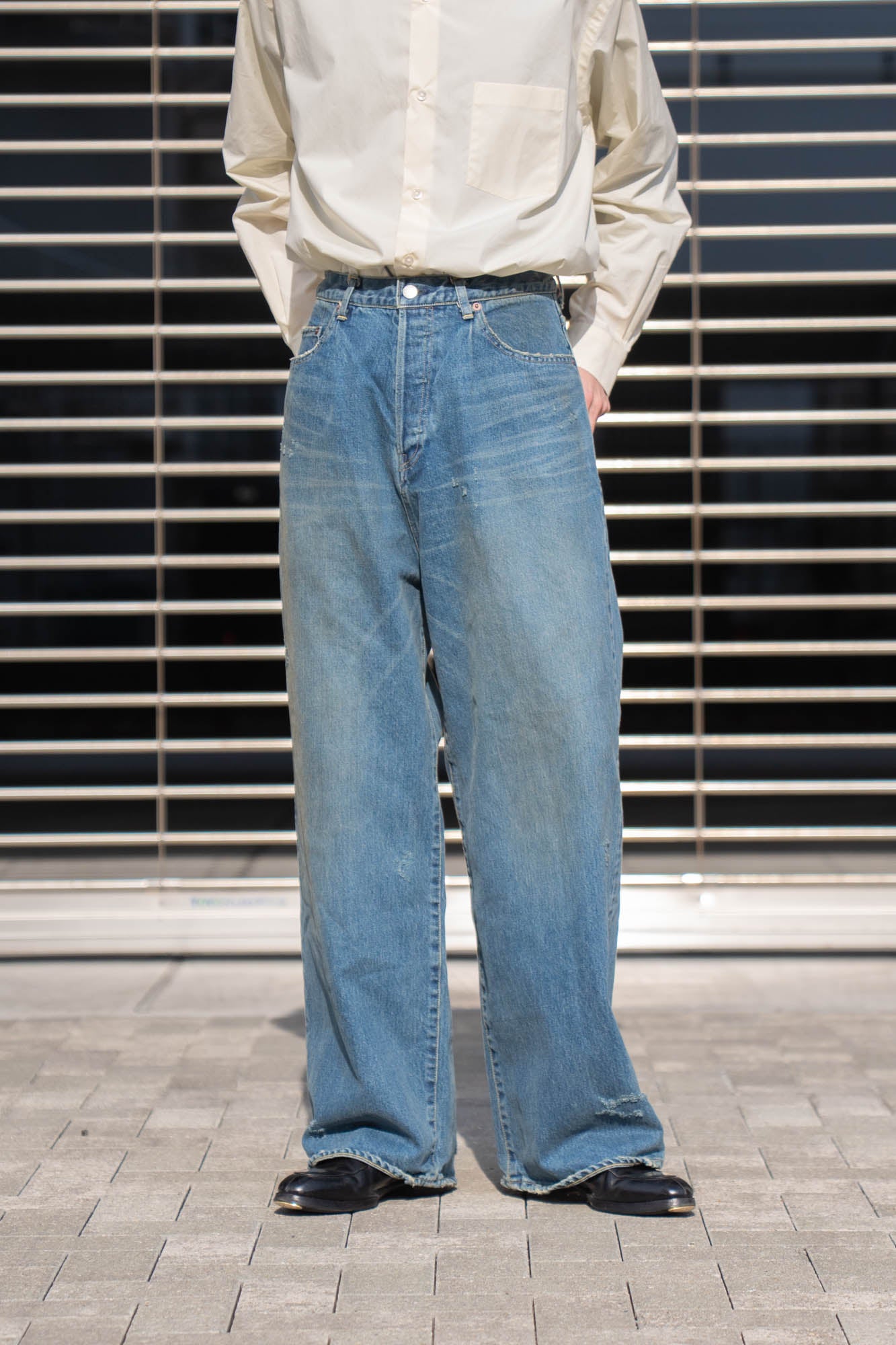 様々な加工を施し、奥行きのあるデニムの表情に仕上げ、ベルトループから縫製箇所まで細かく入るダメージ感も魅力です。