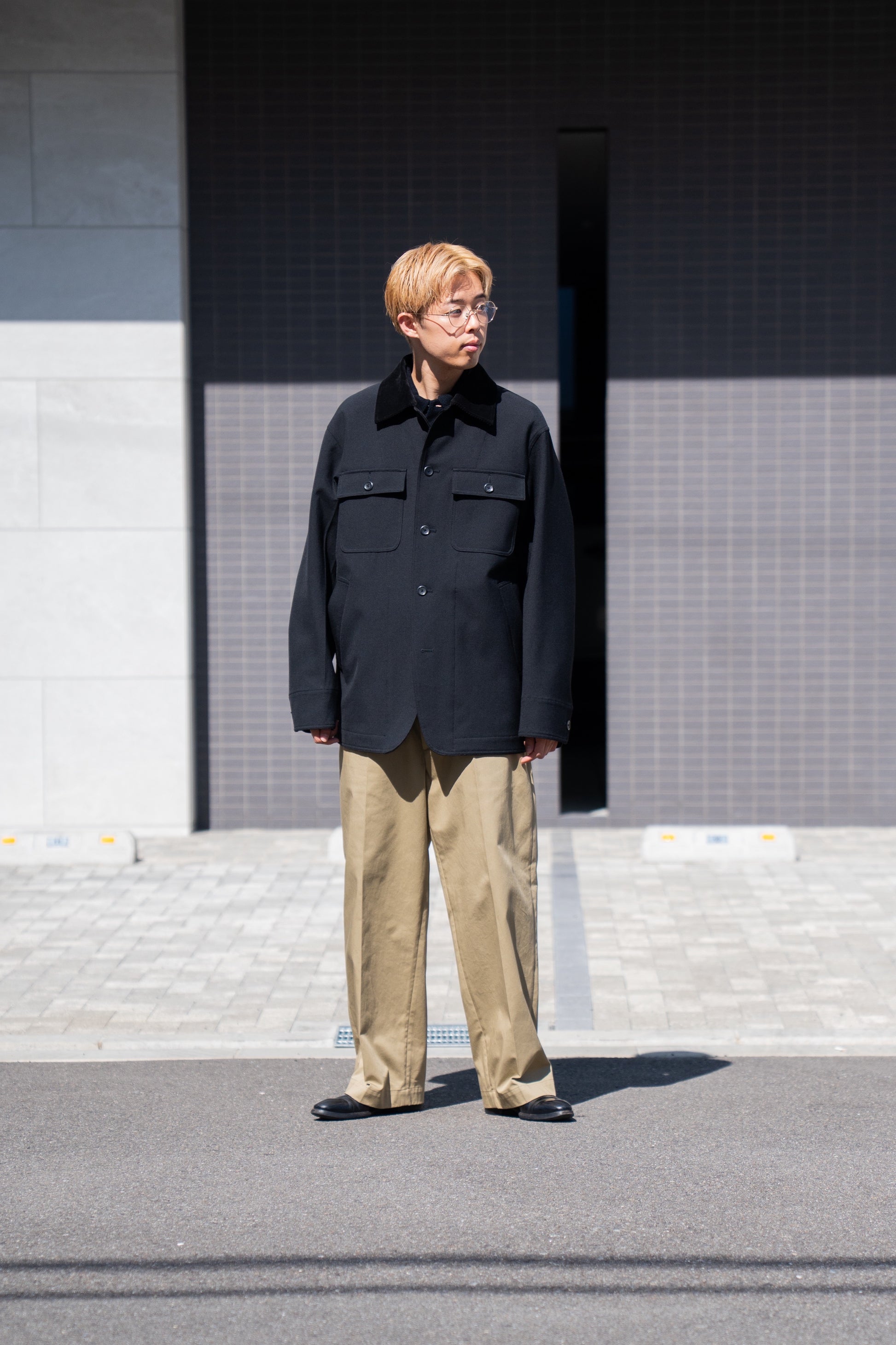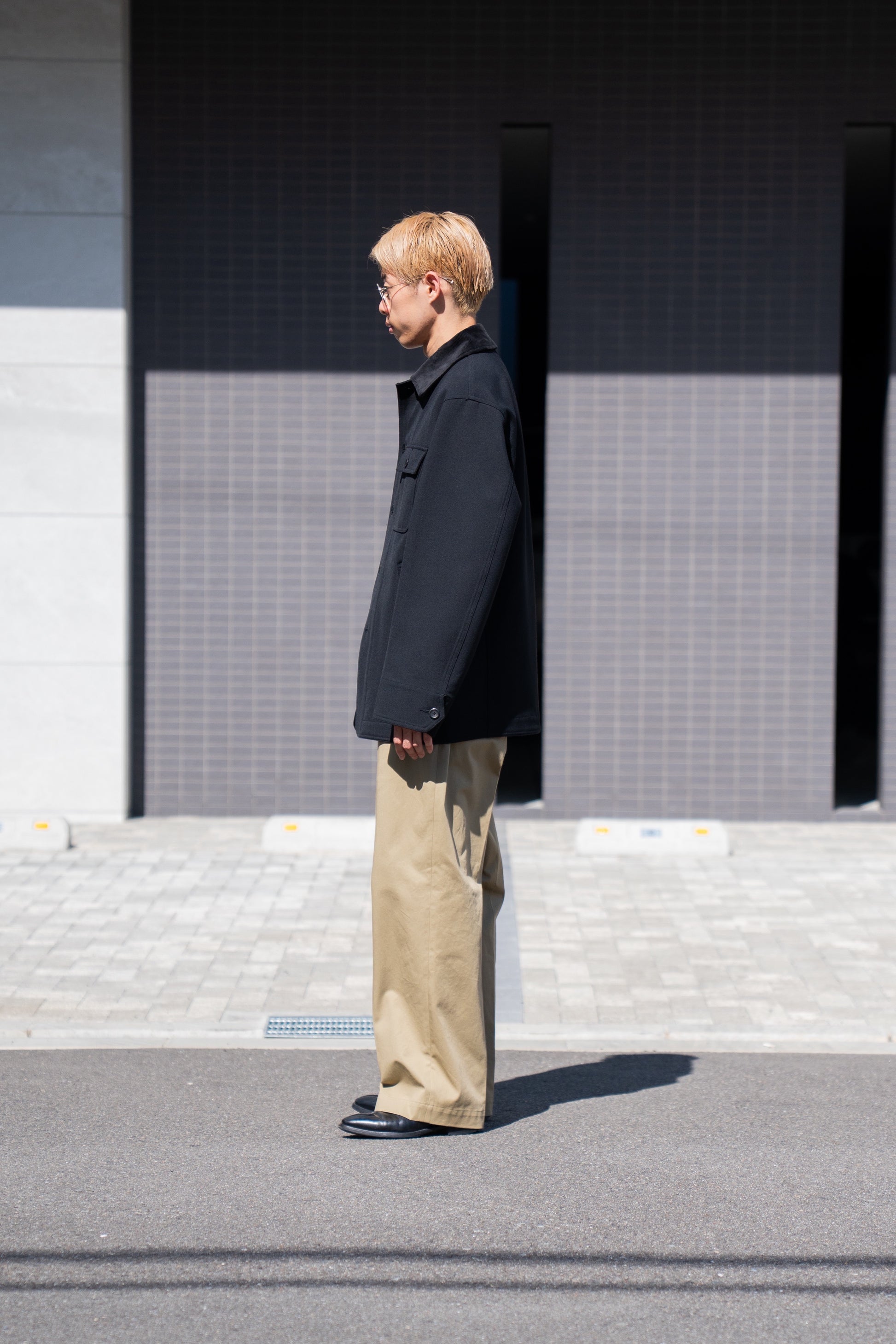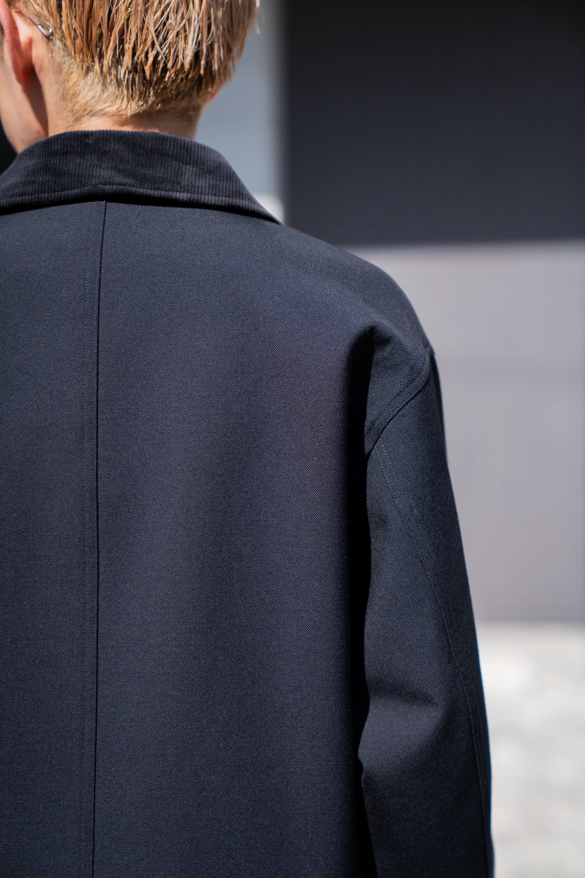 異素材を貼り合わせることで生地にハリが生まれ、立体的なシルエットを作ることができ、また形状安定性も高いためシワも入りにくい素材となっています。