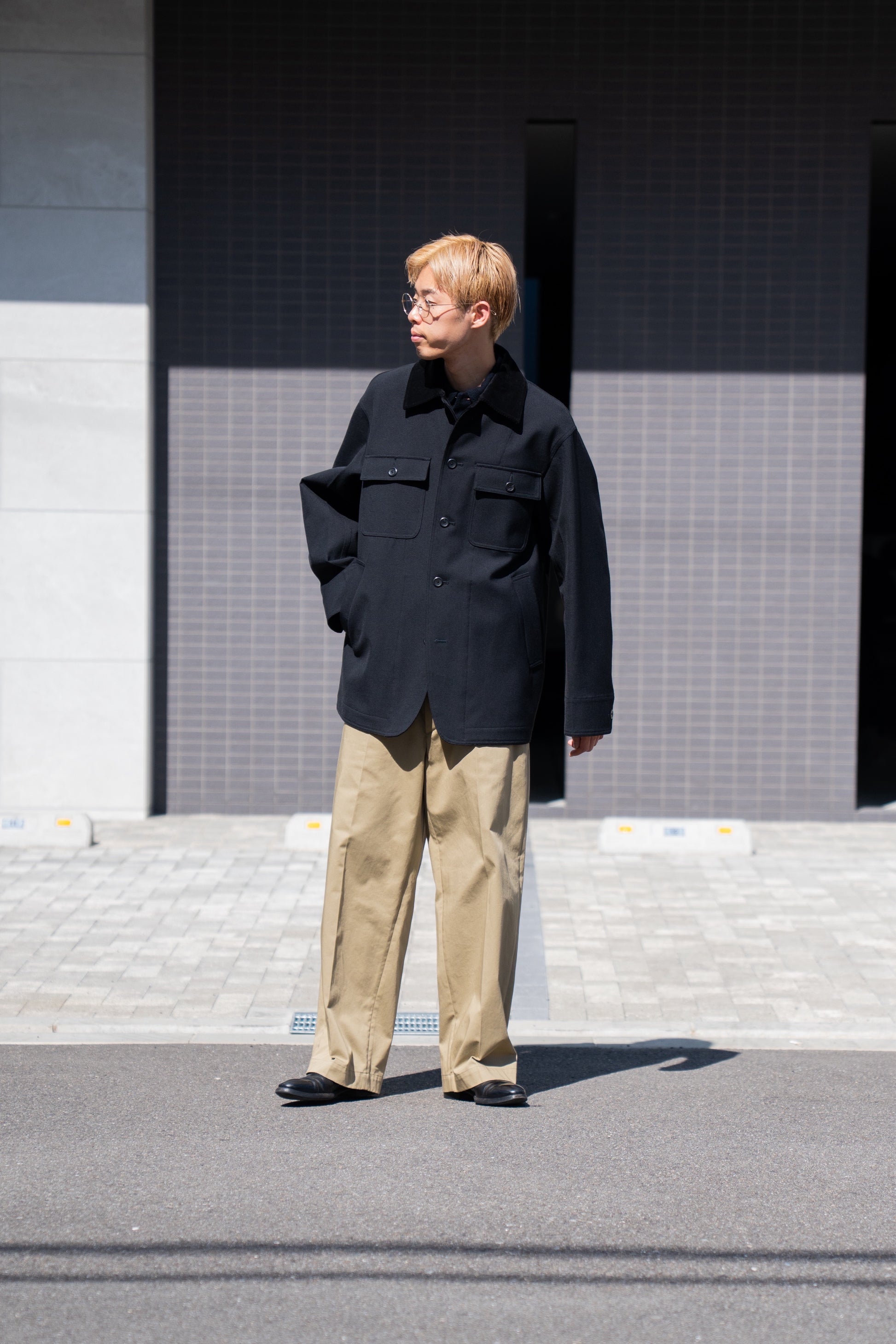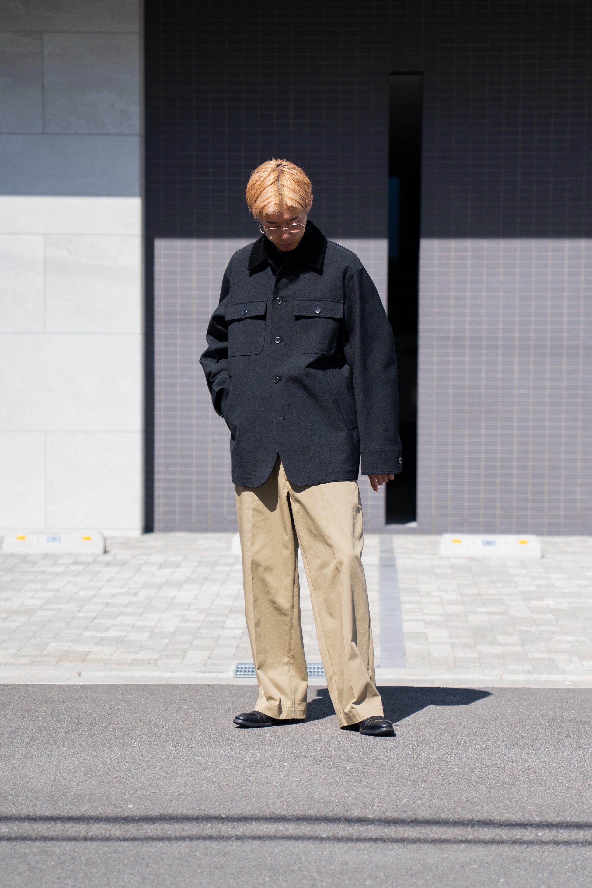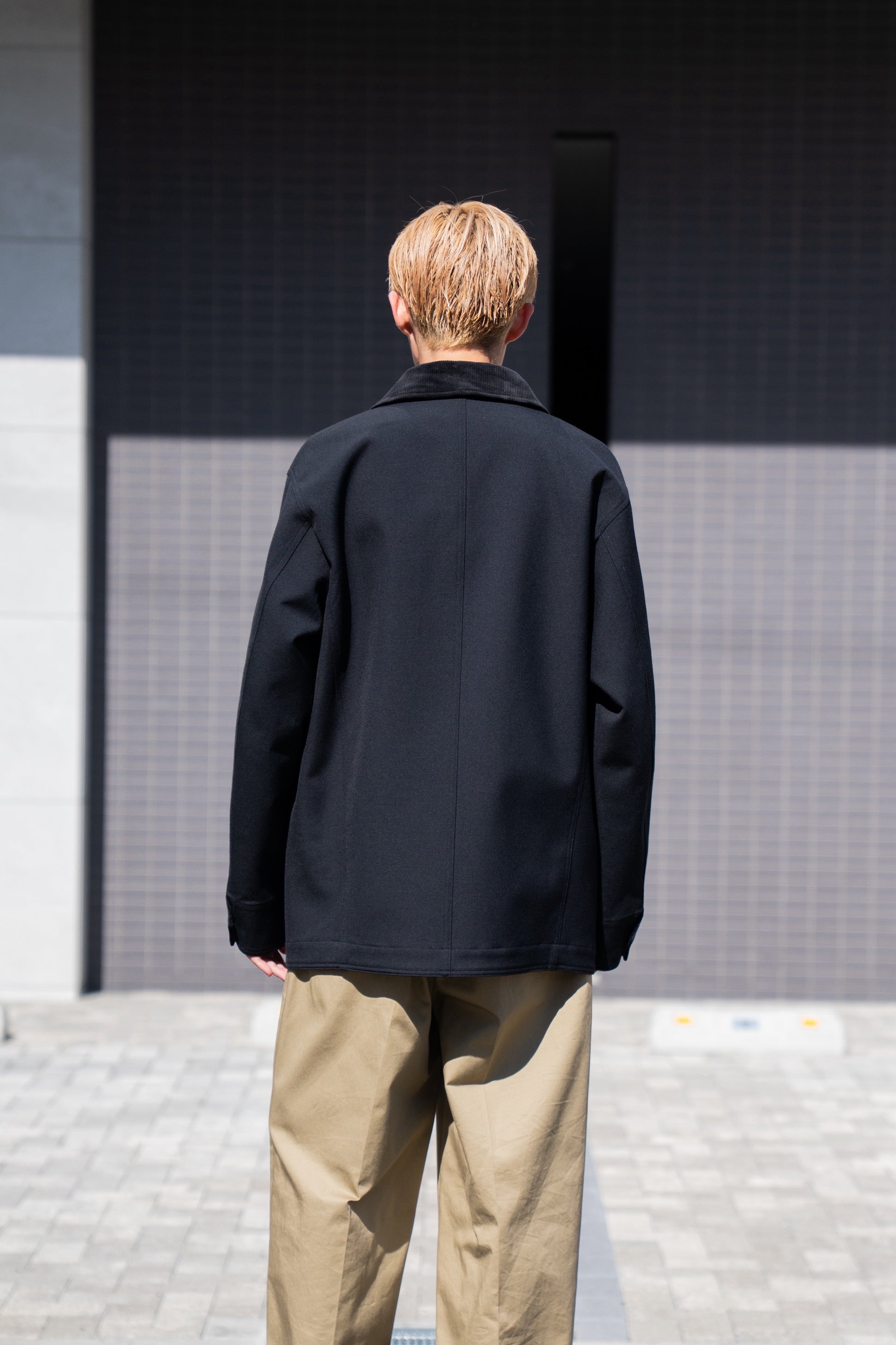 異素材を貼り合わせることで生地にハリが生まれ、立体的なシルエットを作ることができ、また形状安定性も高いためシワも入りにくい素材となっています。