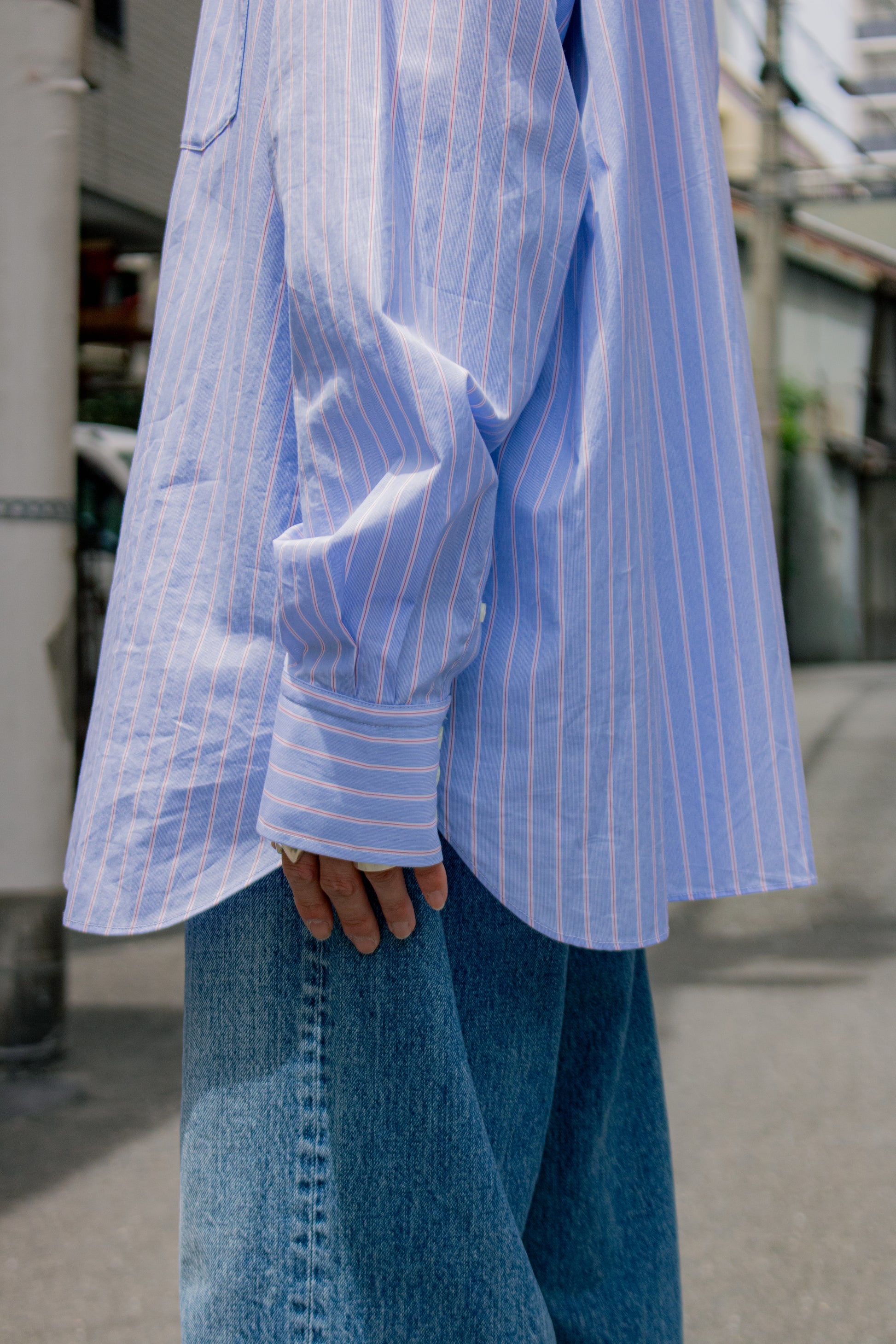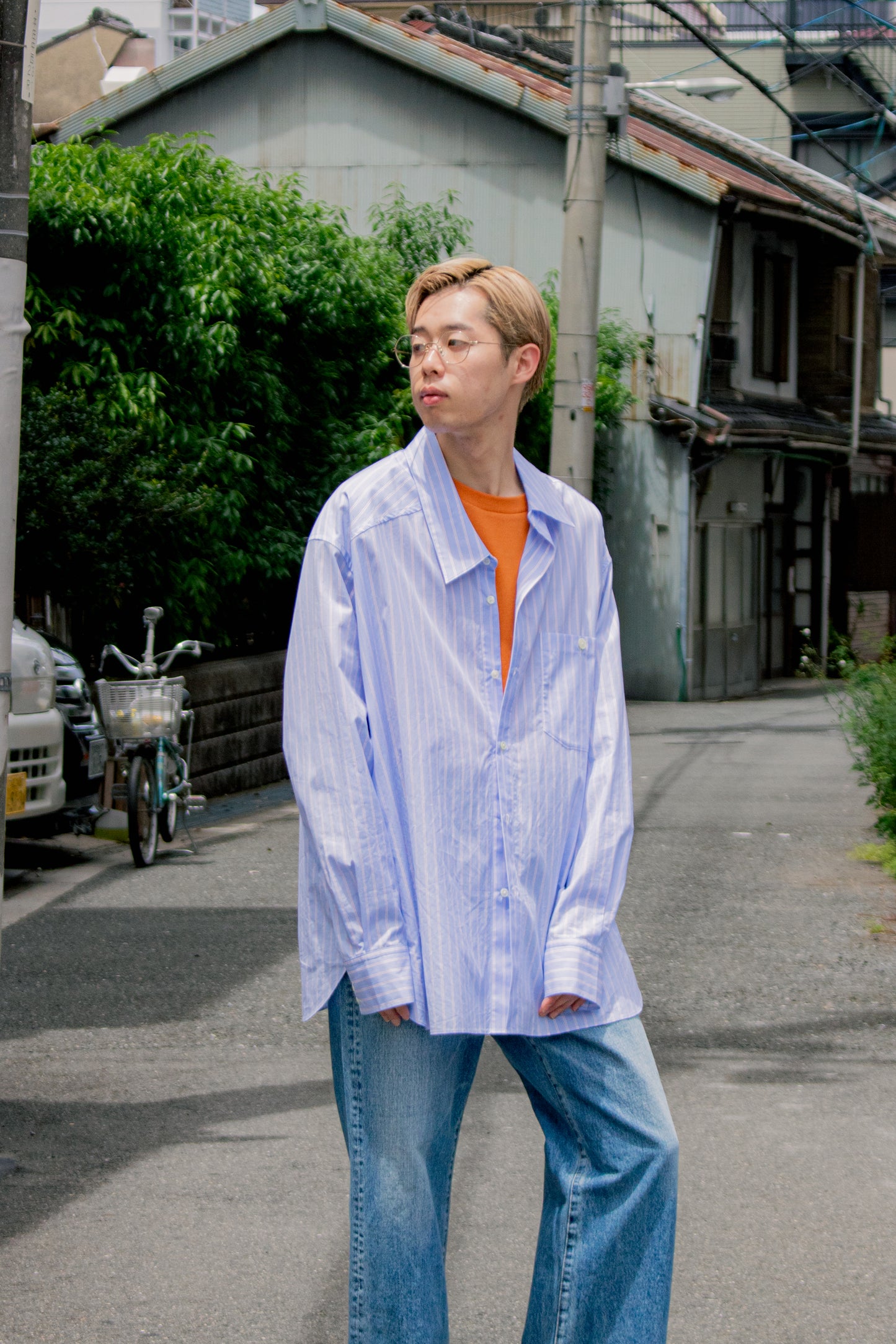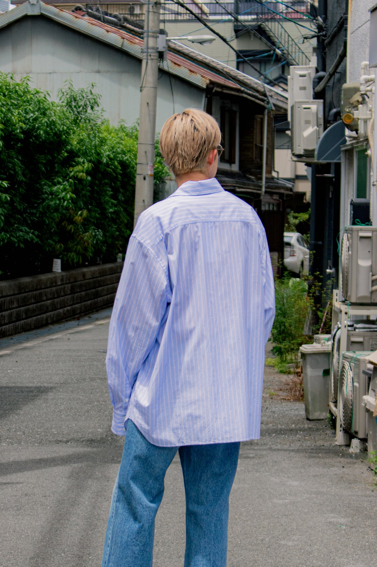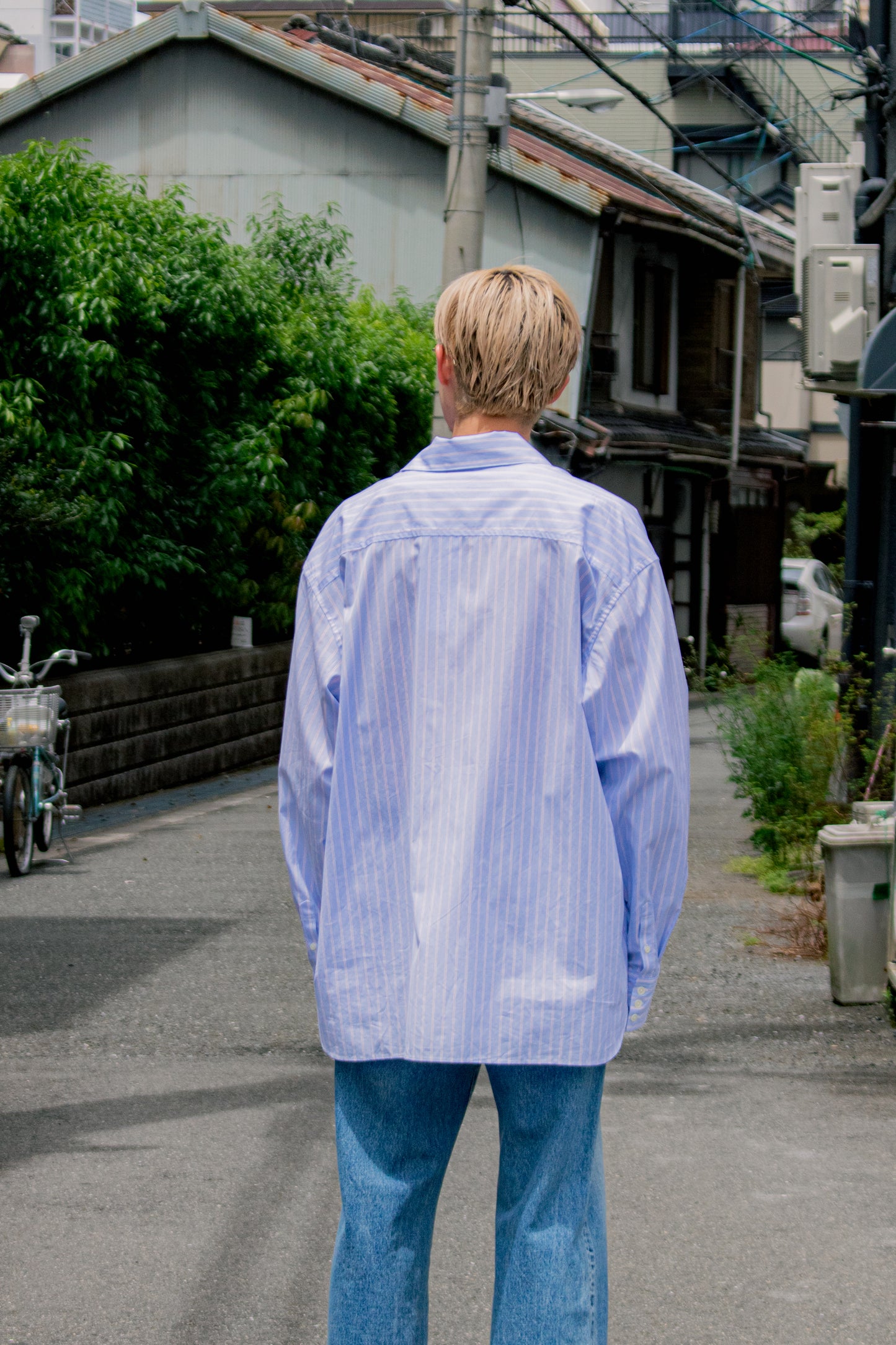 オーバーサイズが特徴のストライプ柄のシャツ。