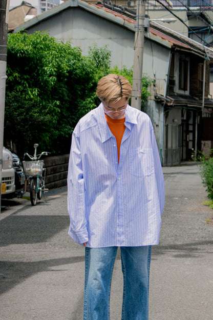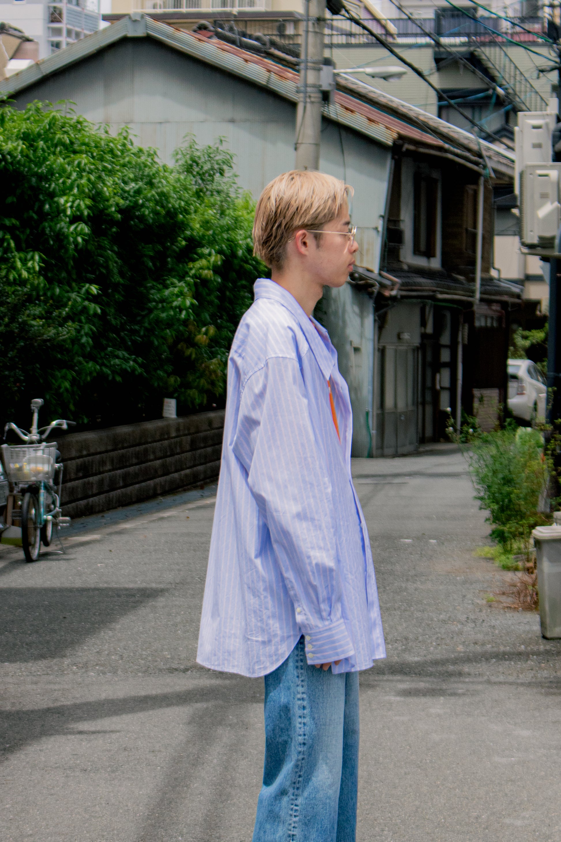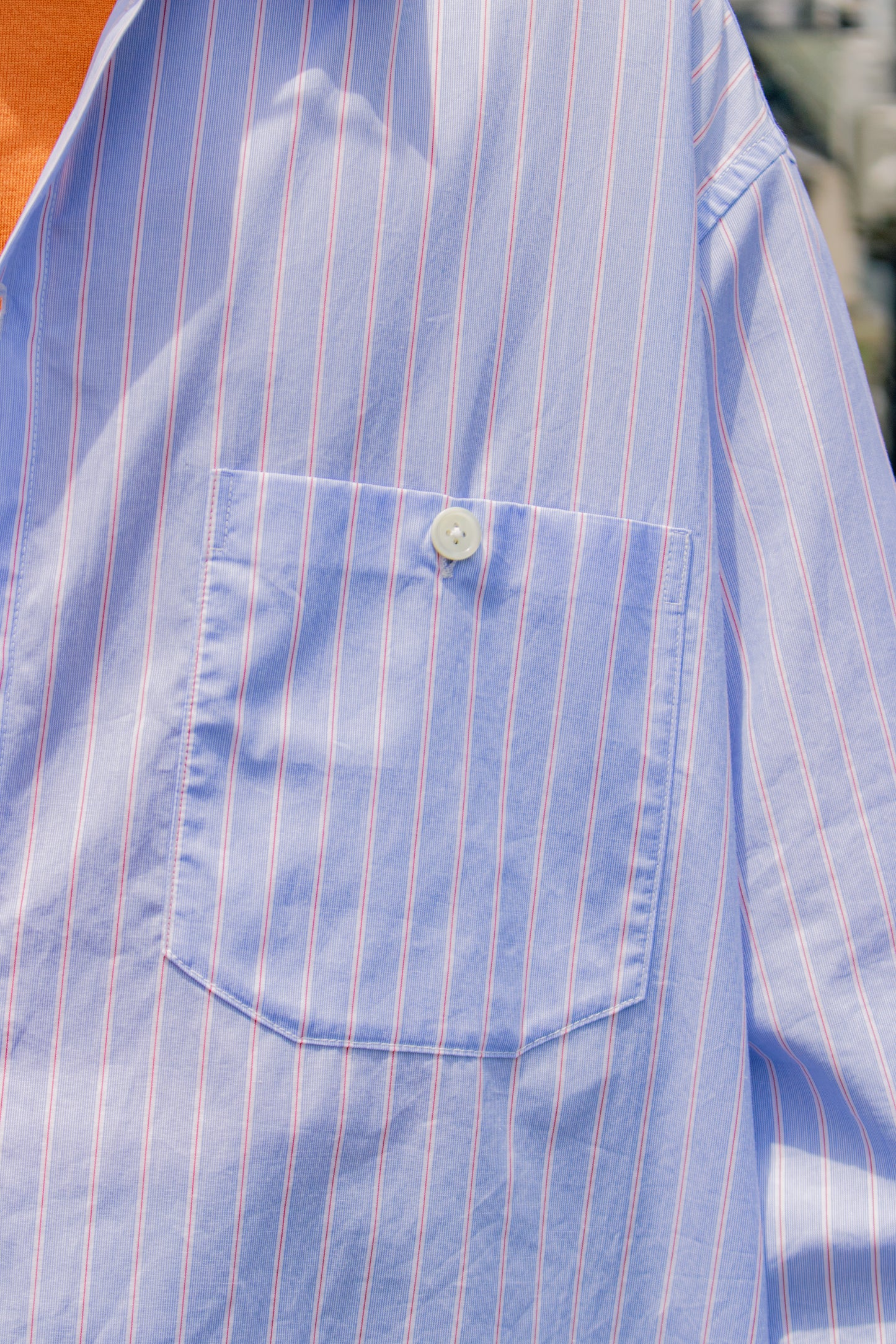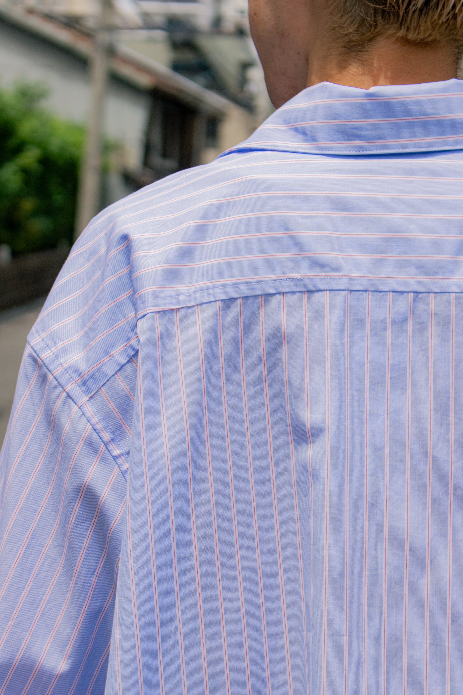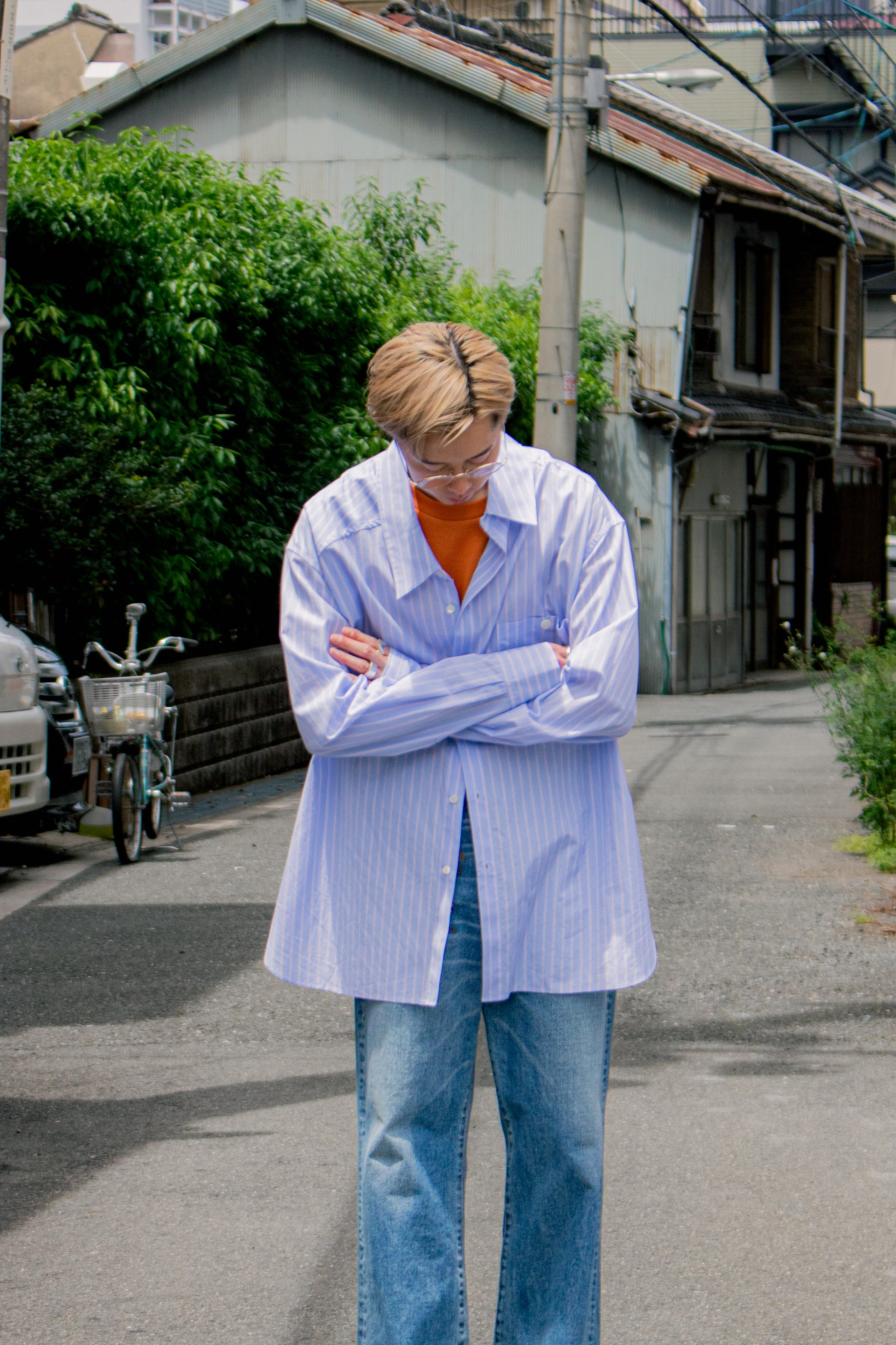 オーバーサイズが特徴のストライプ柄のシャツ。