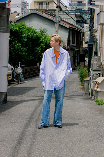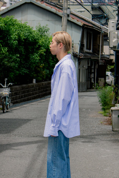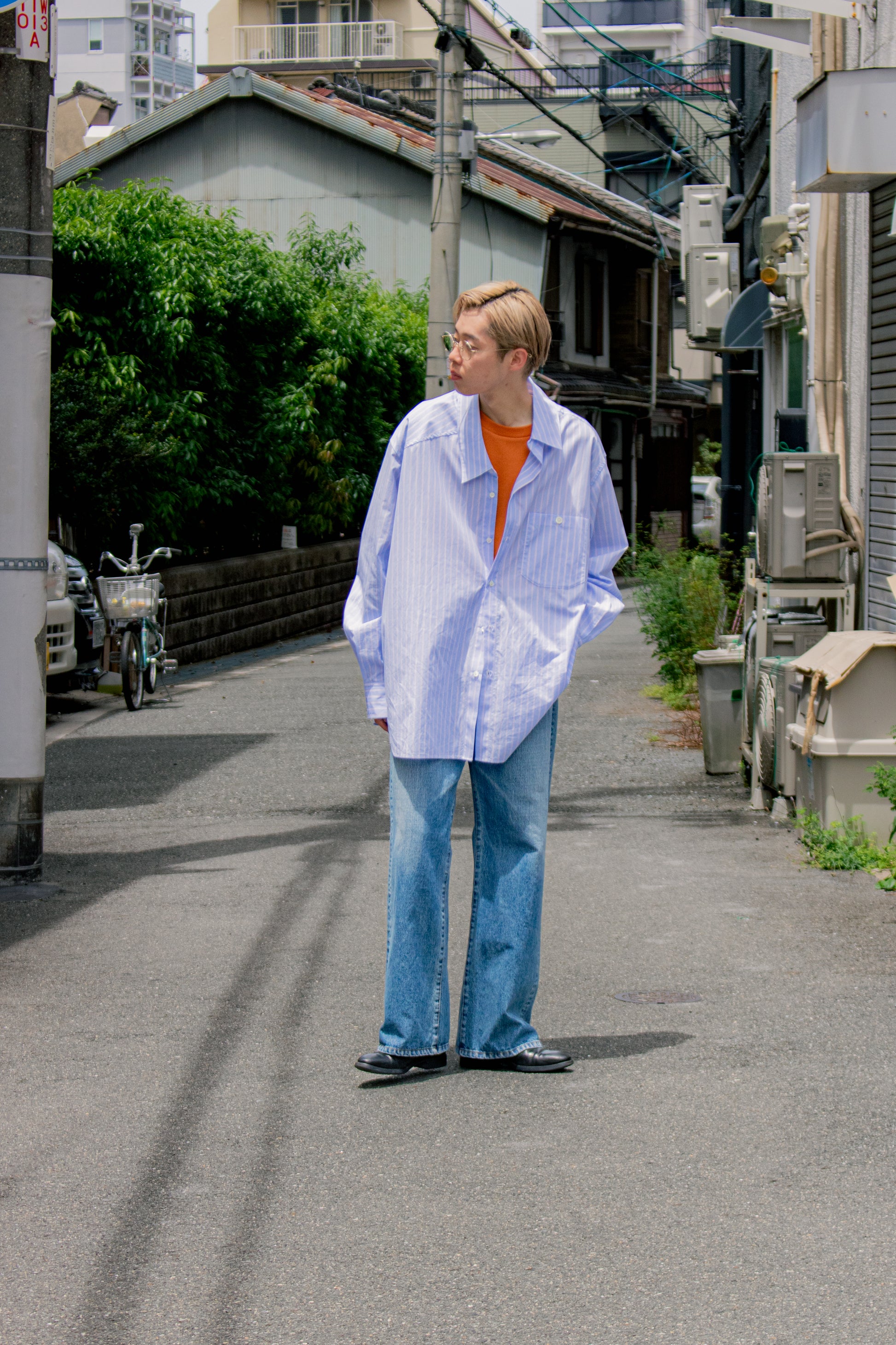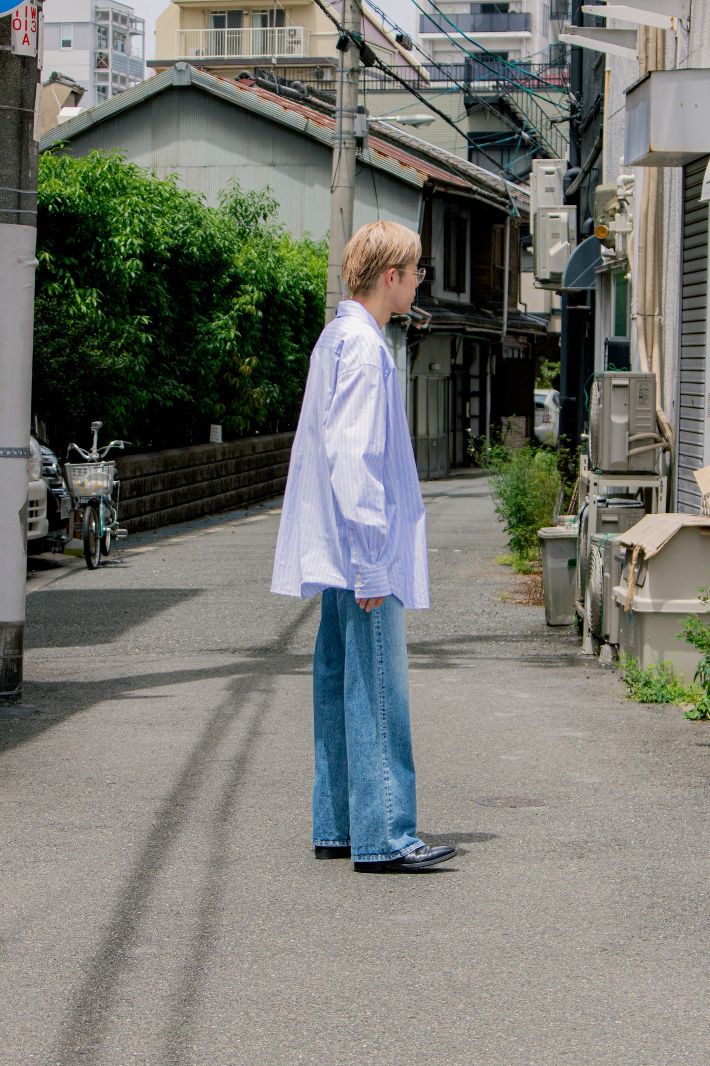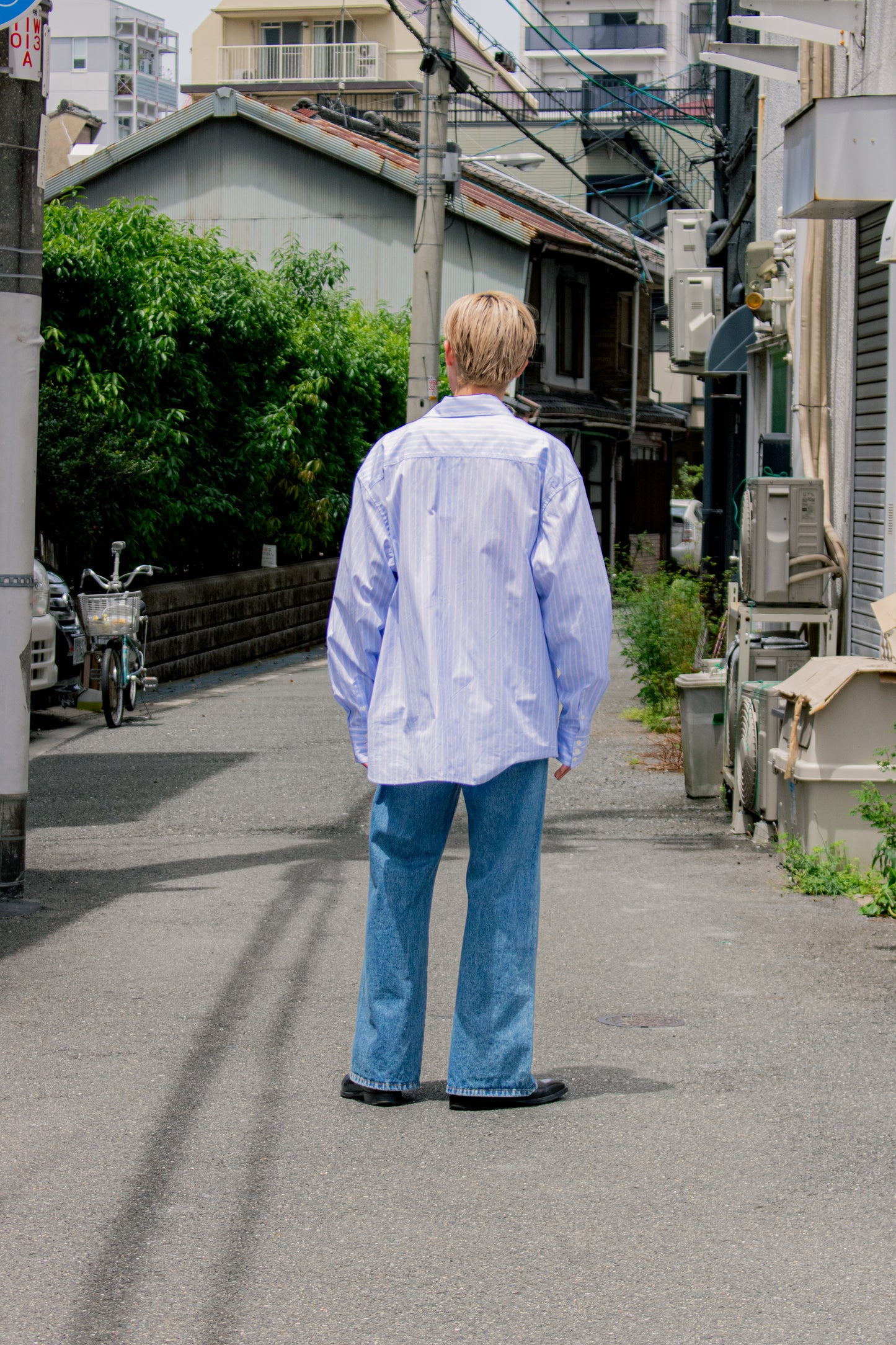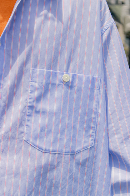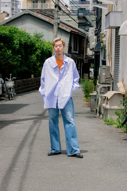 オーバーサイズが特徴のストライプ柄のシャツ。