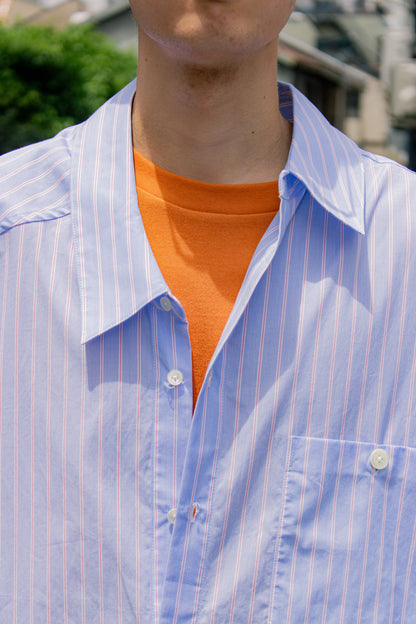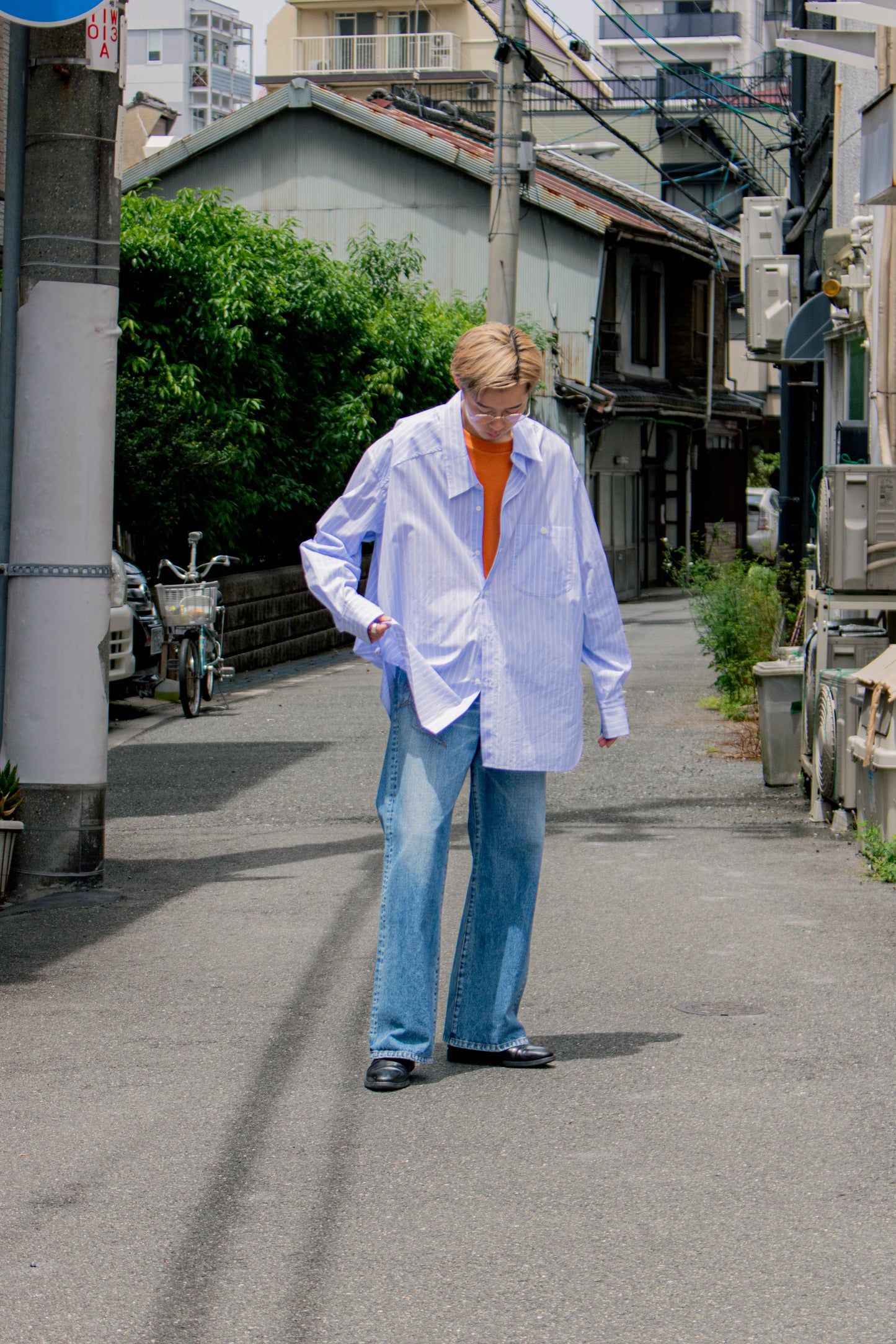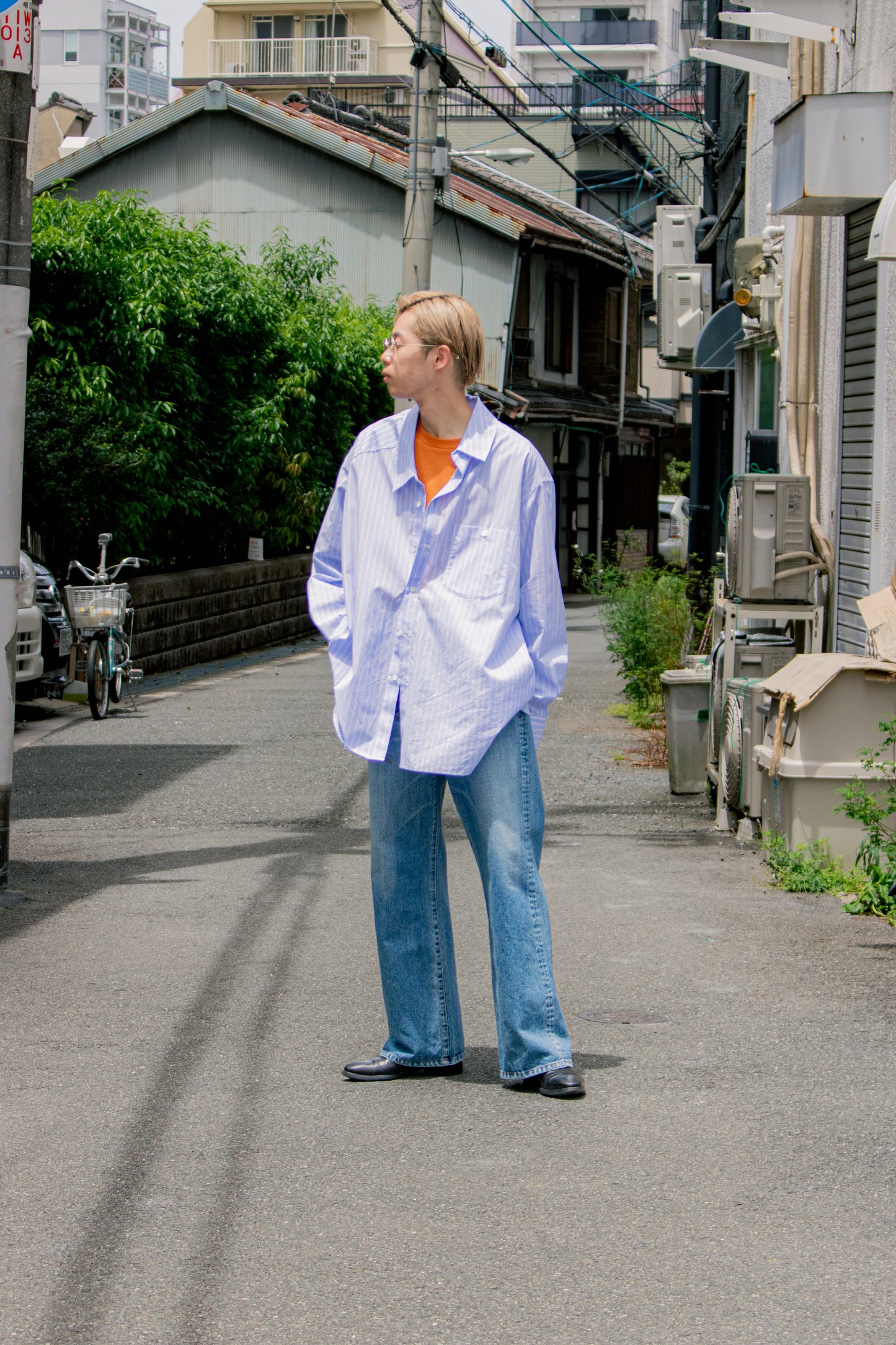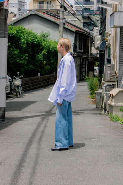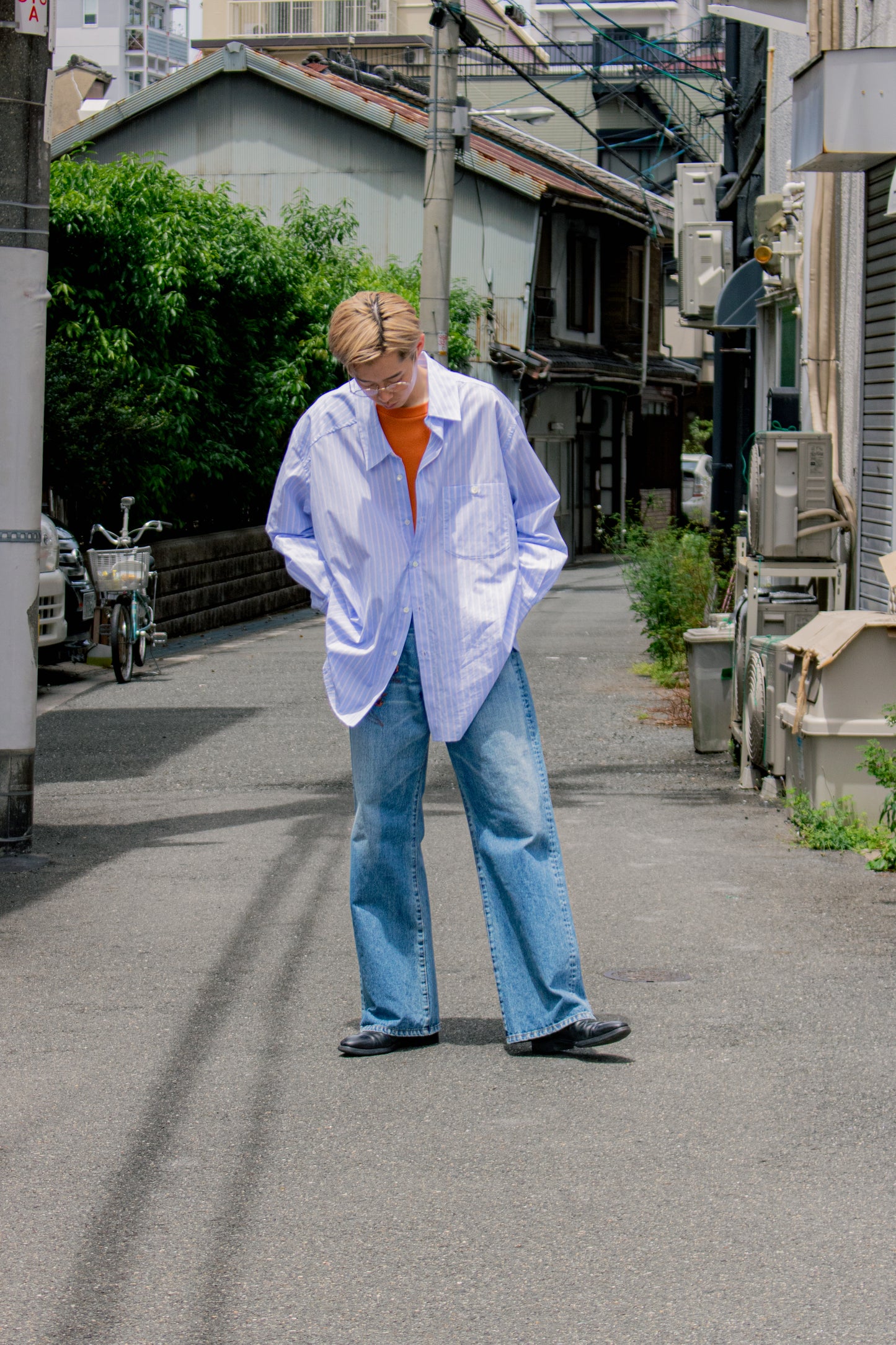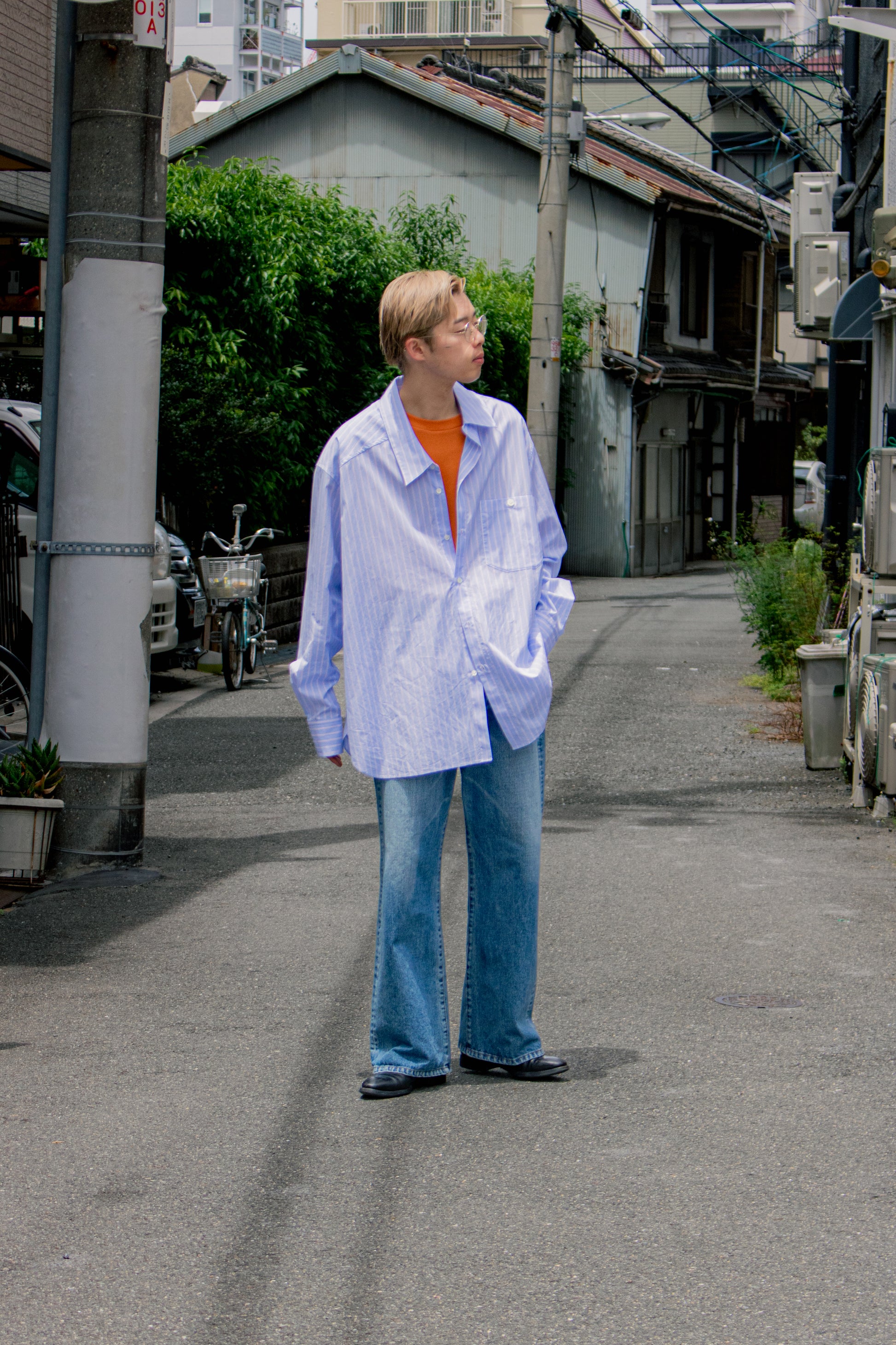 オーバーサイズが特徴のストライプ柄のシャツ。