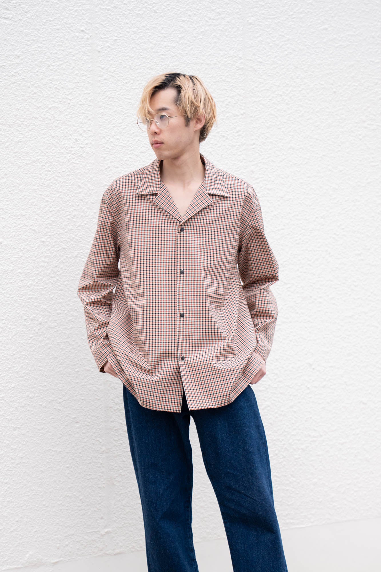 スリーピングシャツをベースにしたラフなデザインにしつつ、少し大ぶりな開襟、ボタンのバランス等でジャケットライクに仕立て。