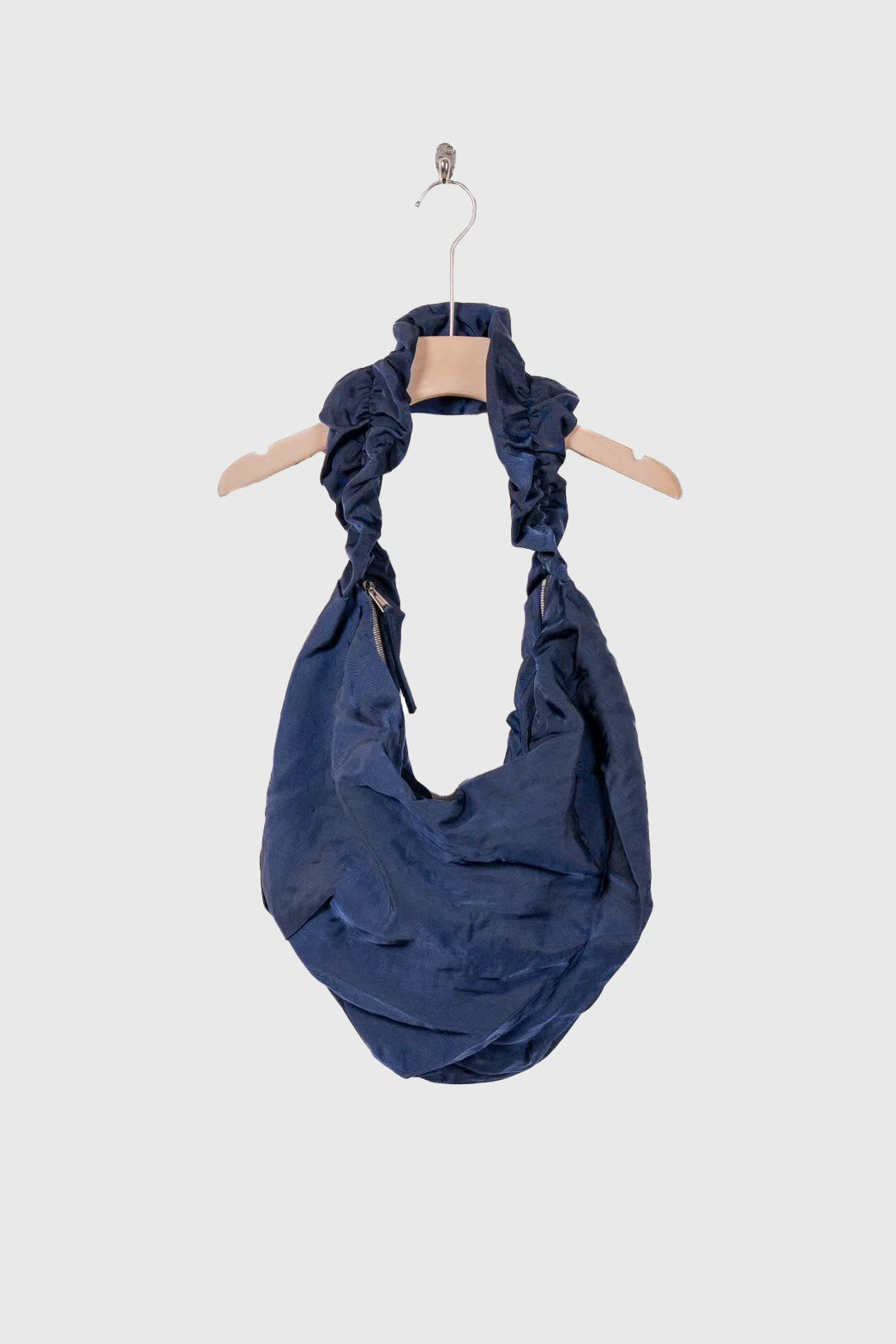 ギャザーの肩紐、高級感のあるファスナークロージャーに加え、クロージャーの大きな2つの内ポケットが魅力的な一点となっています。