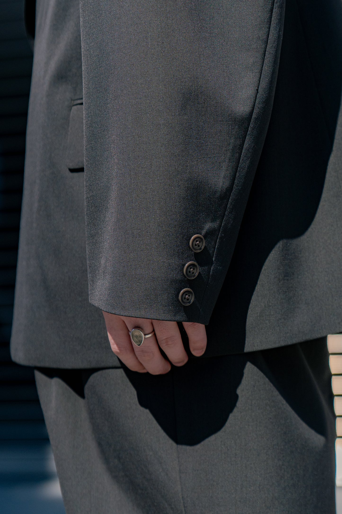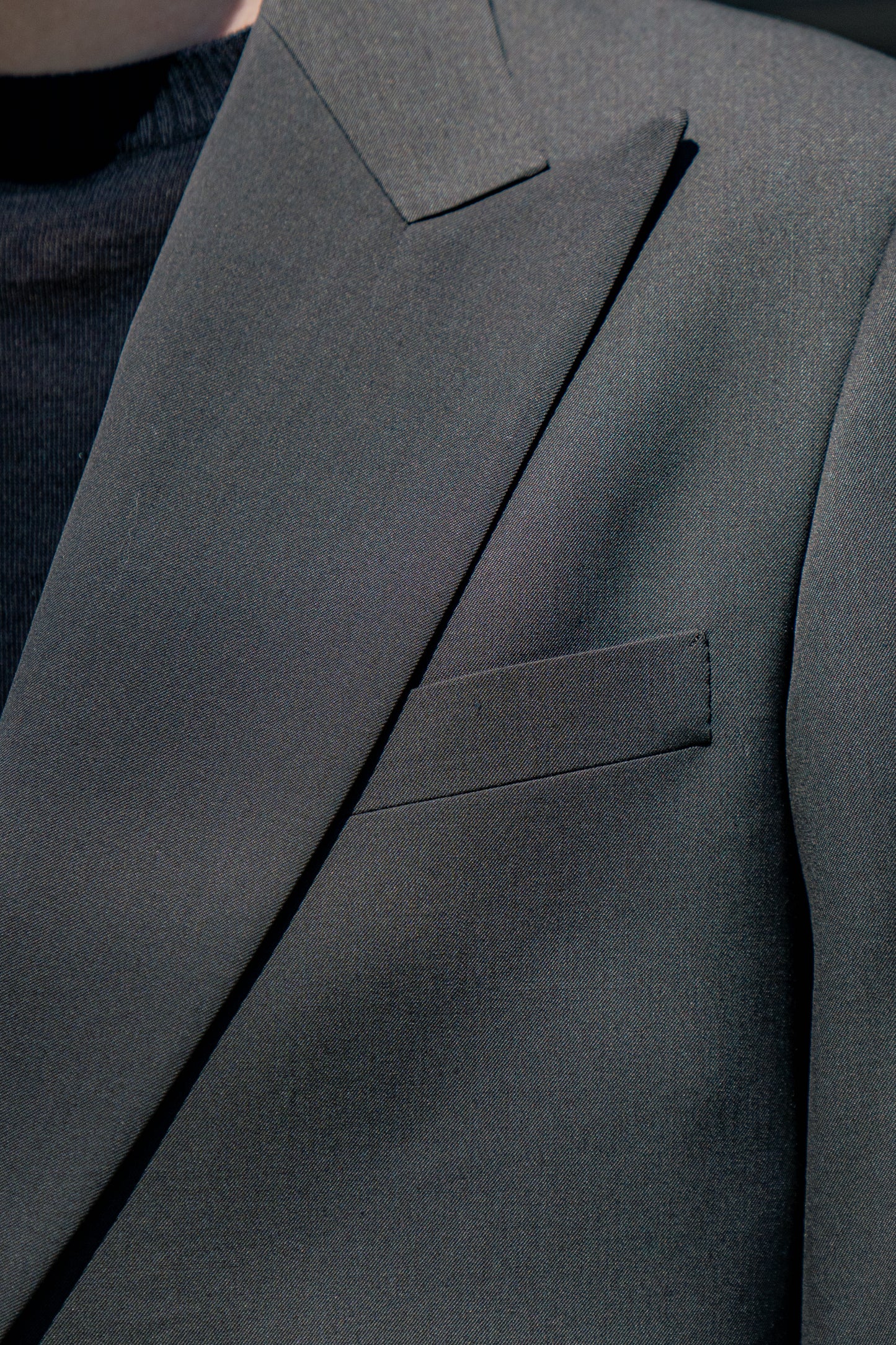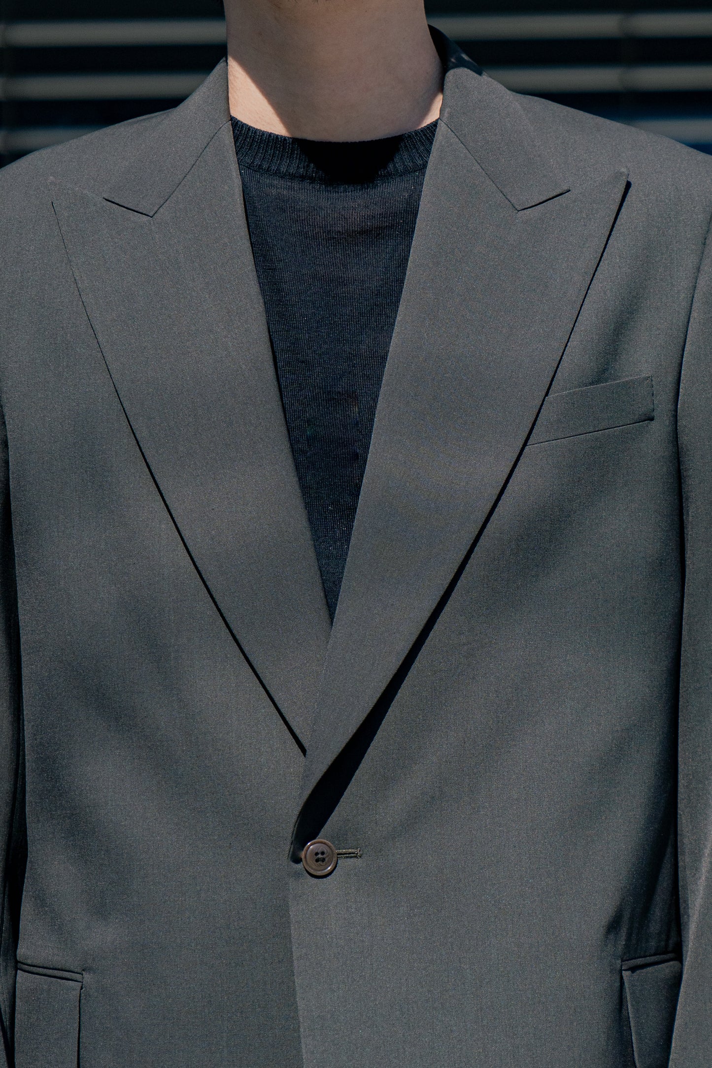 縫製仕様や、毛芯入りなど、テーラードジャケットの工程や国内屈指のジャケット工場で作成され、肩は落とさずに、身幅はゆとりを多くとっているジャケット。