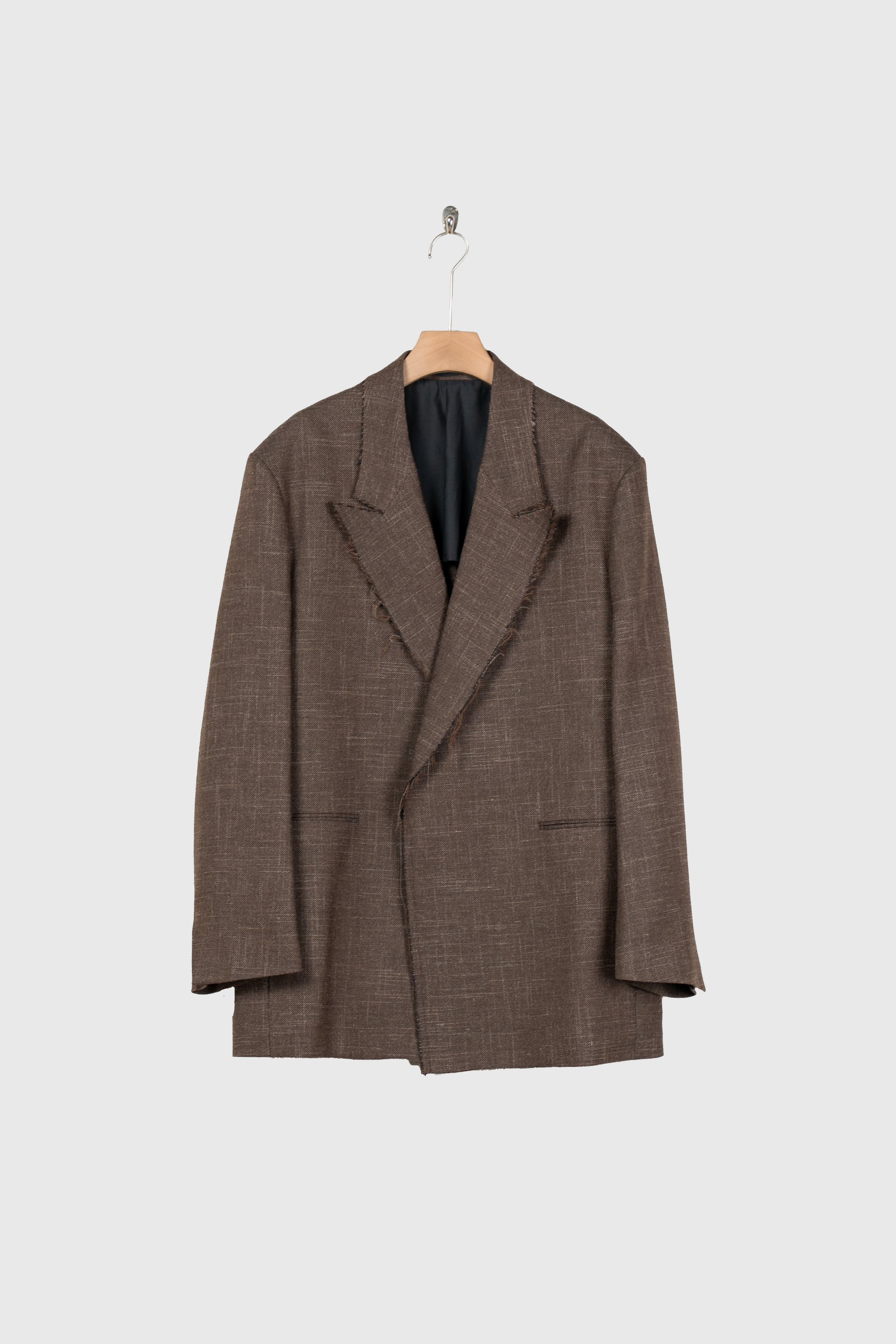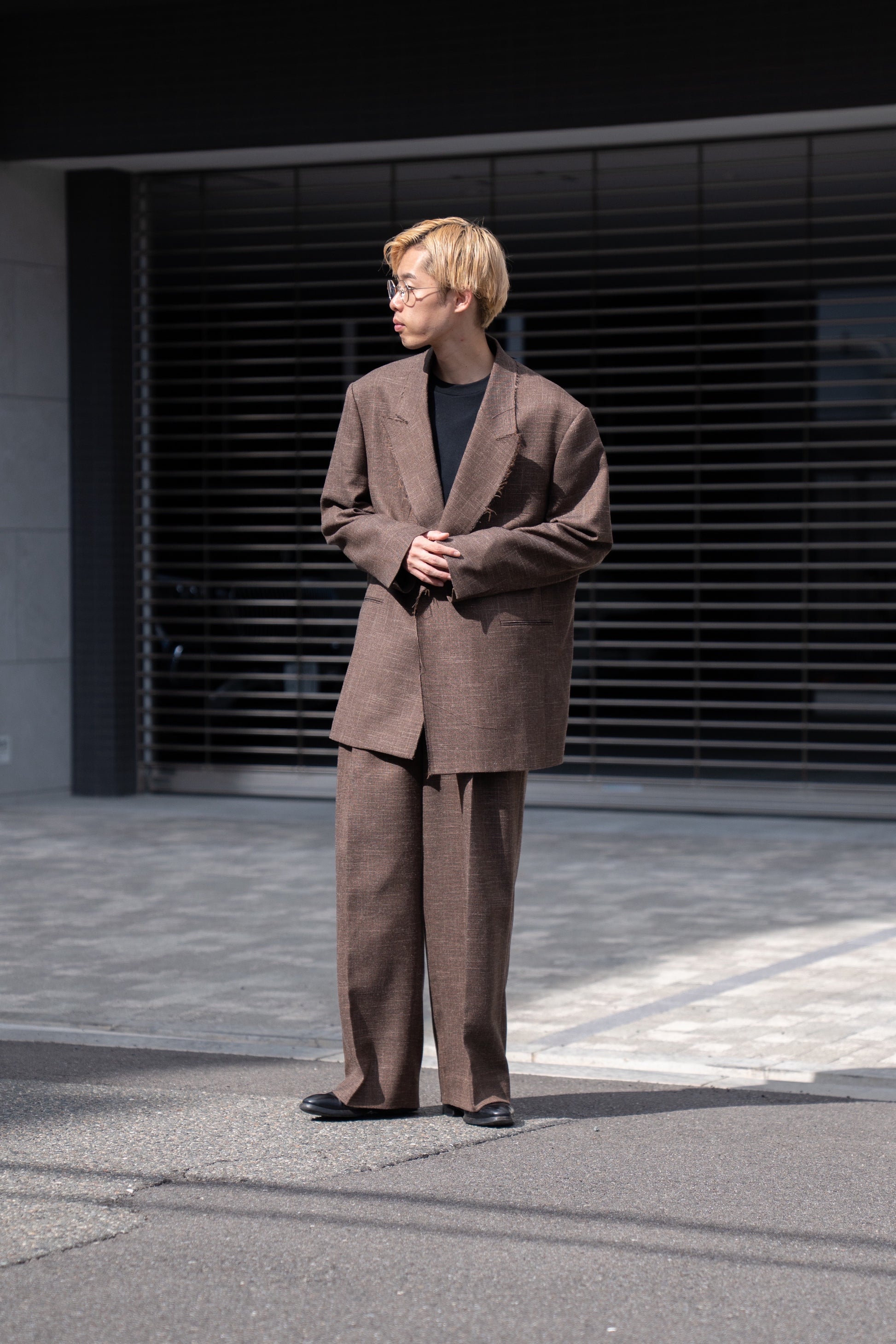 厚手のツィードでなくライトなツィードを作りたく尾州産地で糸から別注した素材。