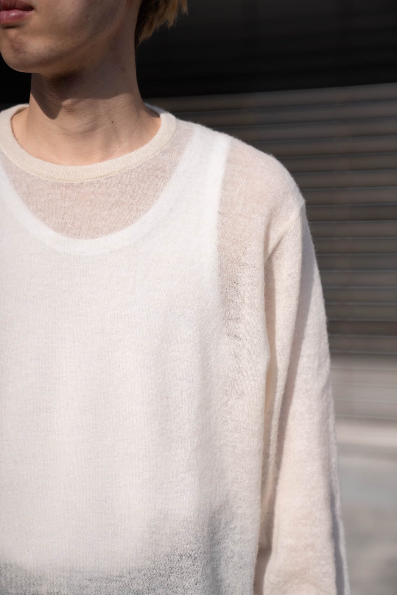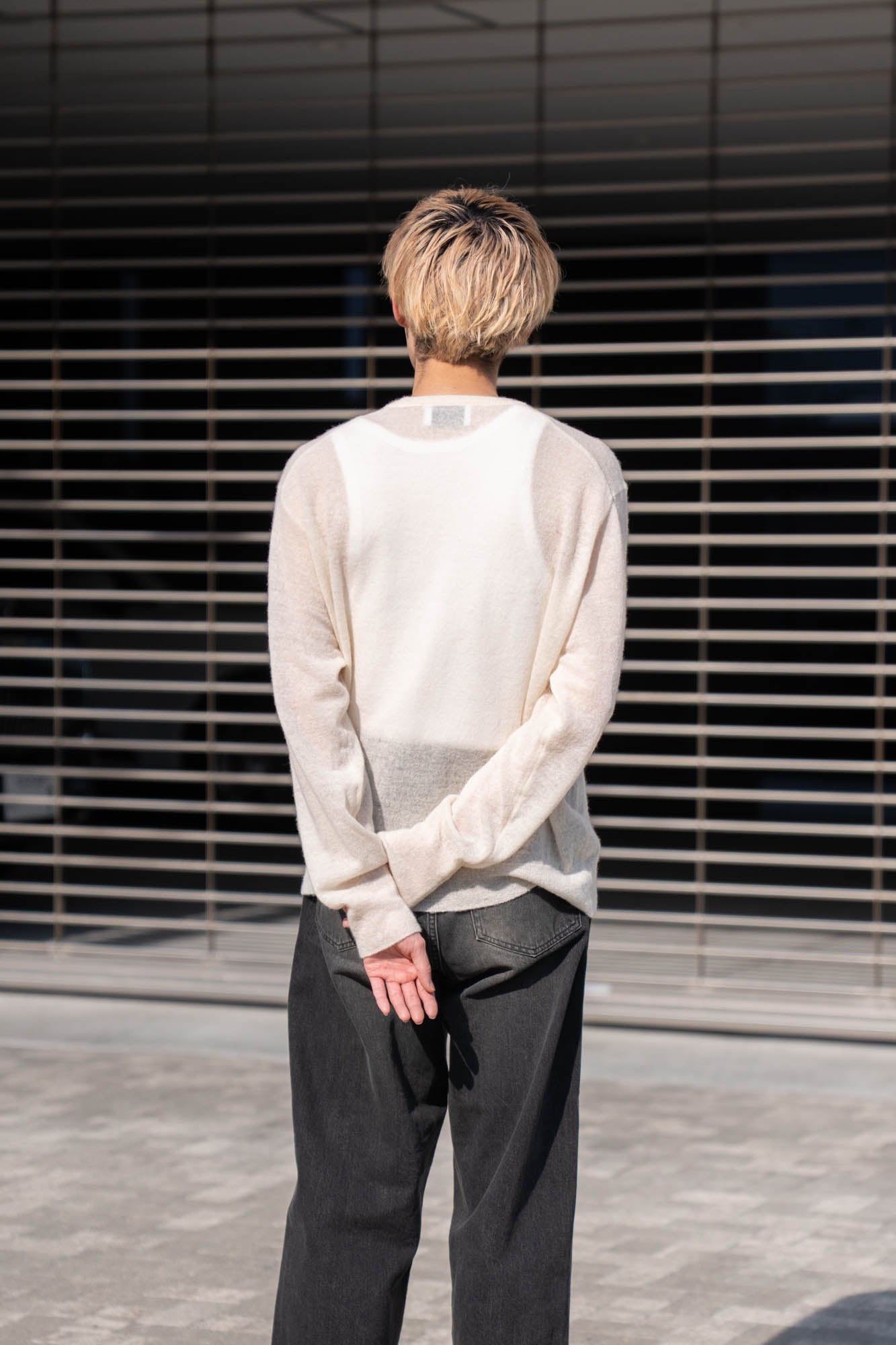 アルパカの中でもより繊維が細く、滑らかさに優れたベビーアルパカ、ウールナイロンの極細糸を使用したクルーネックニット。
