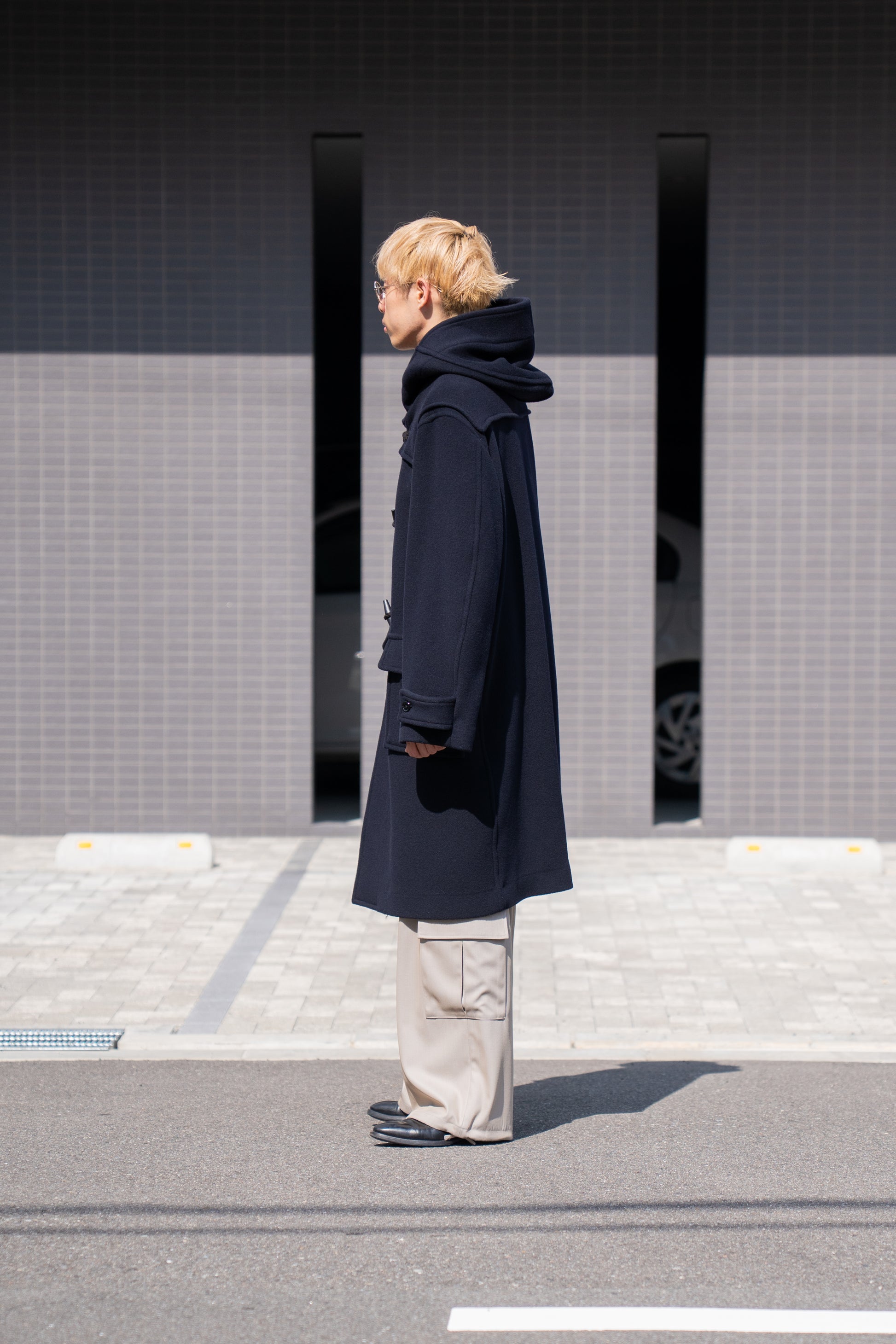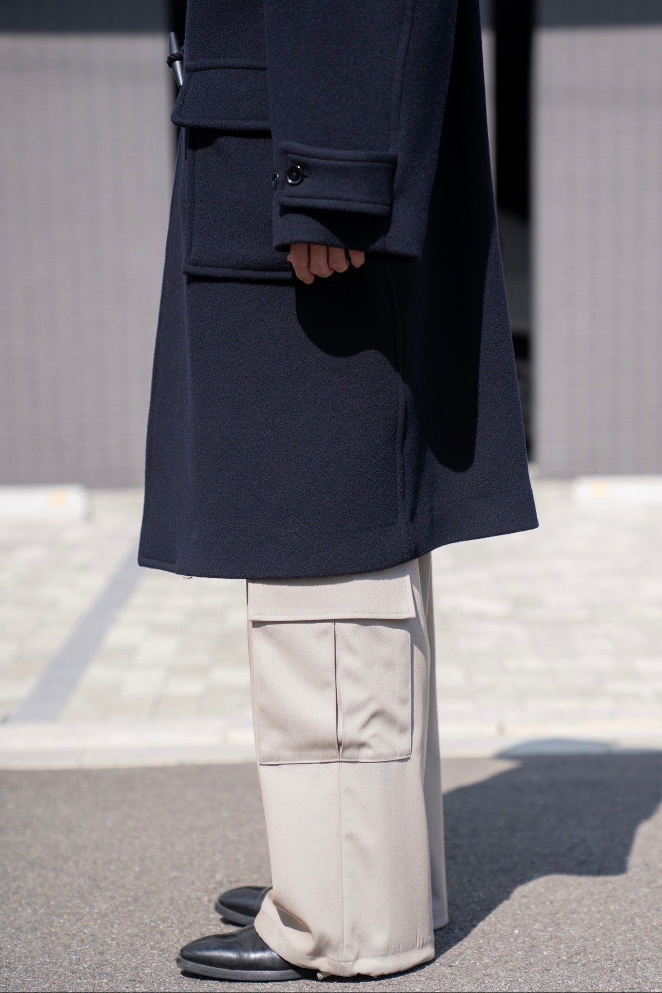 ラムウールを使用したメルトンです。ヘビーオンスで度詰で織り、少しだけ毛足を長く設定し保温性や吸湿性に優れています。