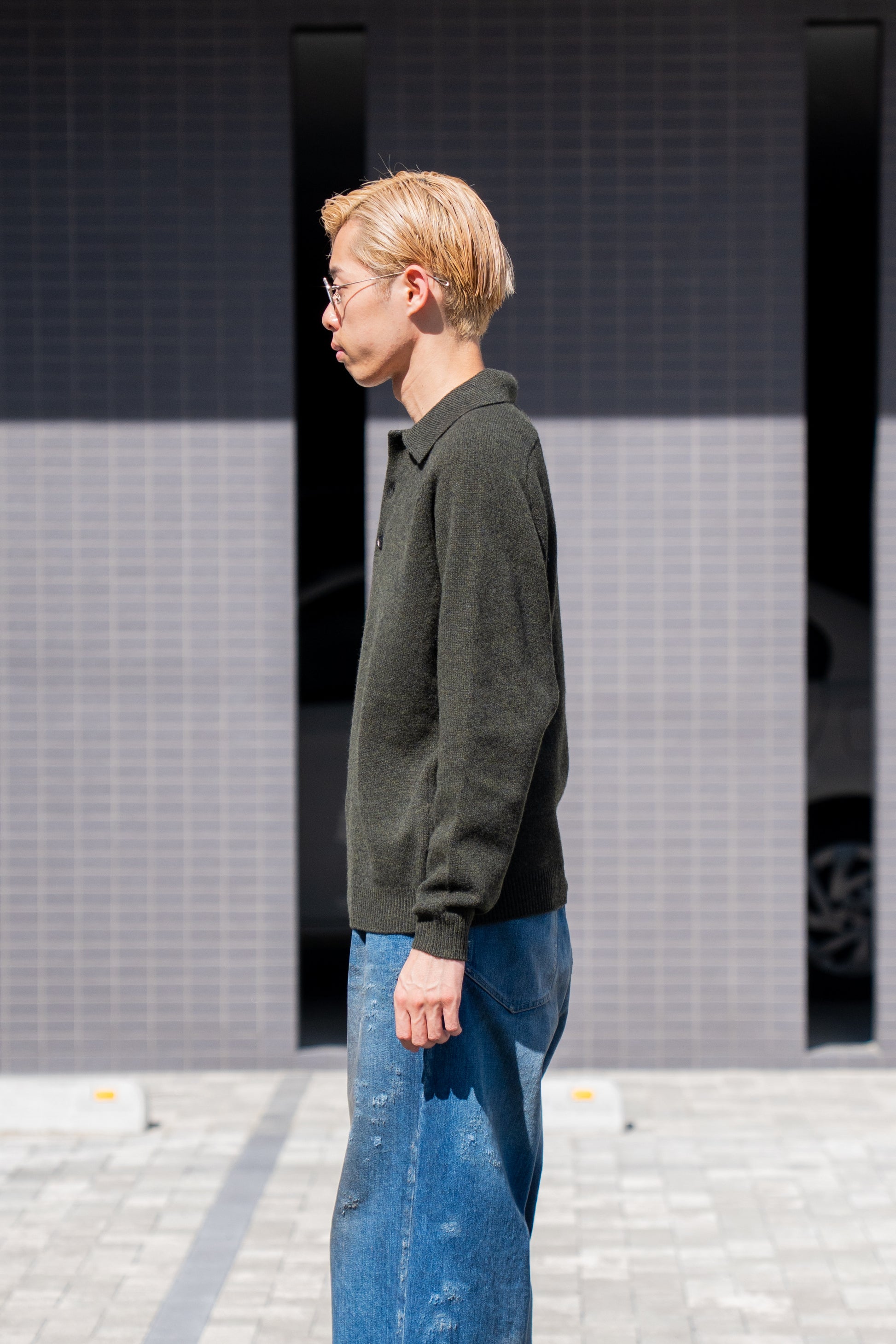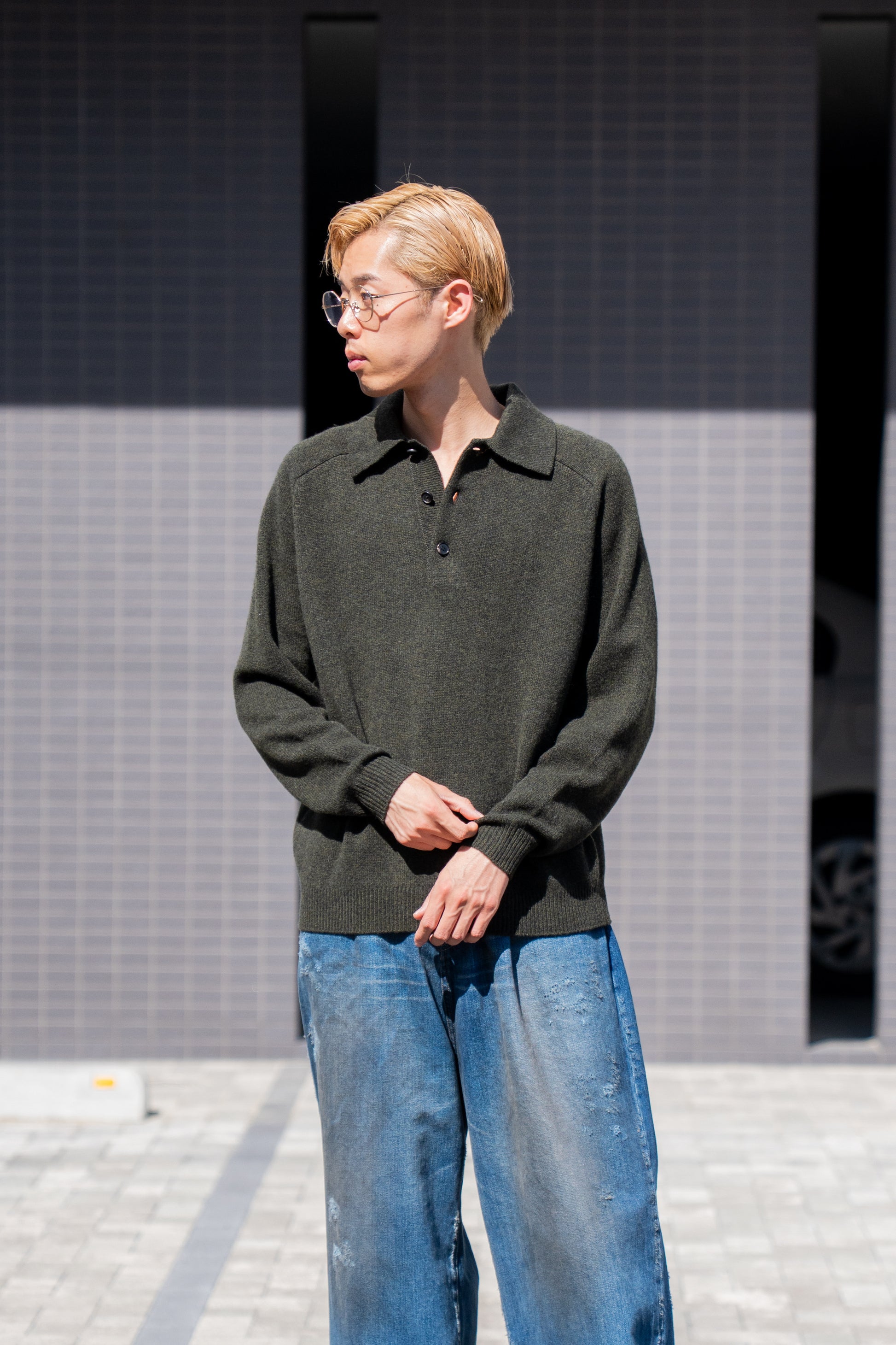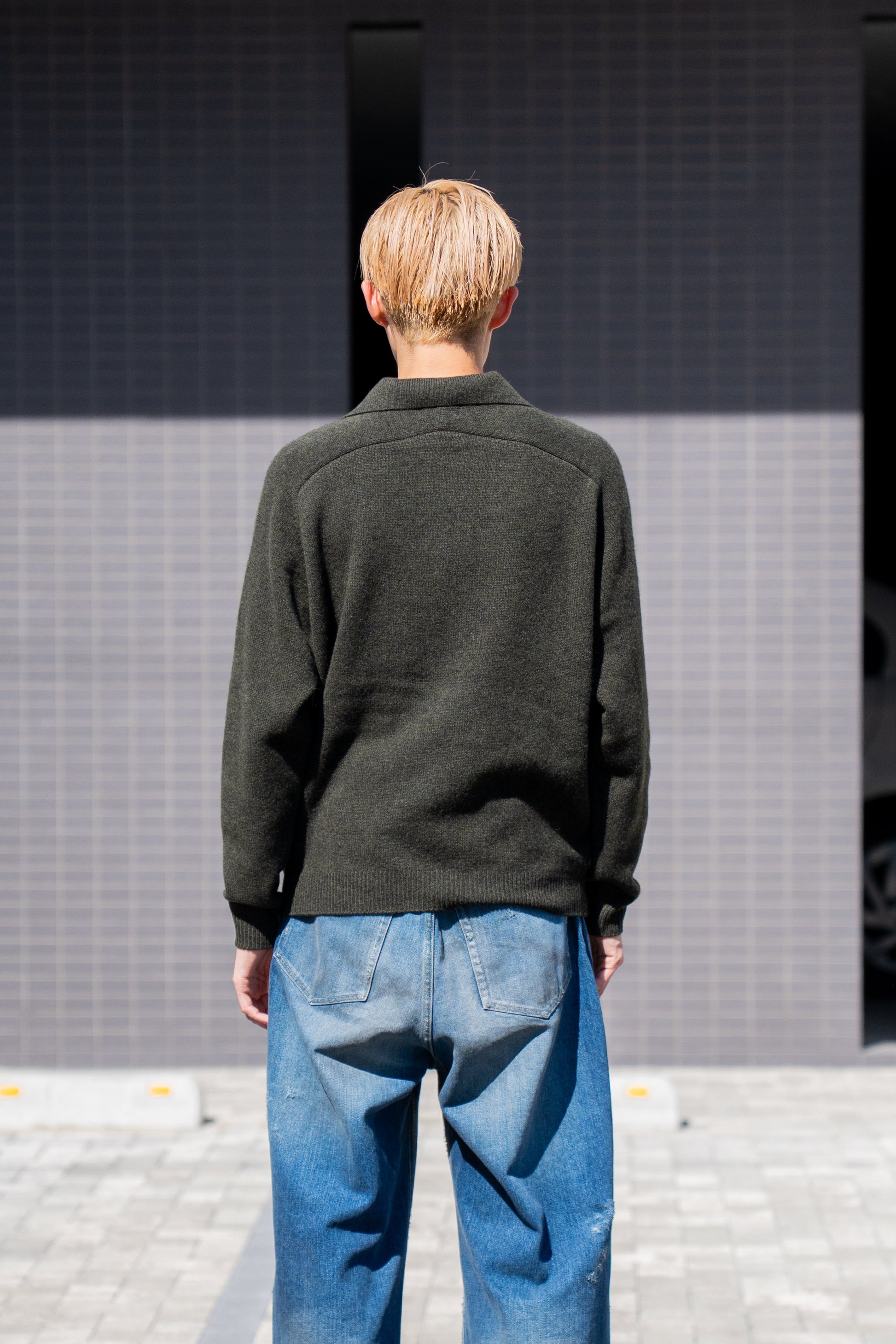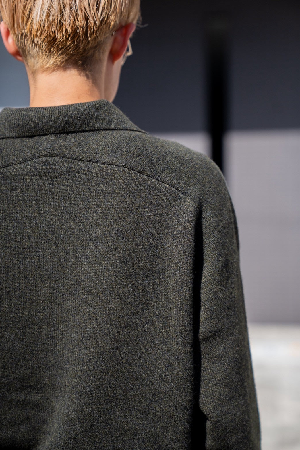 リブで切り替えられた大きめの襟元は、わずかにインナーが覗くよう計算されたバランスで設計。