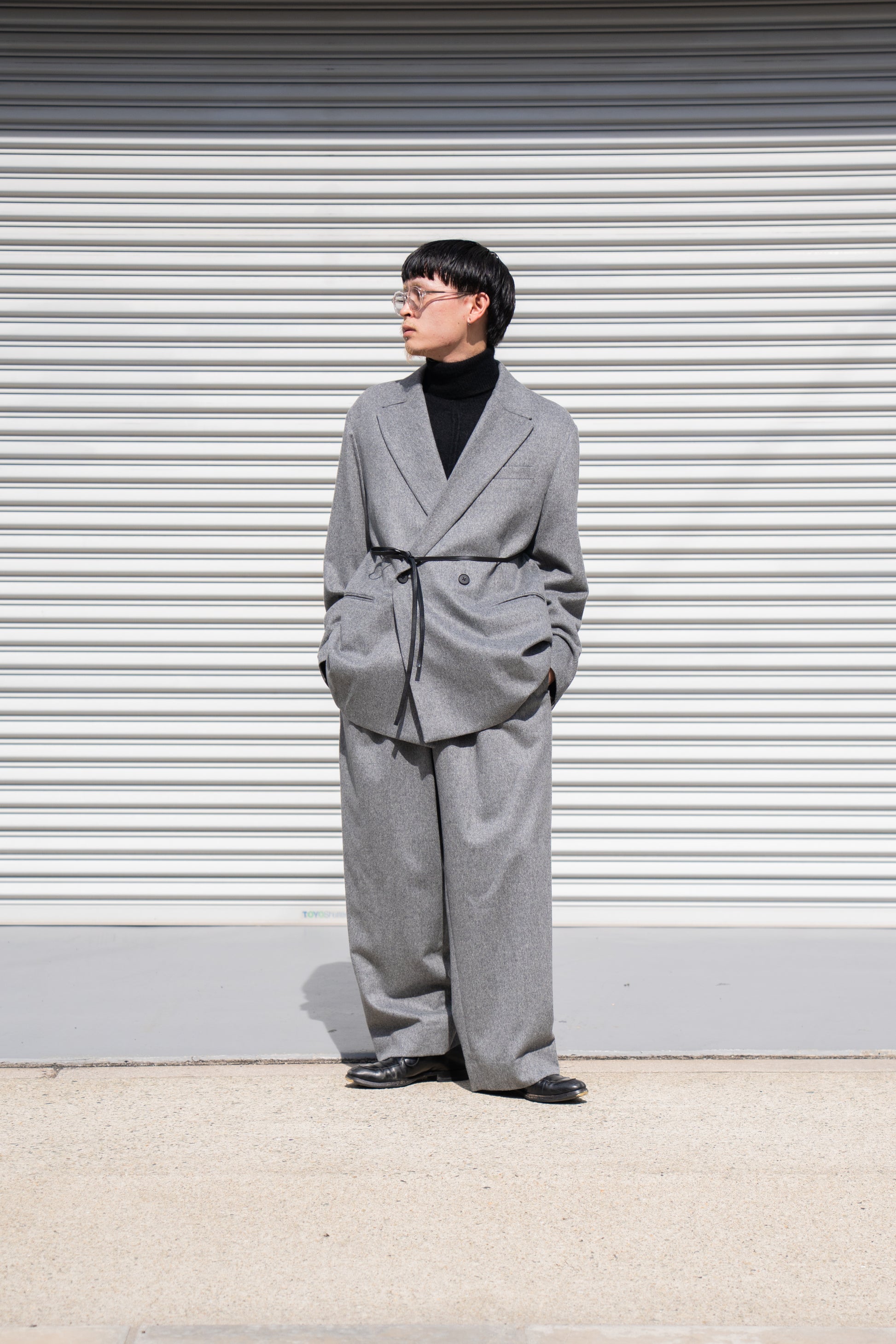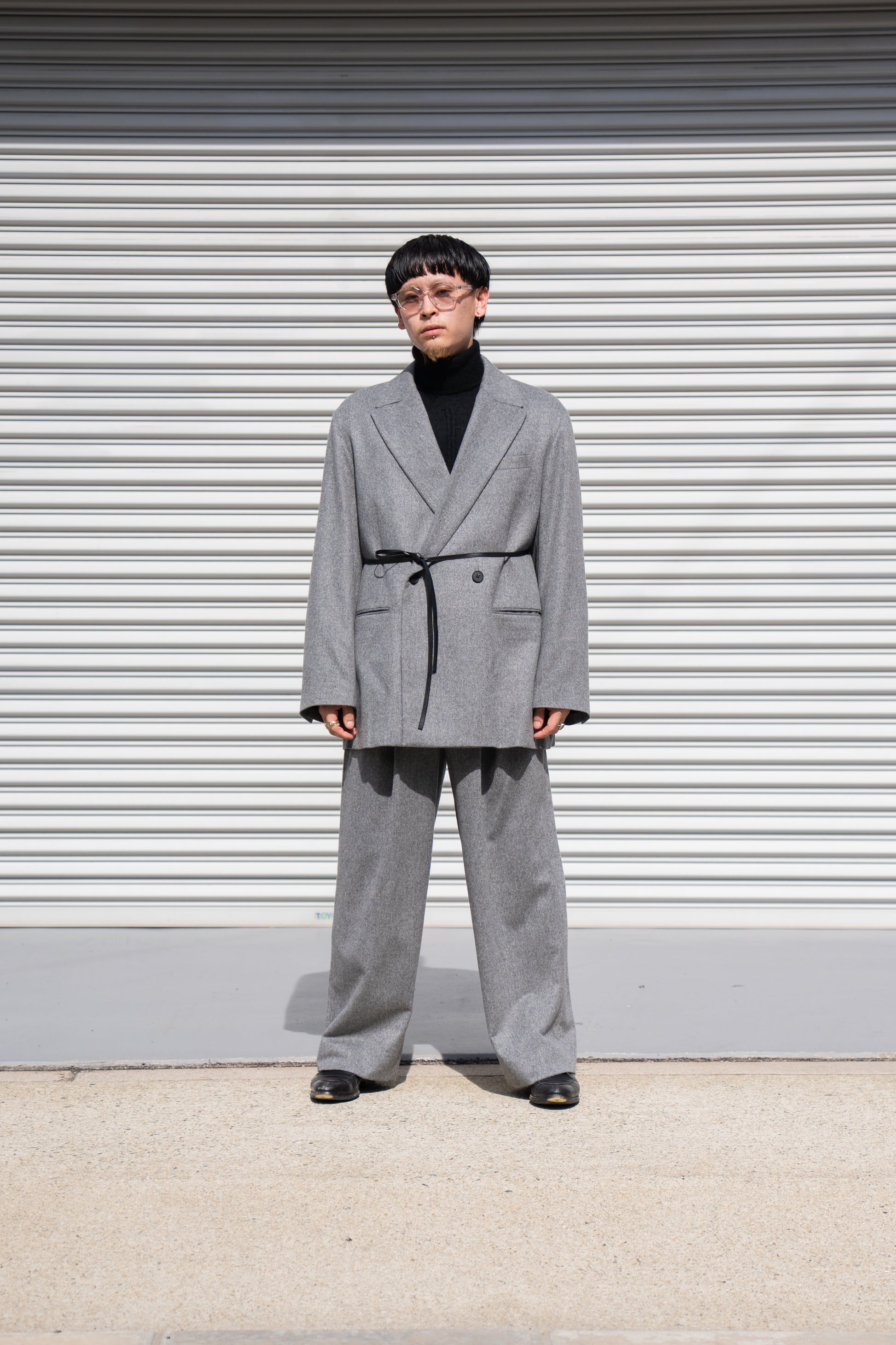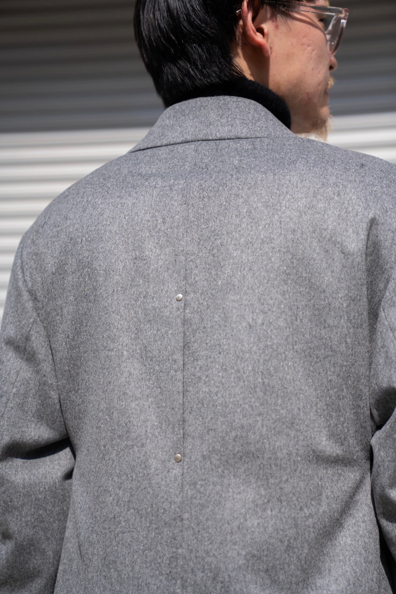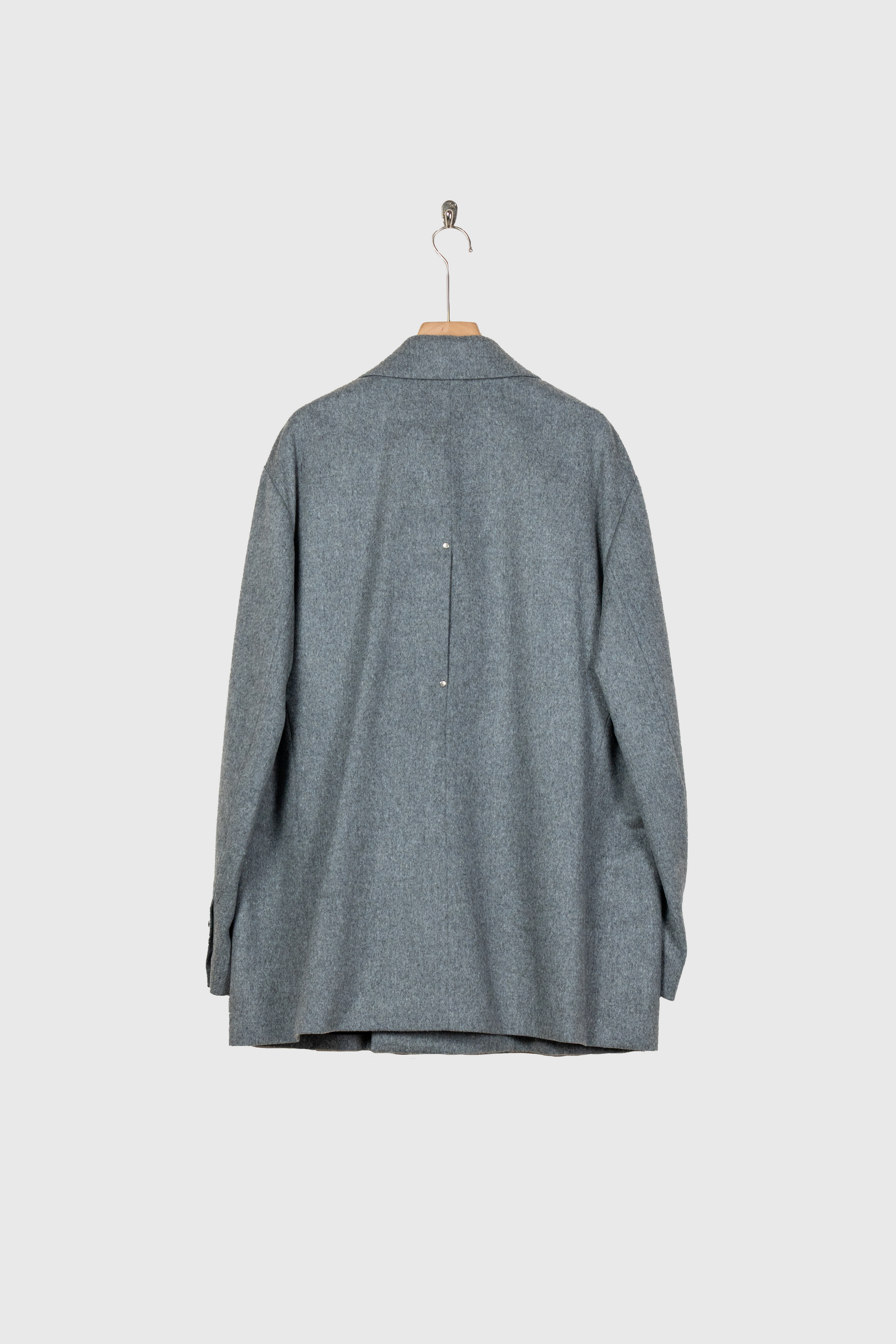 しなやかで膨らみのあるやわらかい風合い、微光沢のある美しい生地の表情が特徴のウールカシミヤビーバーを使用したピークラペルジャケット。