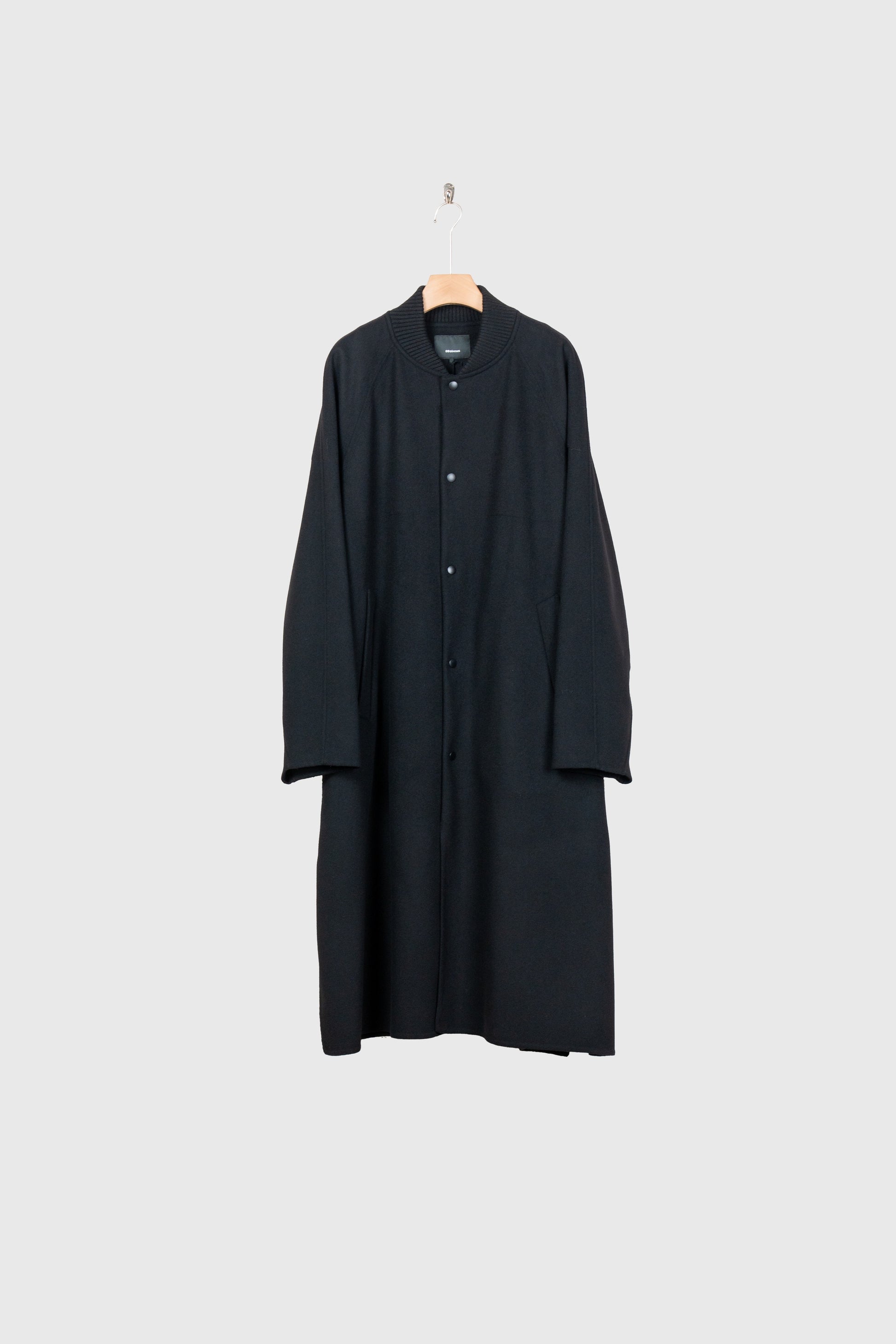 素材は毛羽立ちが少ない二重織りのウールメルトンを使用。上品でクリーンな質感で、適度なハリと重厚感を持ちながら、柔らかくしなやかな風合いで、ドレープやフォルムを美しくキープします。