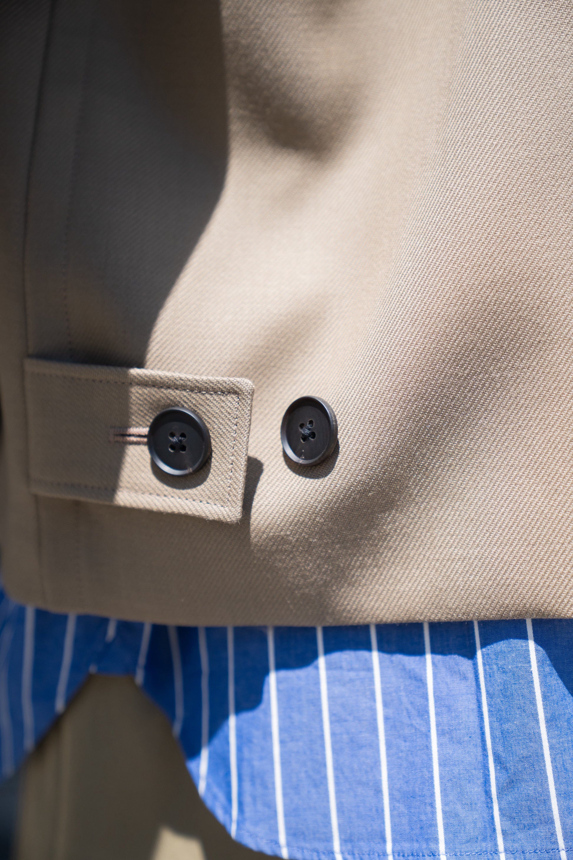 一見するとオーセンティックなブルゾンですが着用すると個性的なシルエットが強調されます。