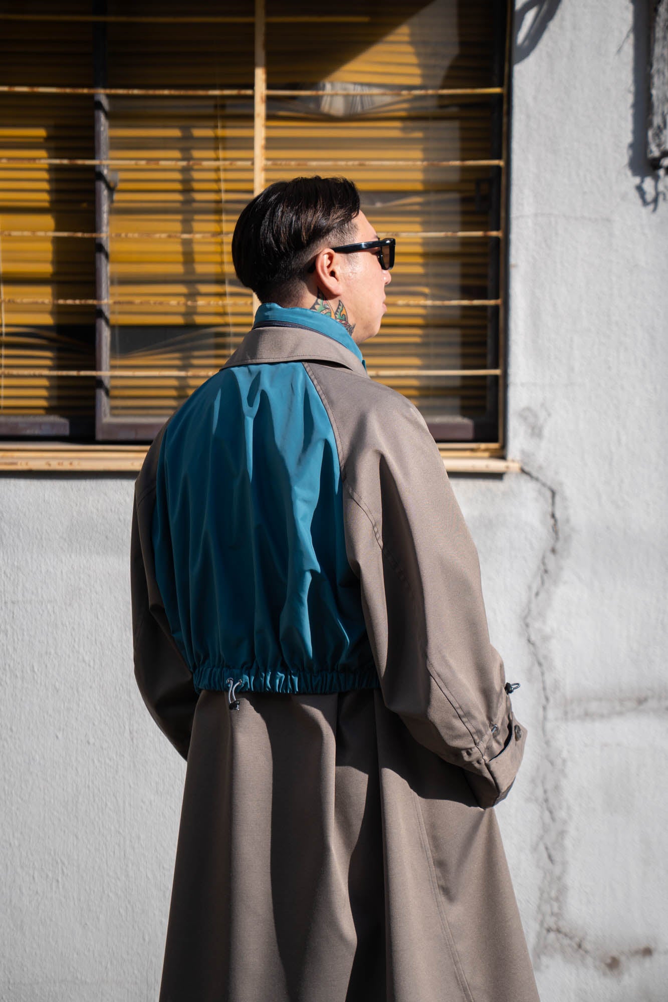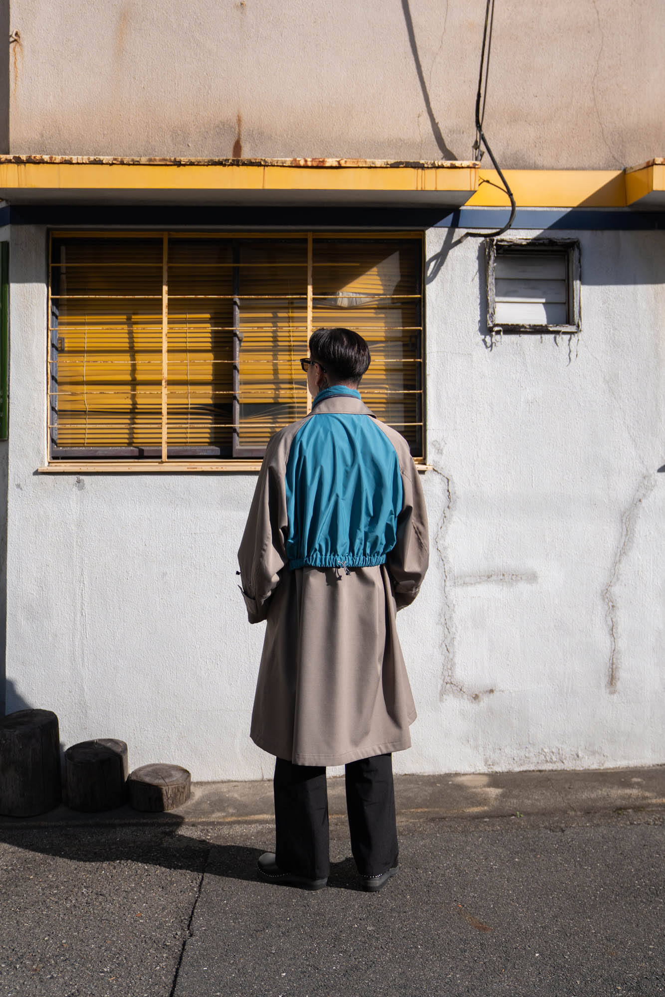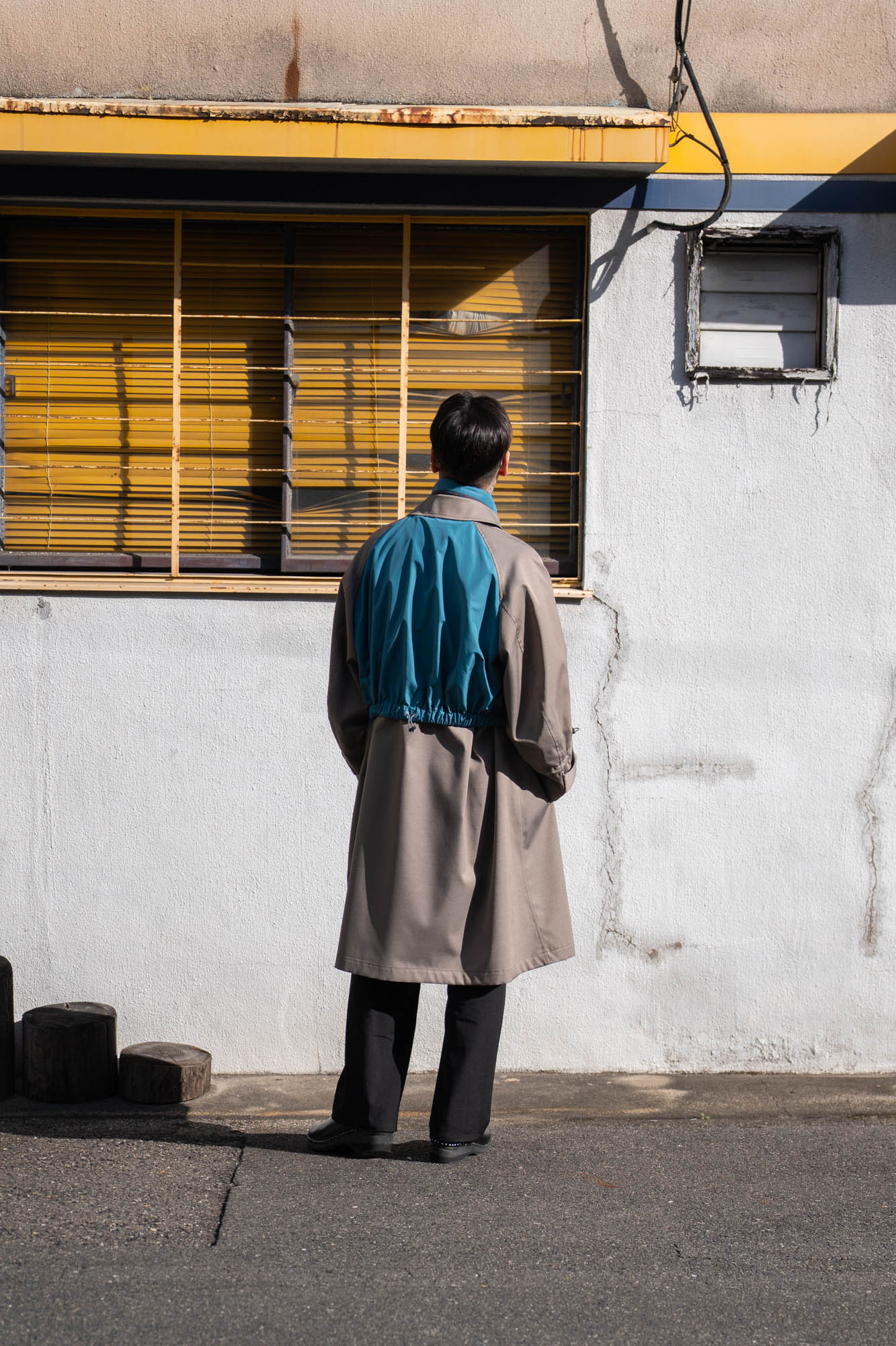 kolorらしいポリエステルとウールのコートにブルゾンがドッキングしたアイテム。