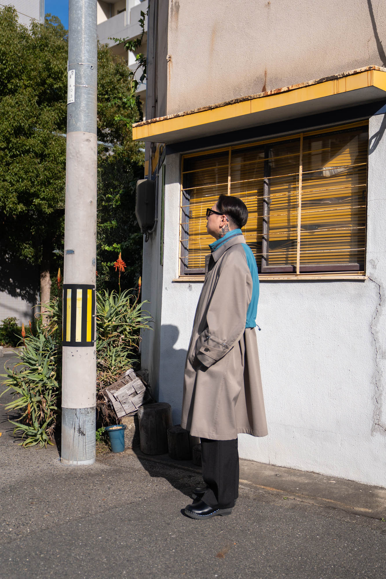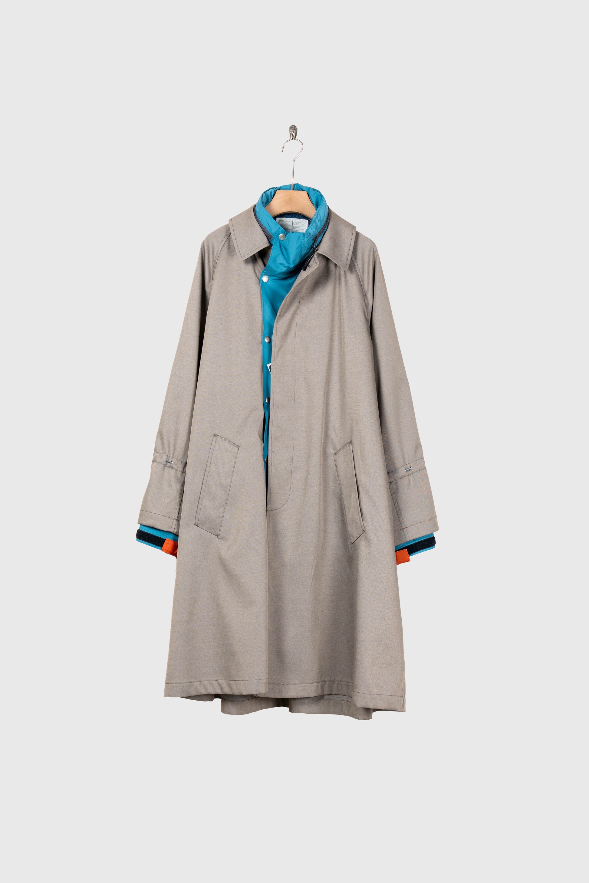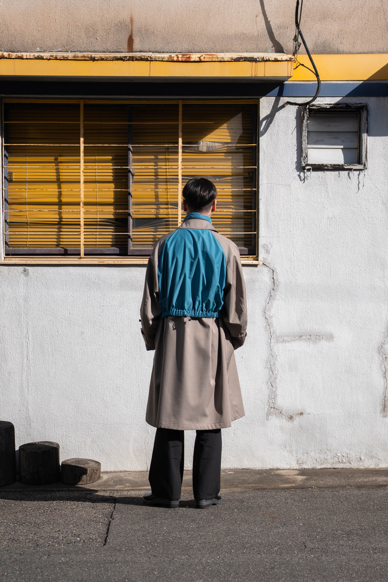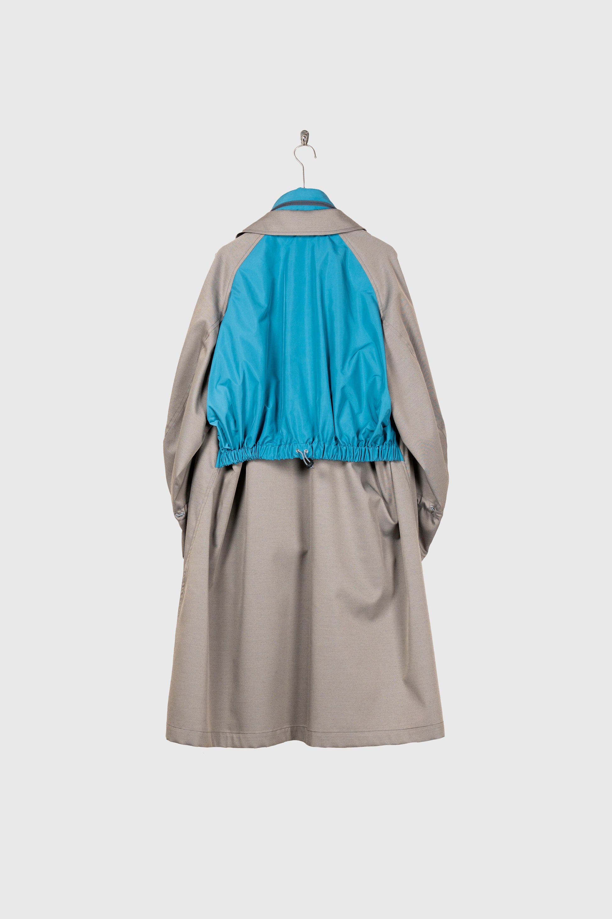 kolorらしいポリエステルとウールのコートにブルゾンがドッキングしたアイテム。