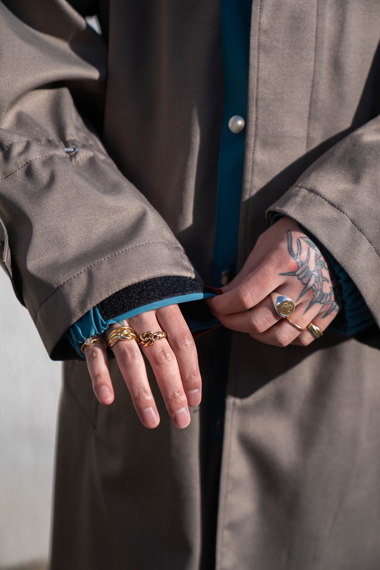 使いやすいカラーリングで、かなりギミックが効いているので様々なスタイリングを楽しる1着。