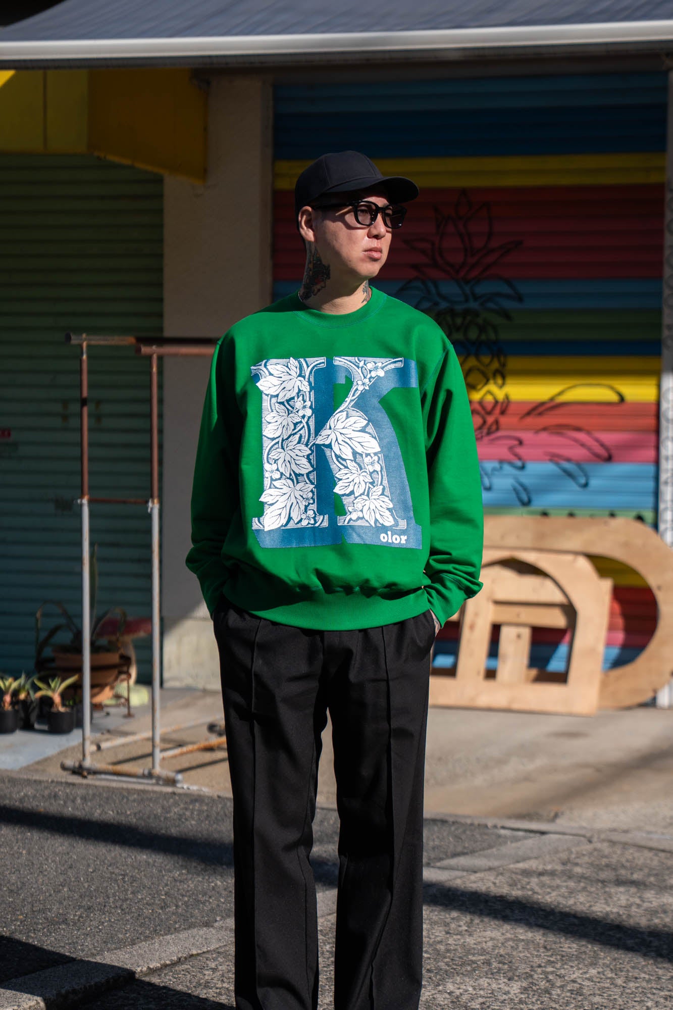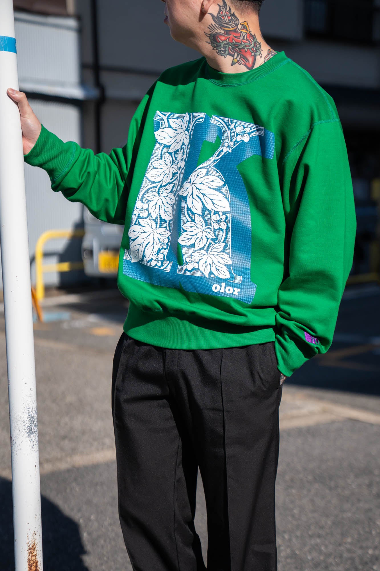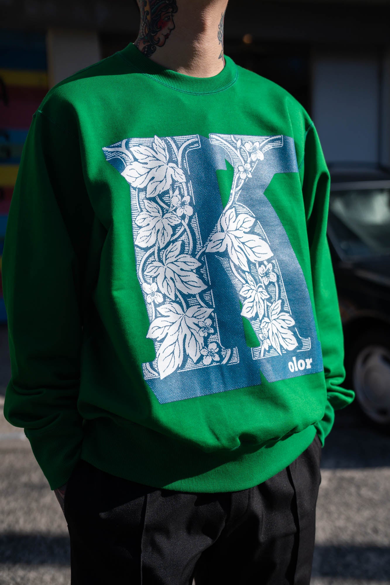kolorのロゴを立体的なグラフィックで落とし込んだスウェット。