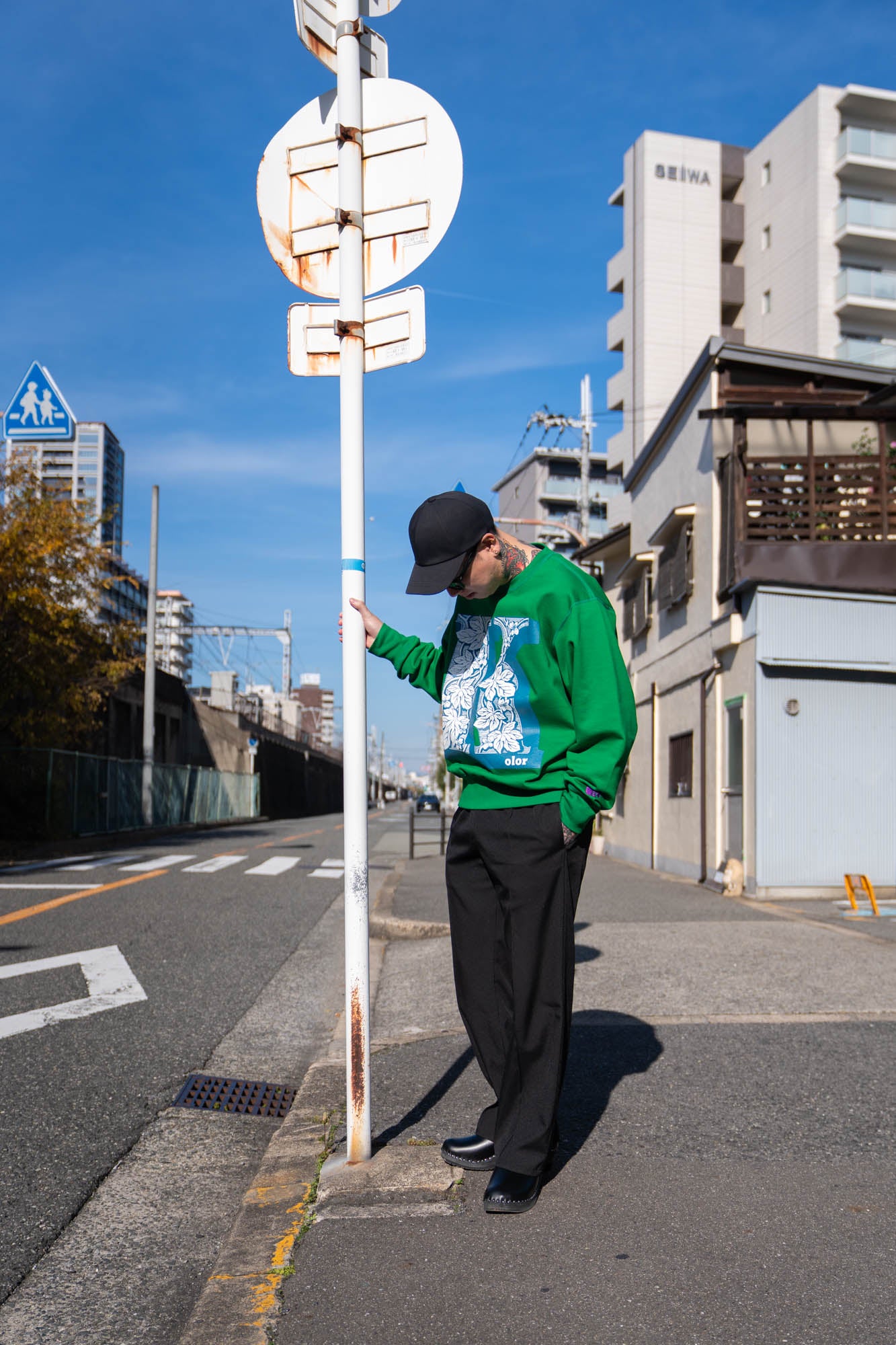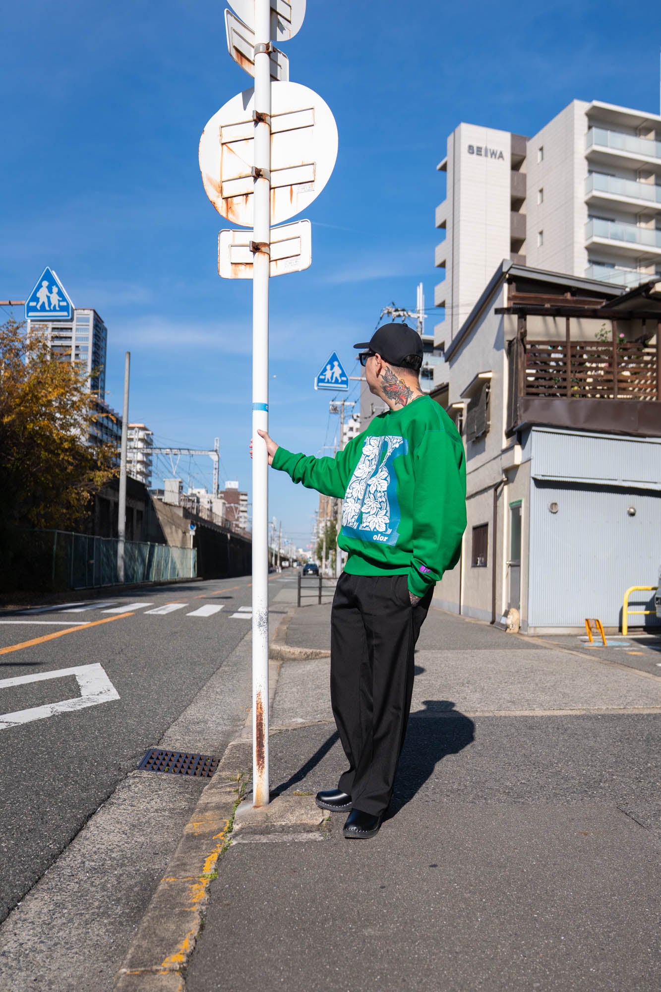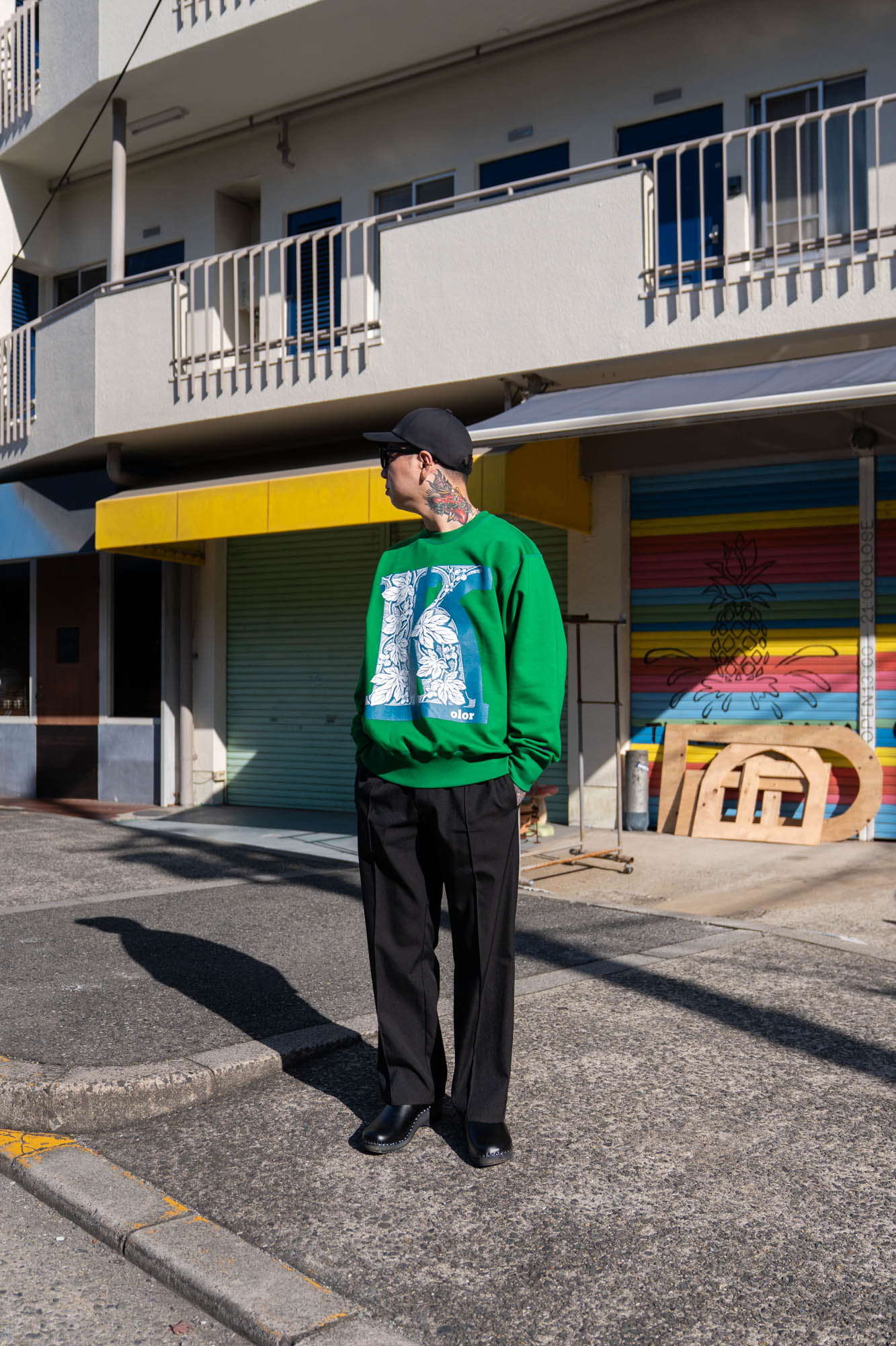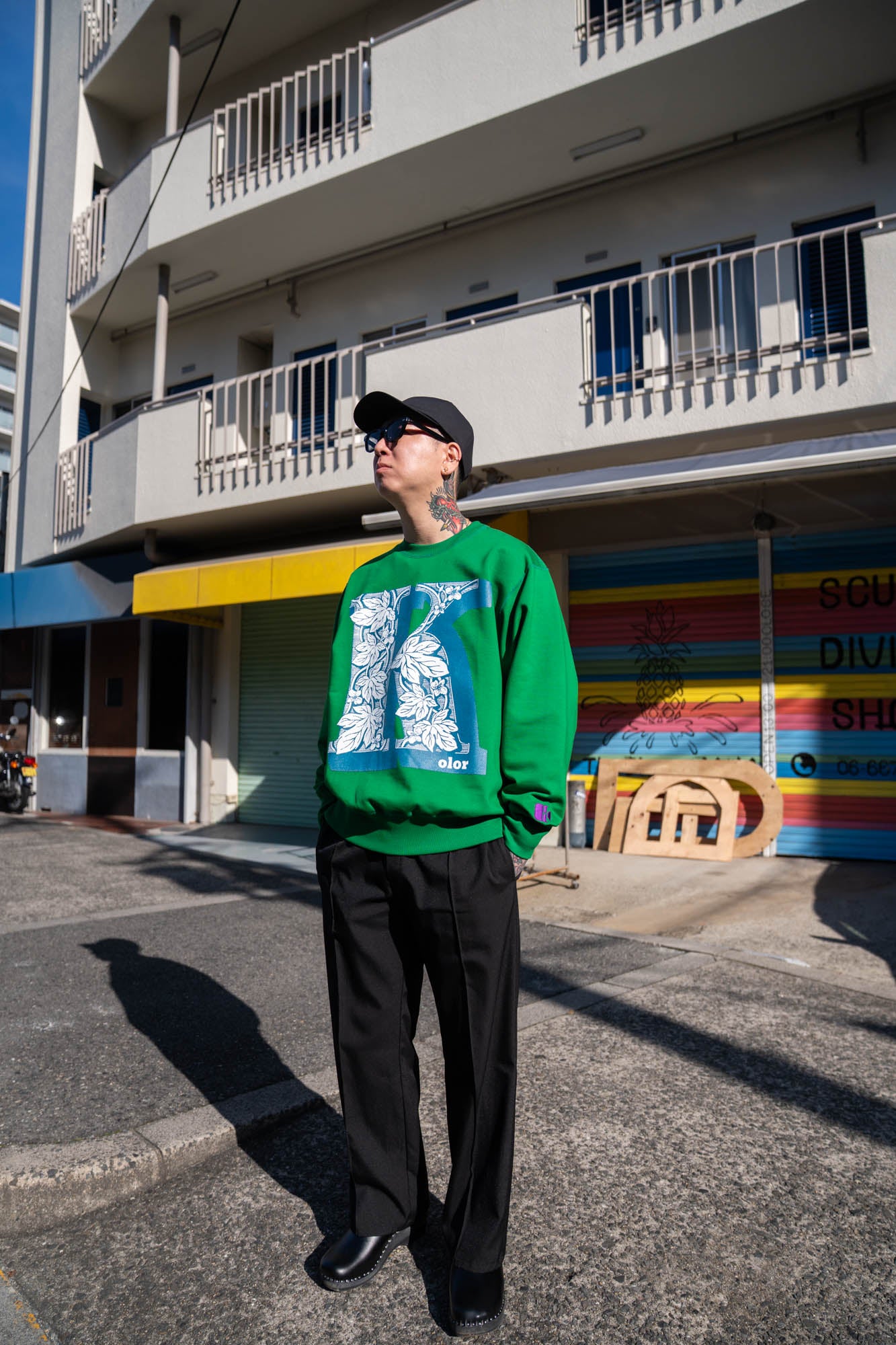 kolorのロゴを立体的なグラフィックで落とし込んだスウェット。