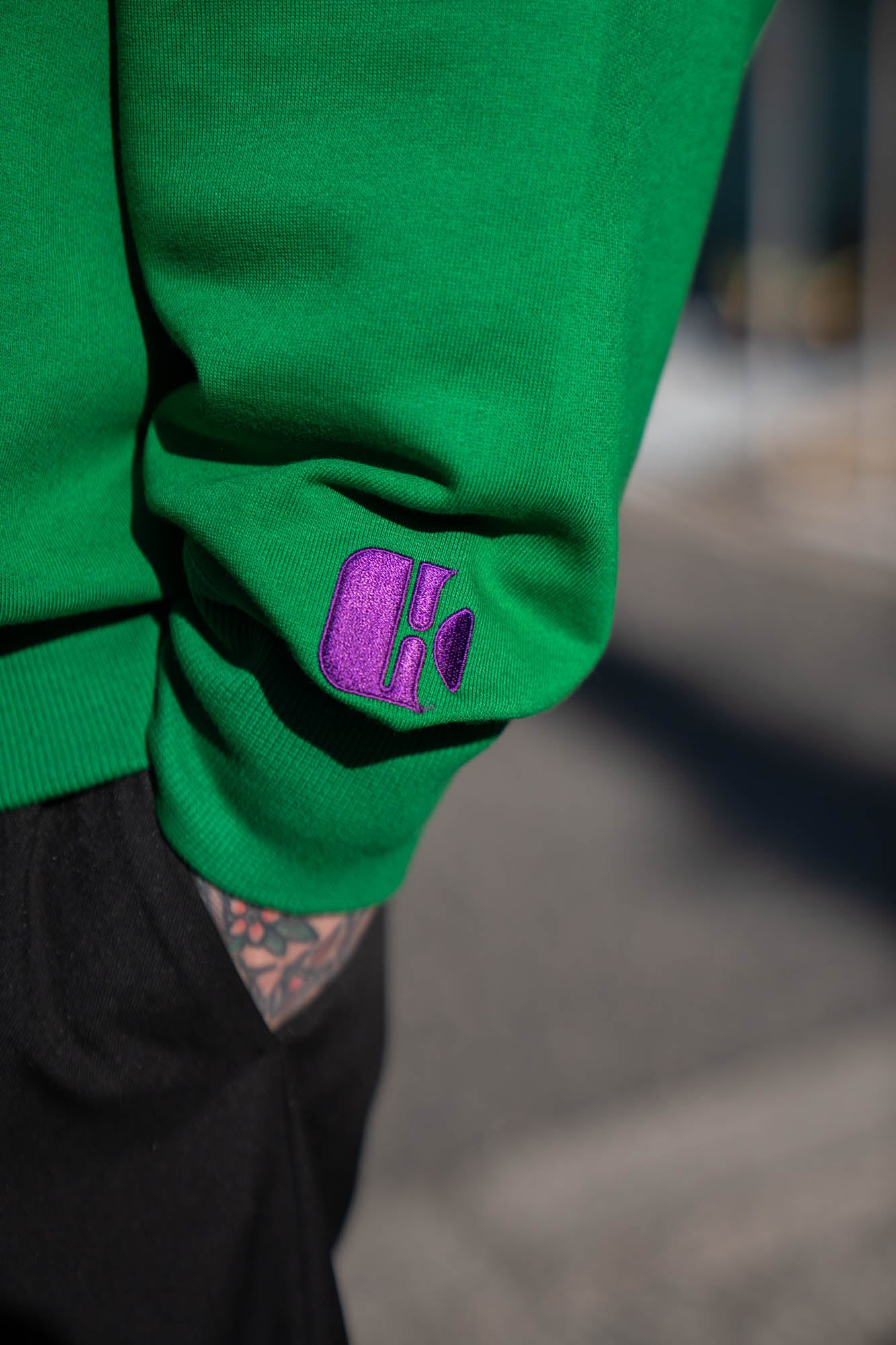左腕に刺繍されたブランドロゴが特徴的なアイテム。