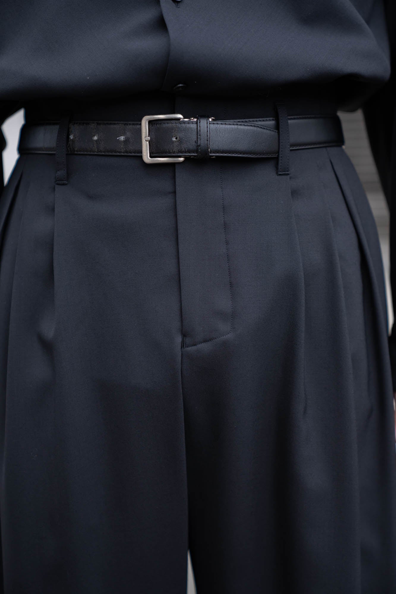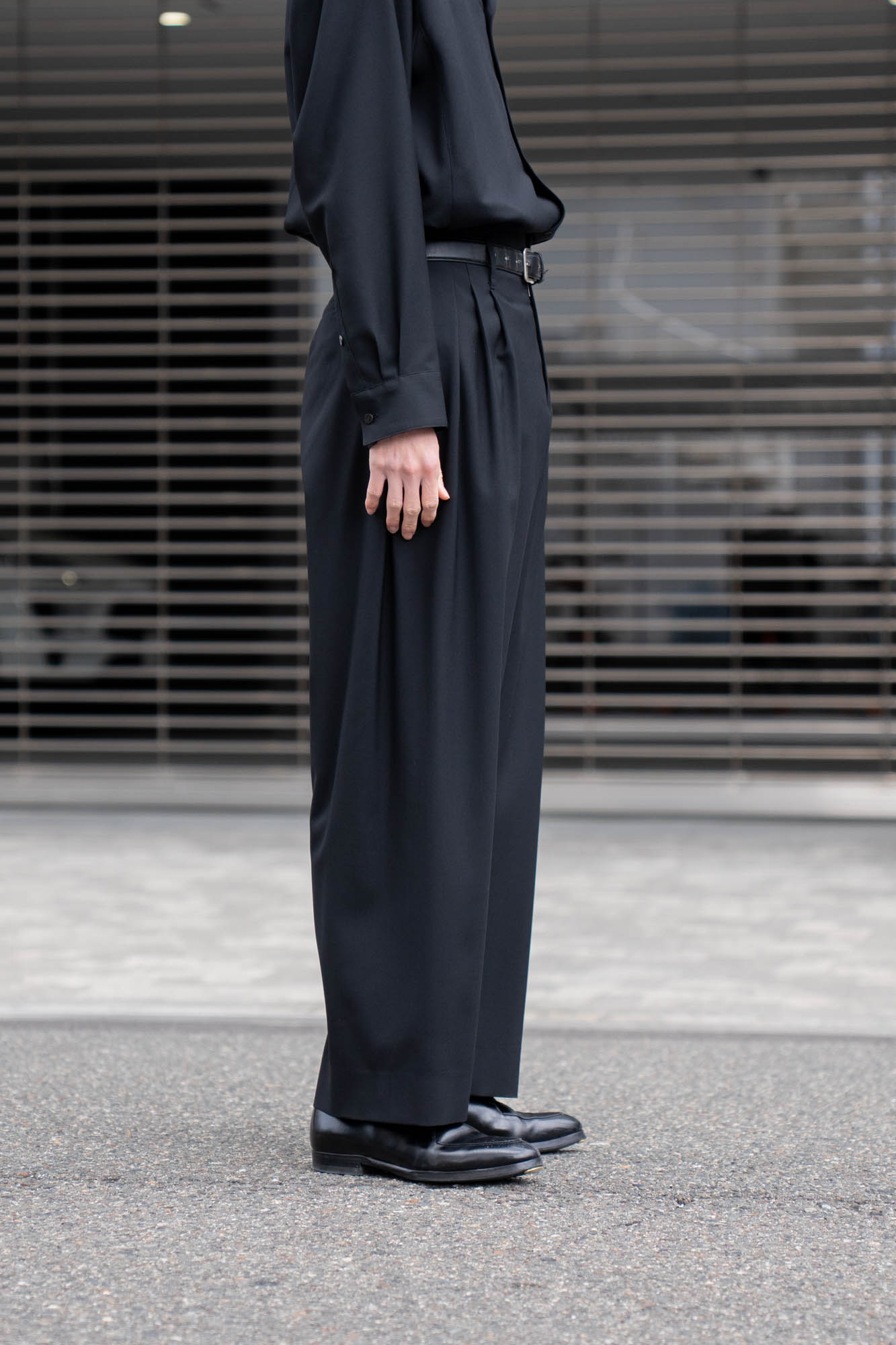 デザイナーの感覚でランダムに織られた5本のタックから生まれる立体的なボリューム感と、ワイドなシルエットが特徴。