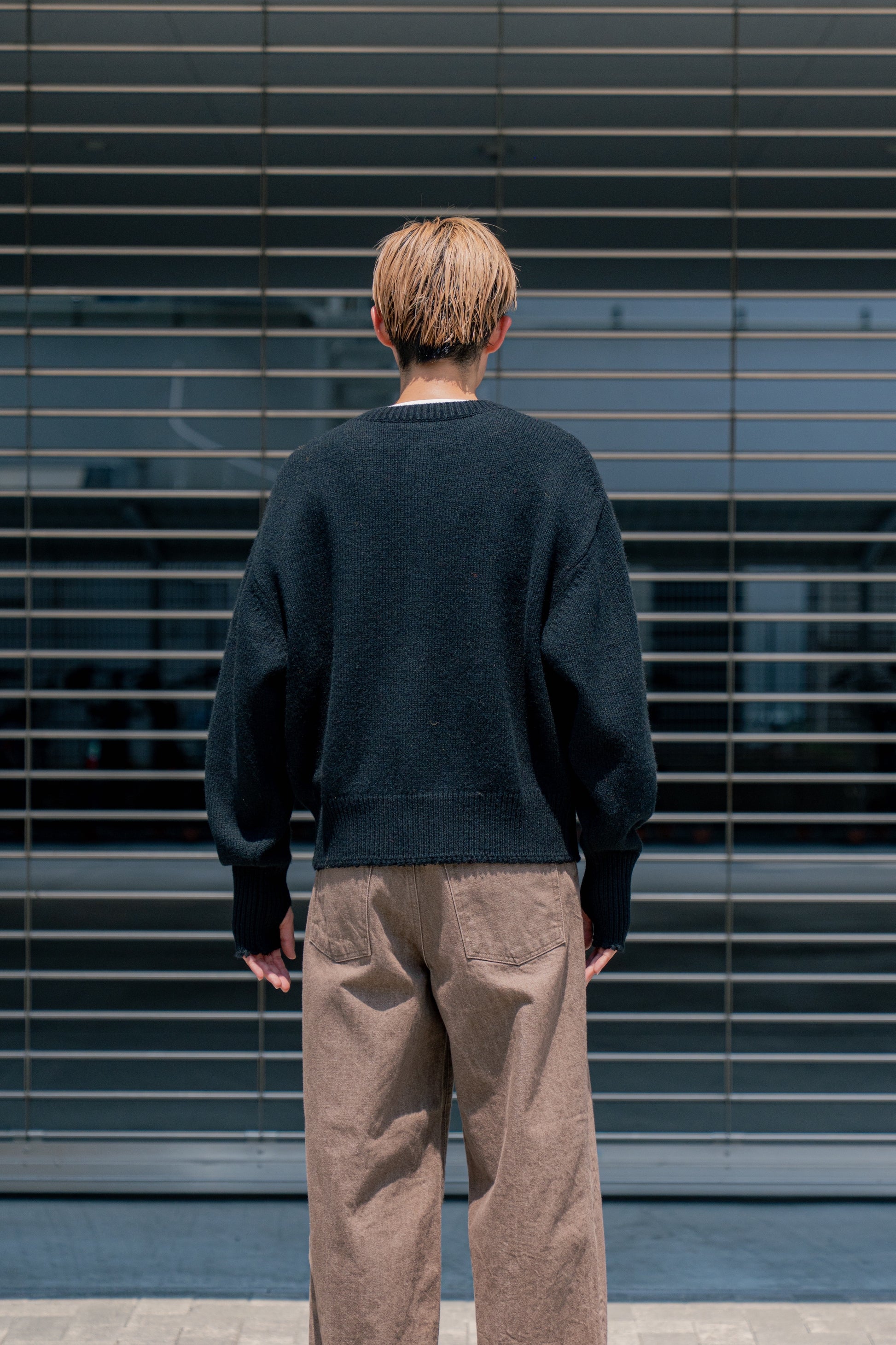 アームウォーマーとして使用しなくても極端に長い袖口のリブと提灯のように膨らんだ袖はMIDTHINGSが提案する新しいシルエットです。