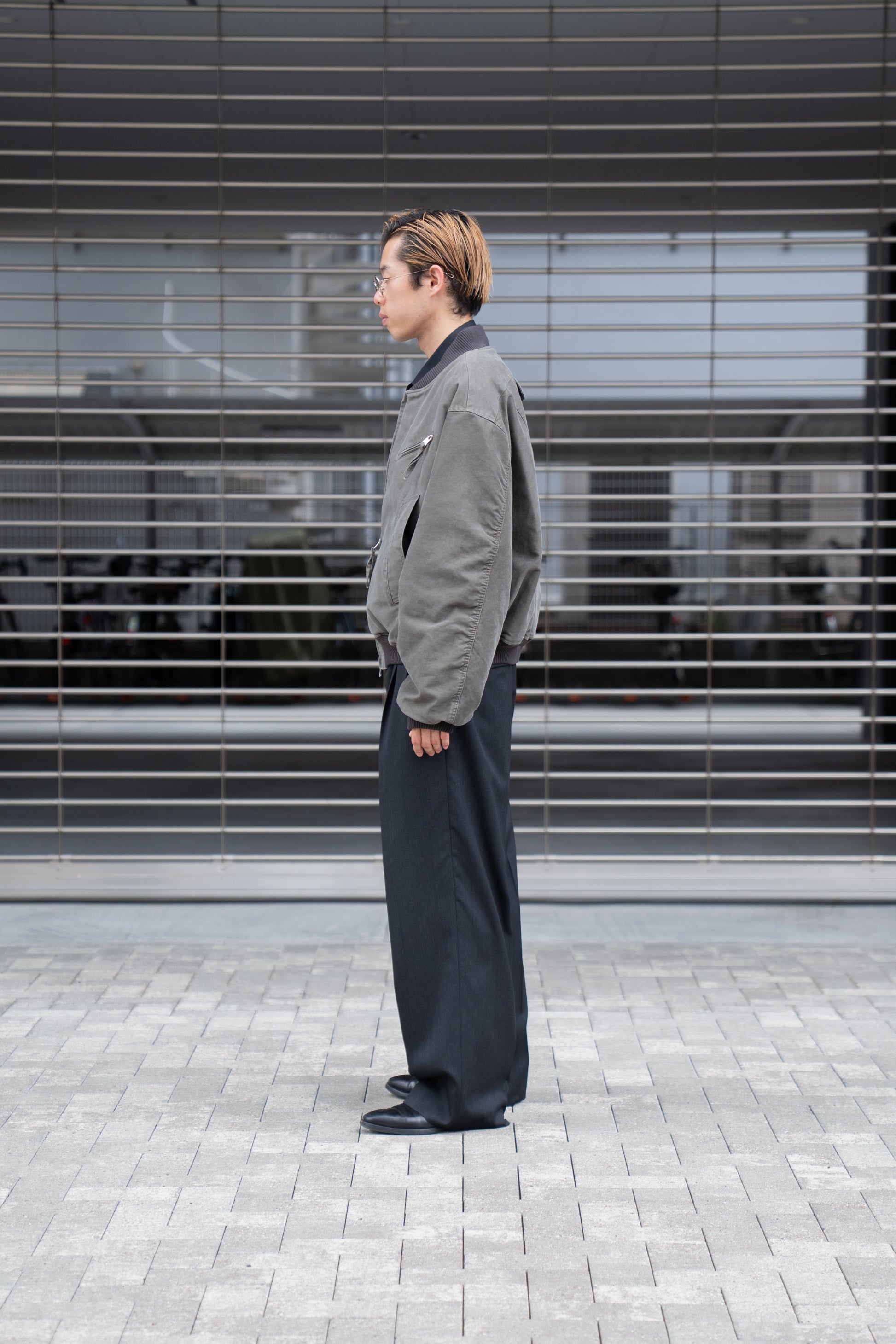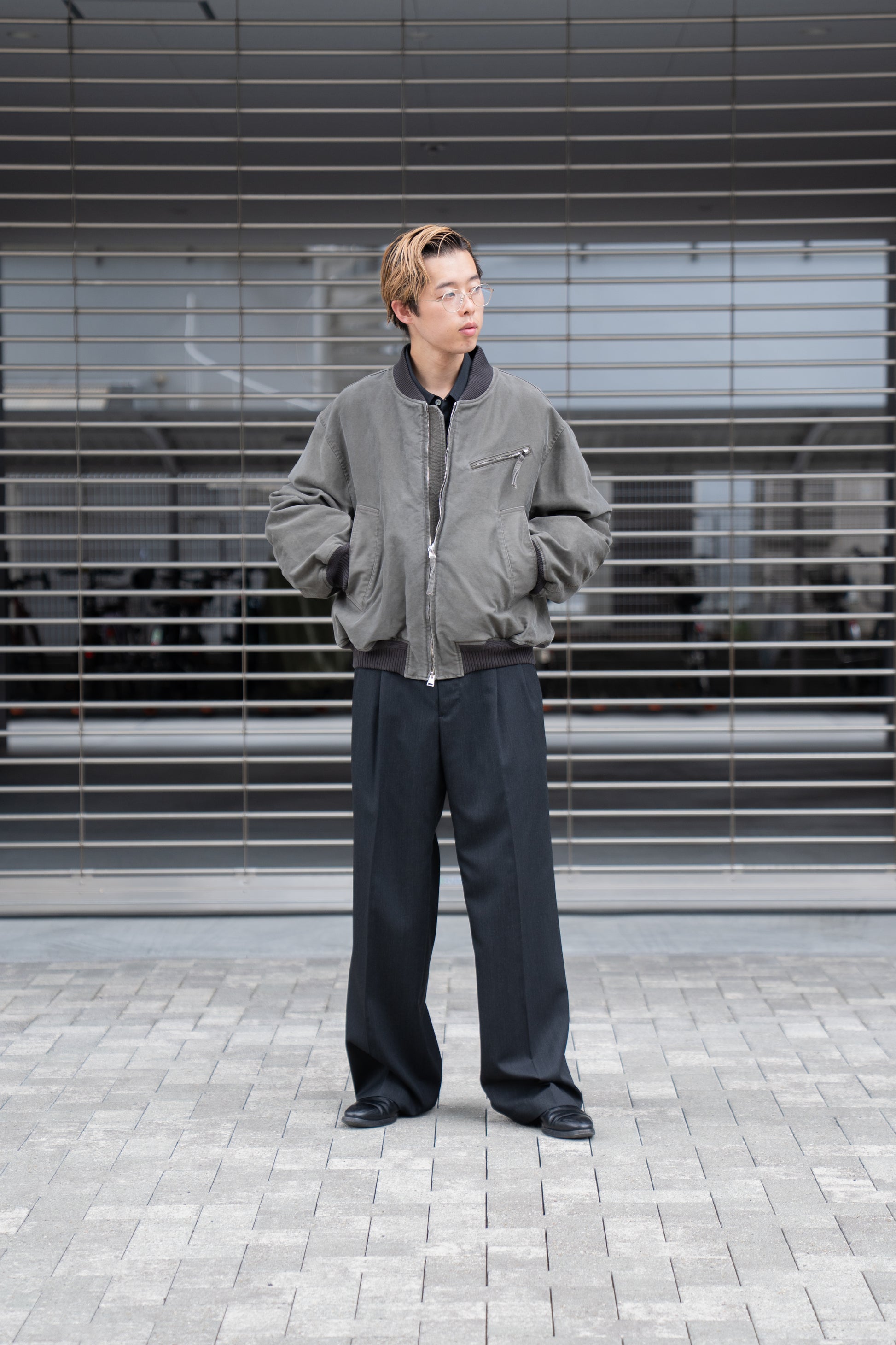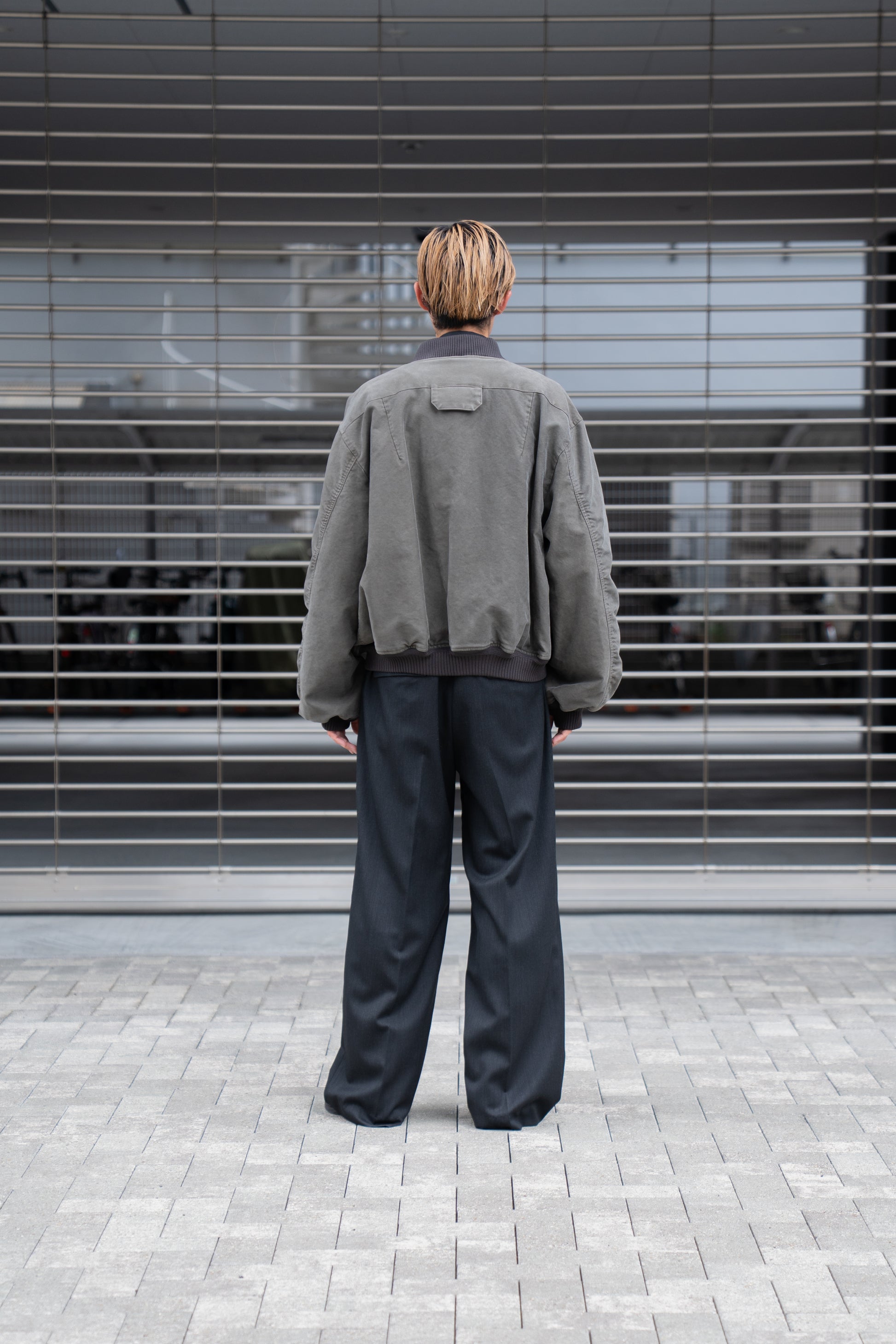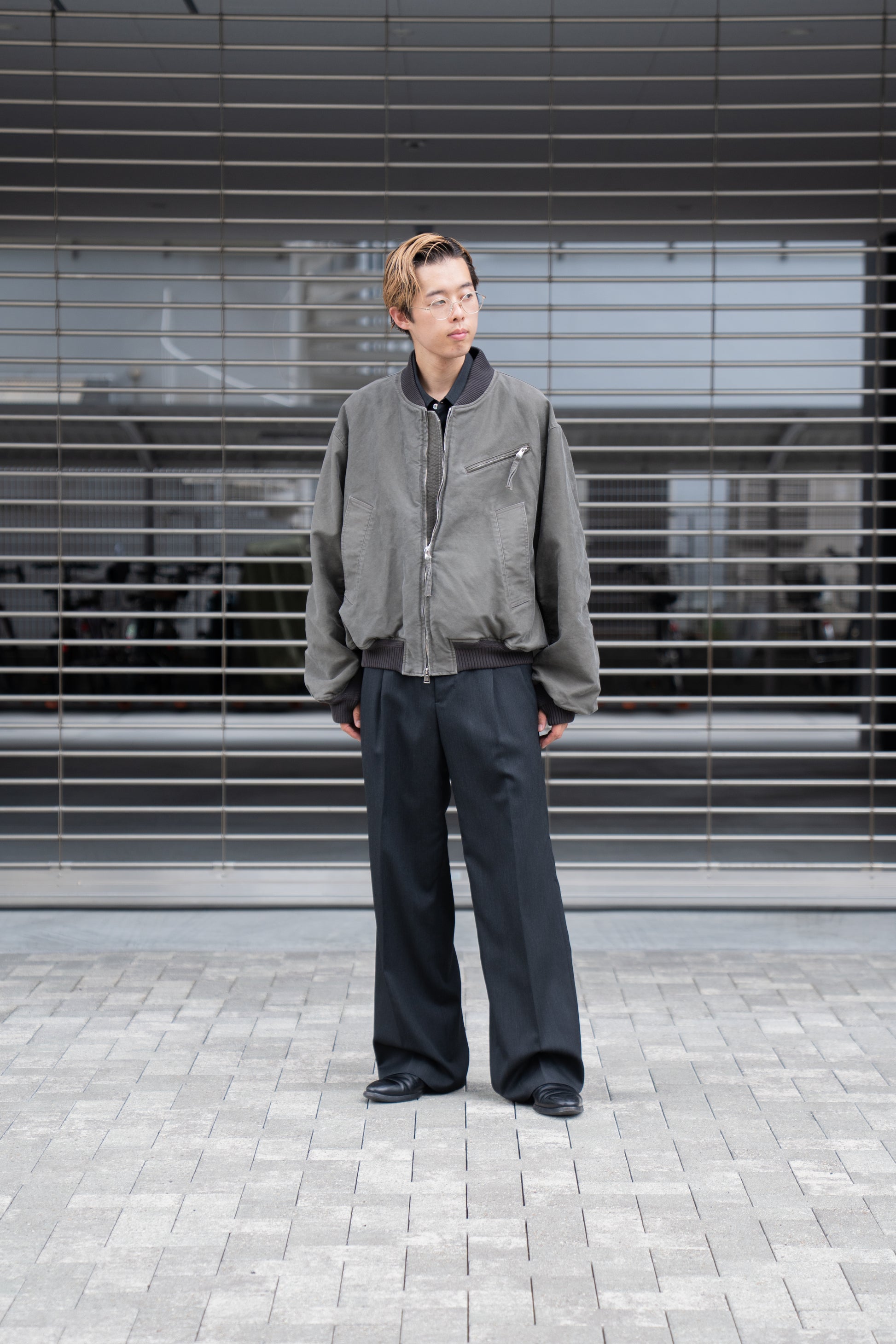 高密度に織り上げた日本製オーガニックコットン・モールスキンを硫化染めし、ボンバージャケットに仕立てたアイテム。