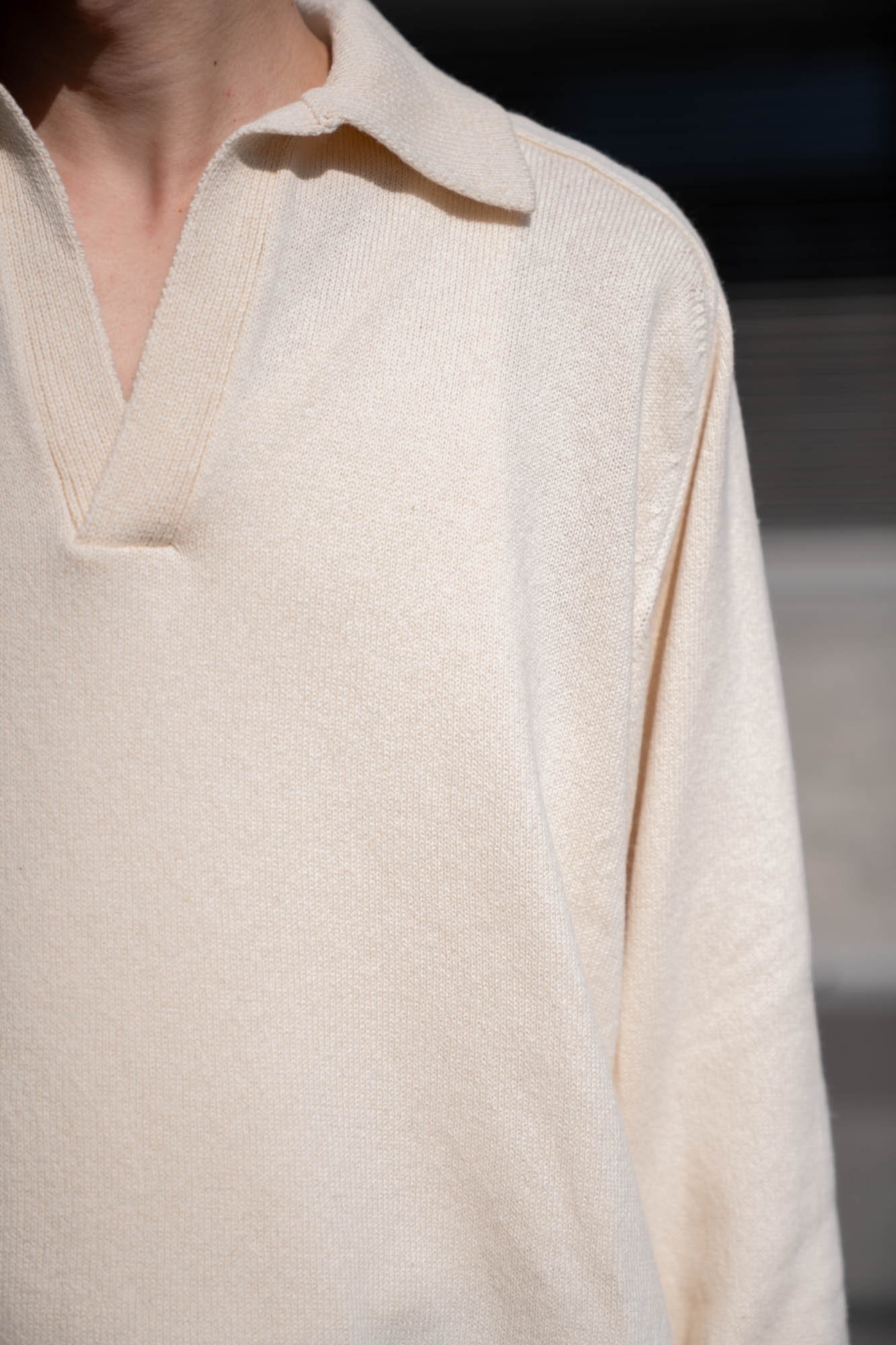 ふっくら柔らかいコットンとカシミア素材のVネックニット。