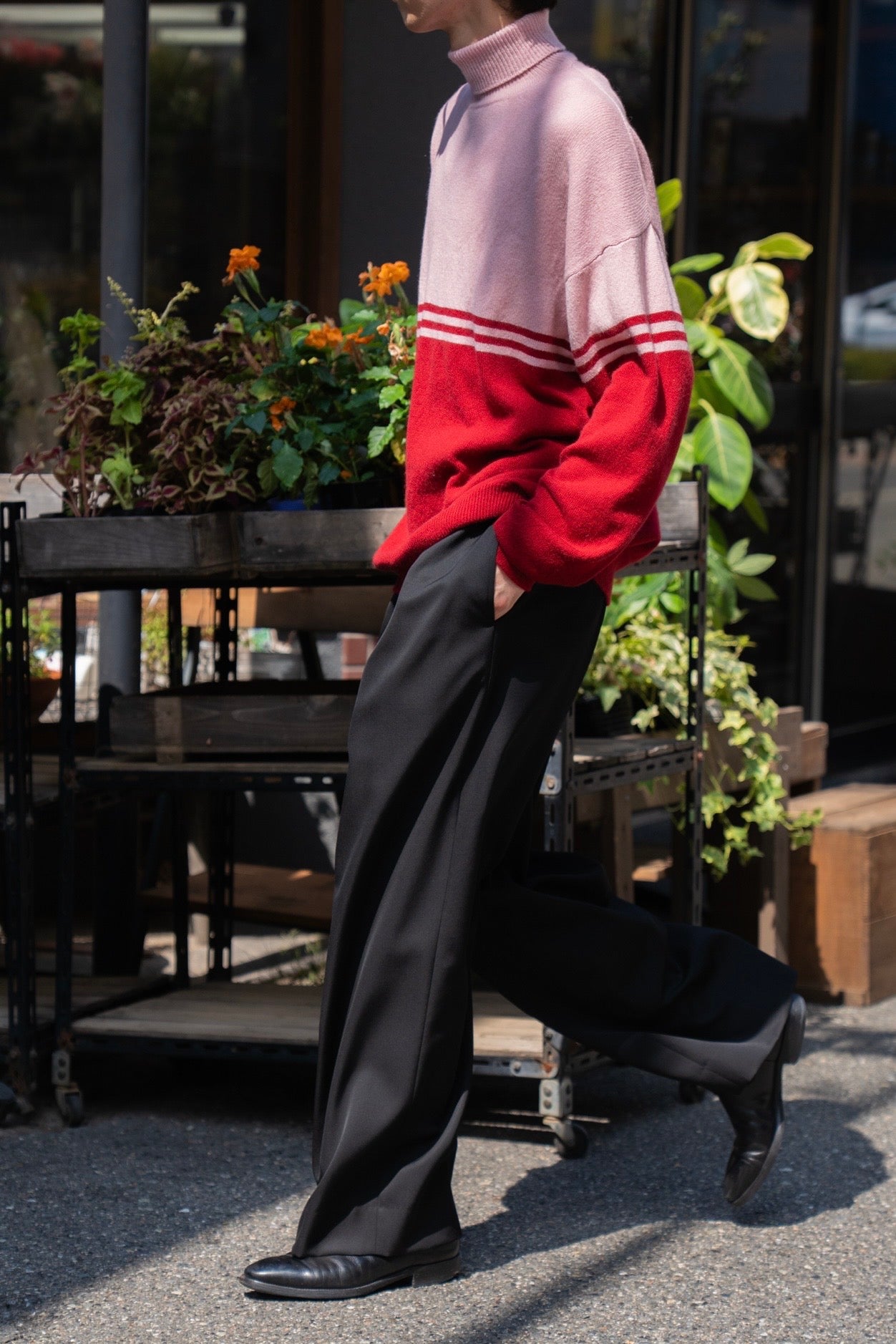 8Gでふんわり編んだカシミヤタートルセーター。