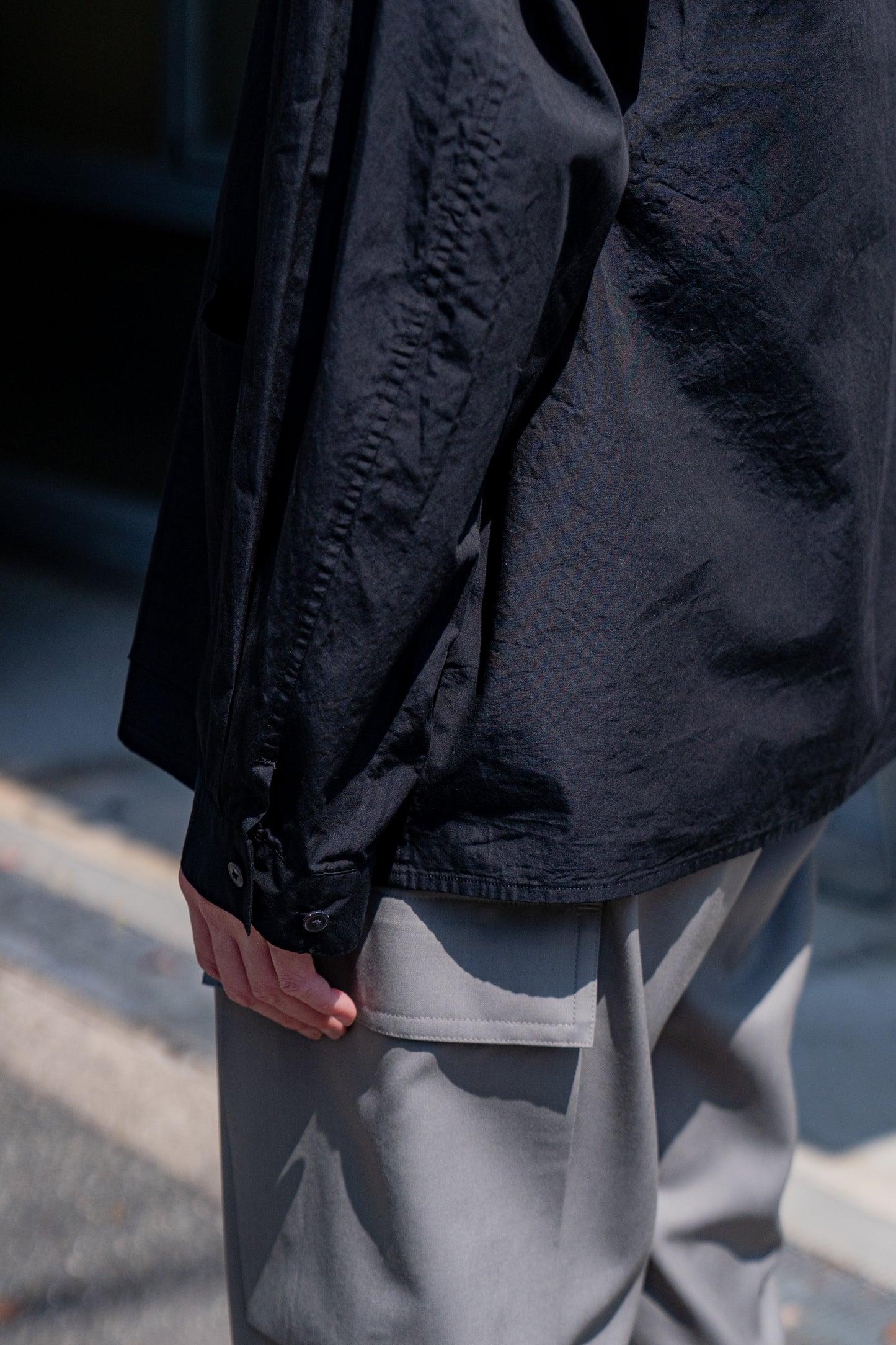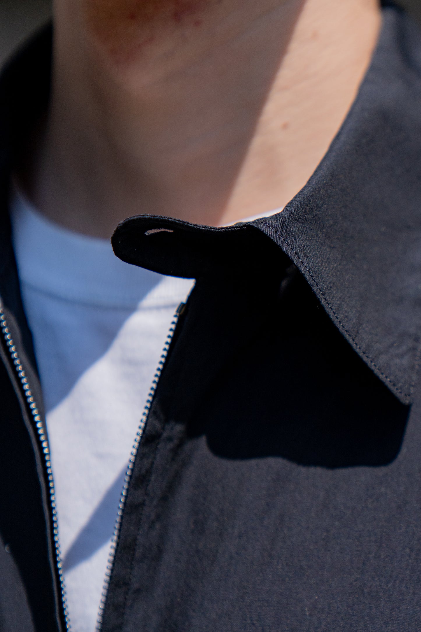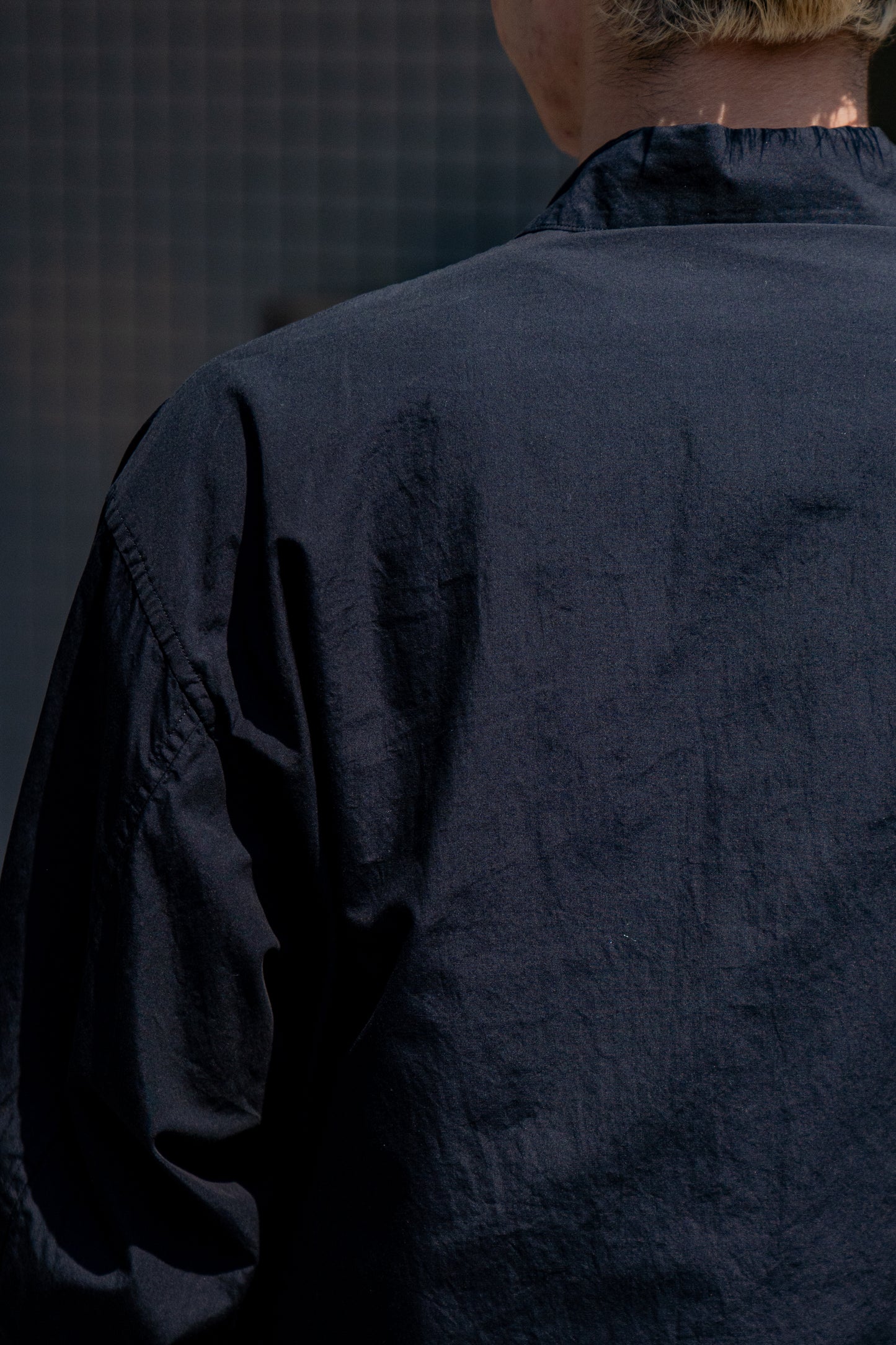 超長綿の経糸緯糸を少し色を変えシャトル織機で時間をかけ高密度に織り上げ、自然な光沢とクタッとした柔らかな肌触り、綺麗すぎず少し不揃いな表面感が特徴です。