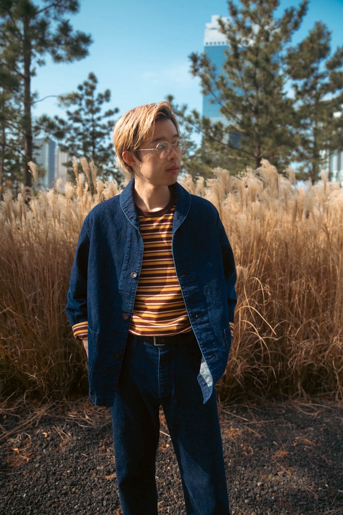 WWⅡショールカラージャケットをベースにし、サイズアレンジをしていますが、ややボックスシルエットはそのままに。