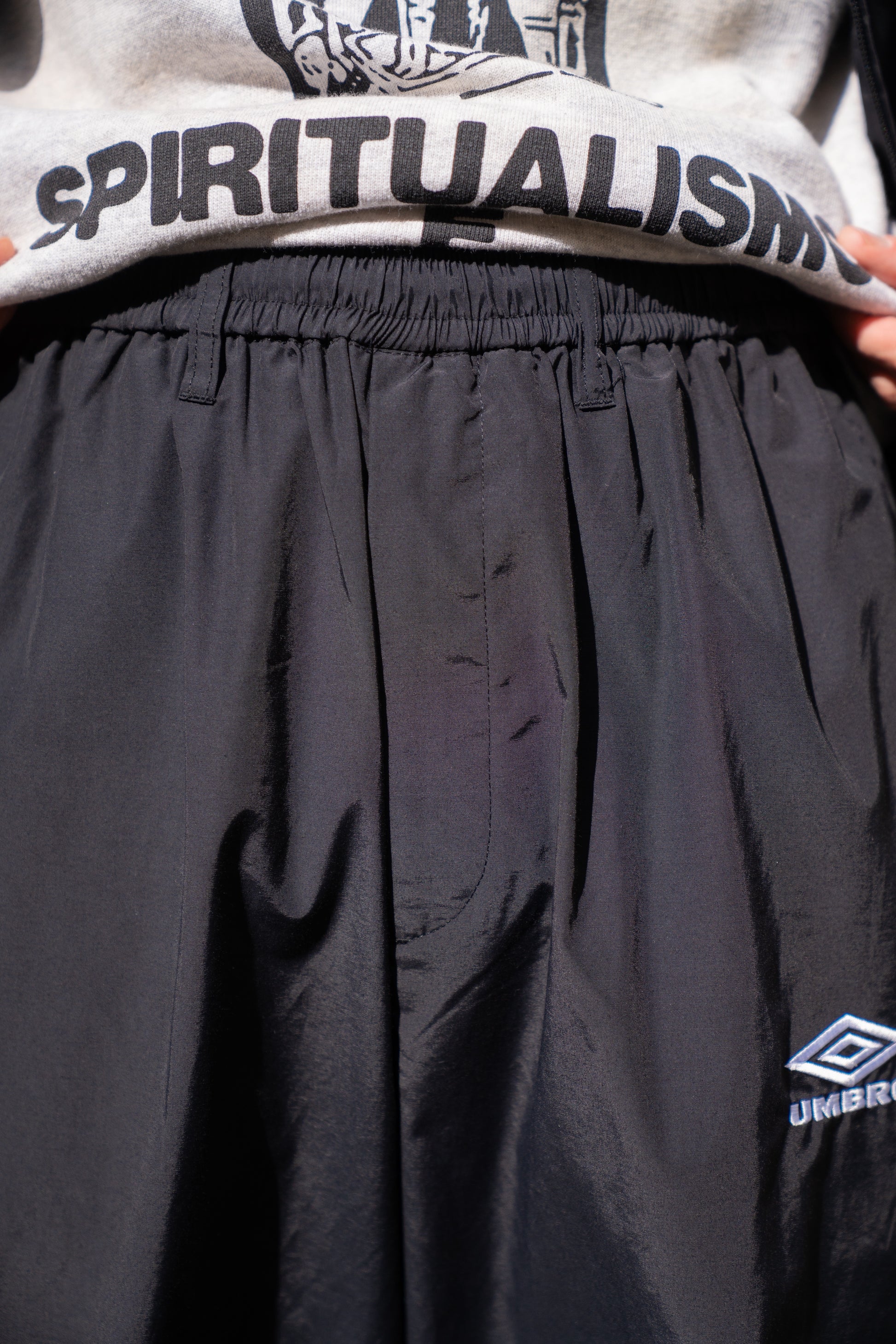 UMBRO特有のスポーティか印象を残しながらsssteinが持つモードな印象を加える為、光沢感と軽やかさを抑えたナイロンコットンを使う事でファッションアイテムとして昇華。