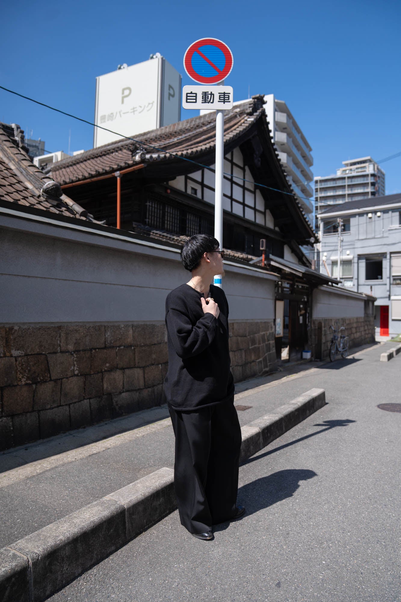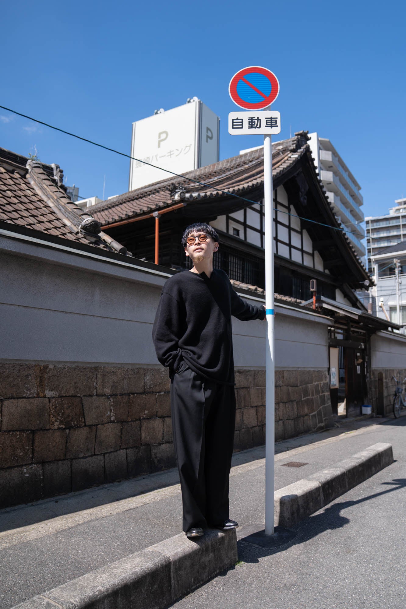 手編み機でパーツごとに編み地を編み、手で接ぎ合わせる。リブも手で作っている為、機械では出せない不揃い感が味になっています。