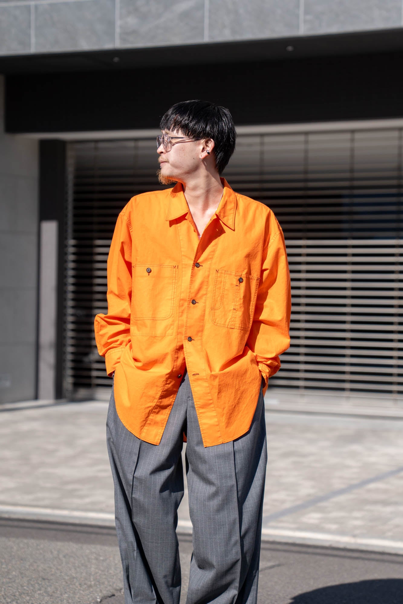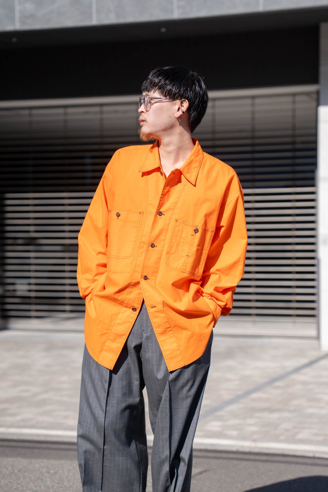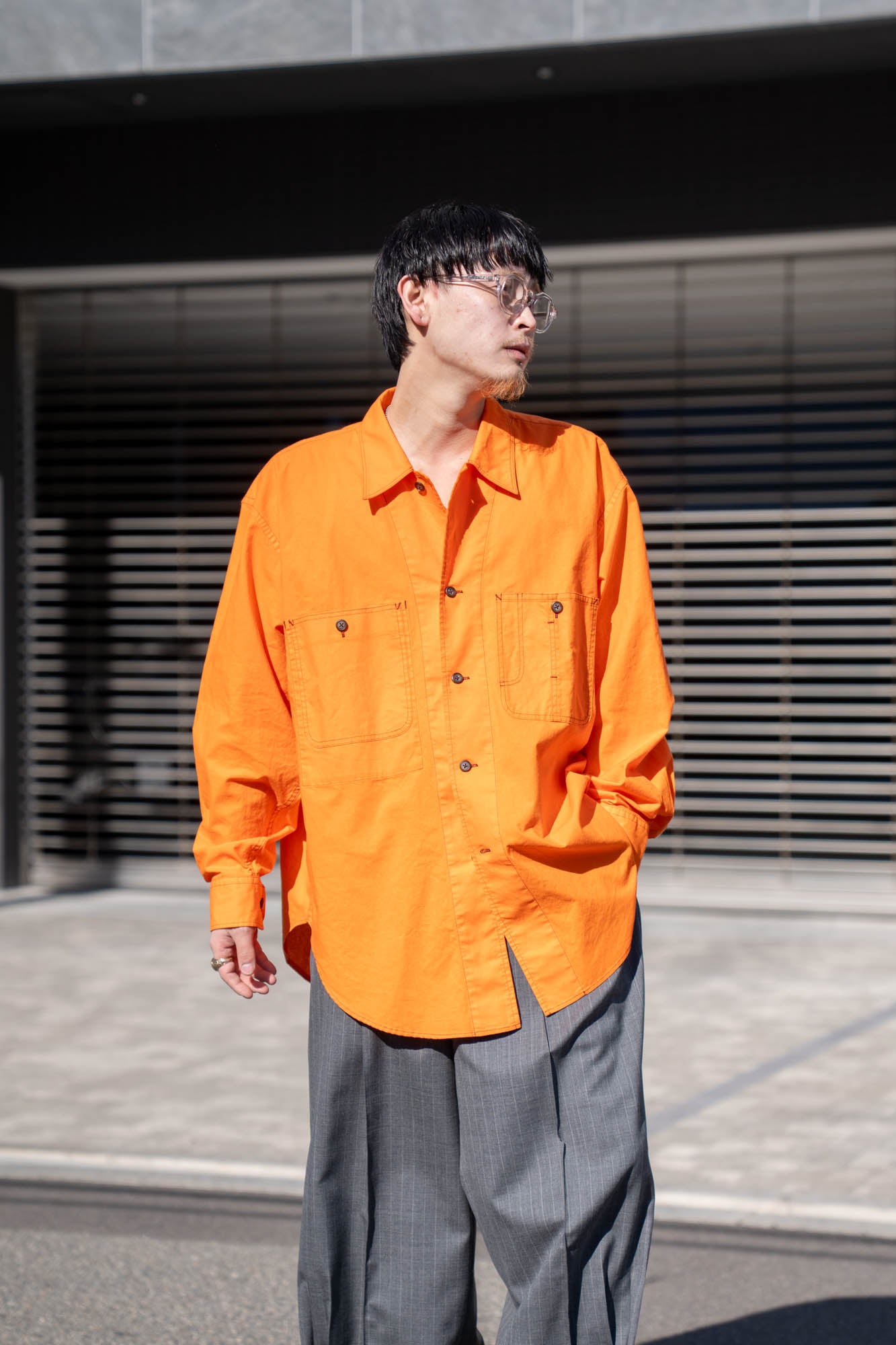 両胸のポケットとステッチがアクセントとなり全体を引き締め、アウターライクに楽しめる1着です。