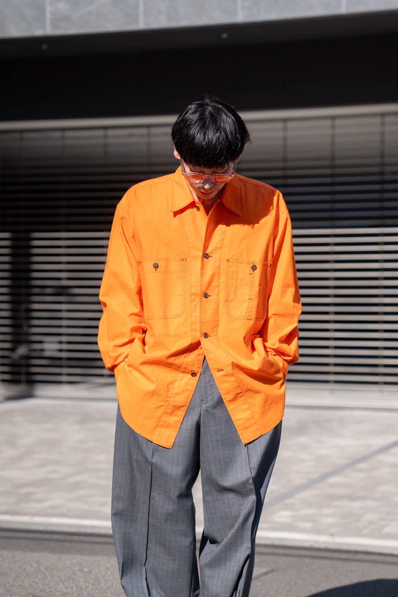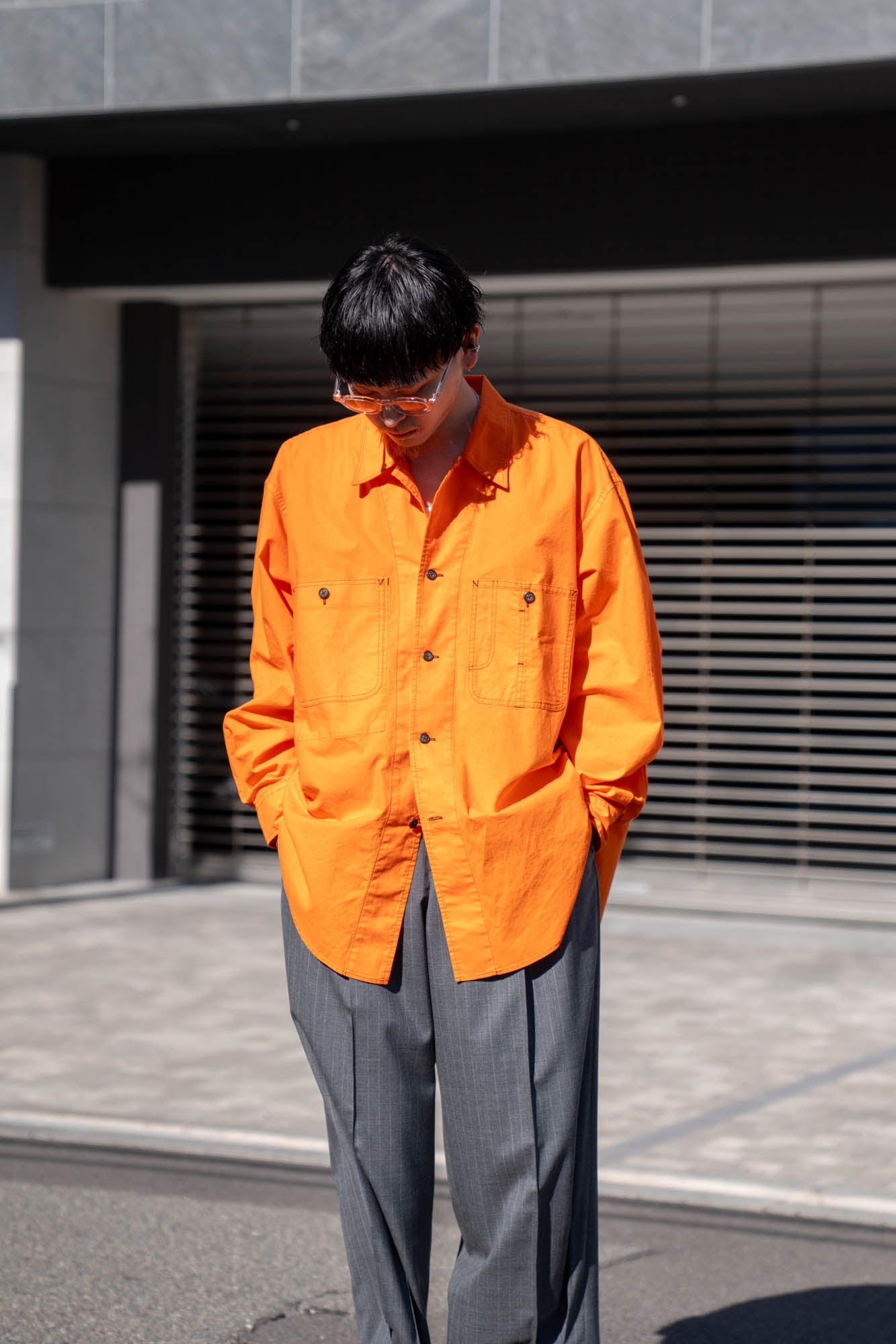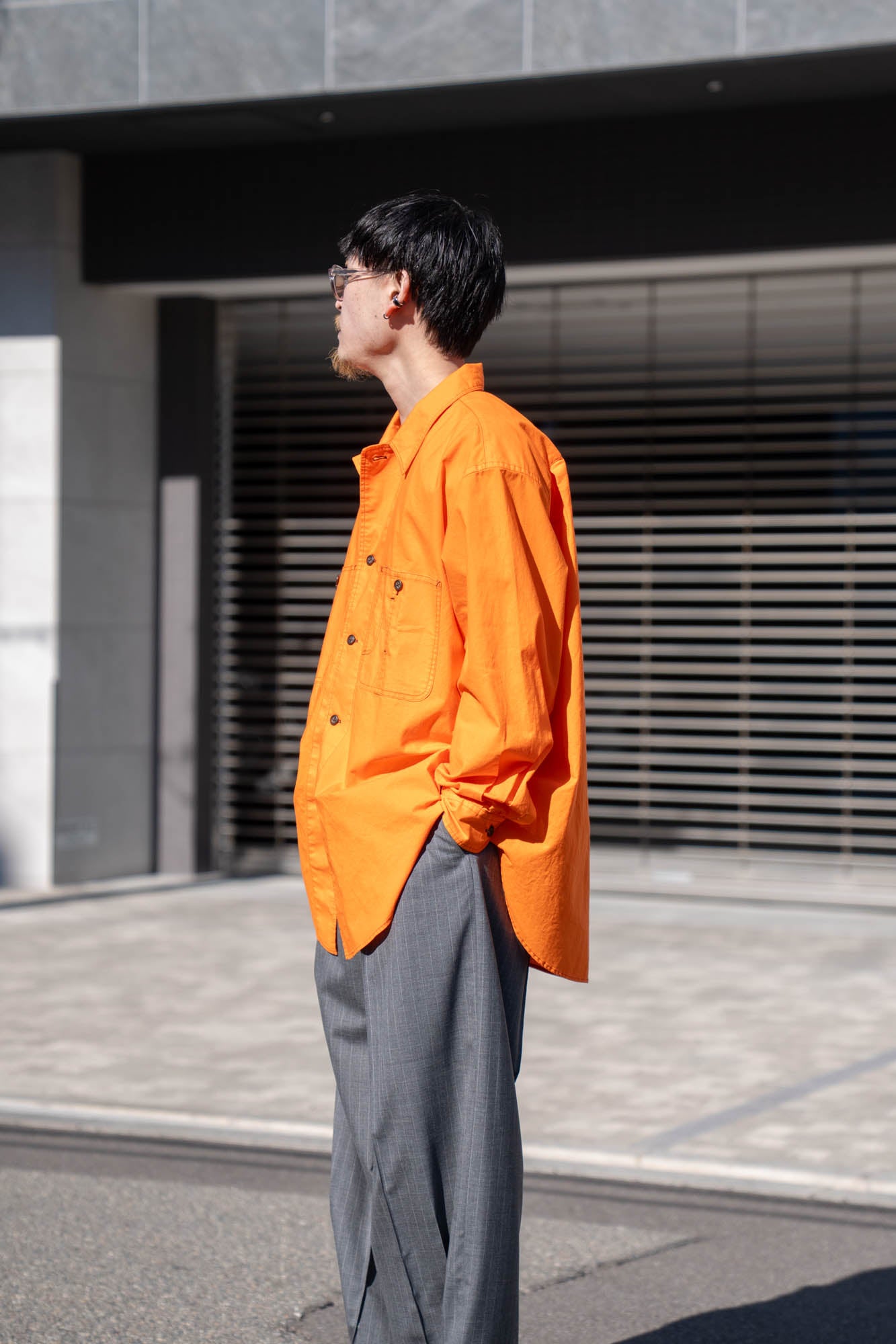 両胸のポケットとステッチがアクセントとなり全体を引き締め、アウターライクに楽しめる1着です。
