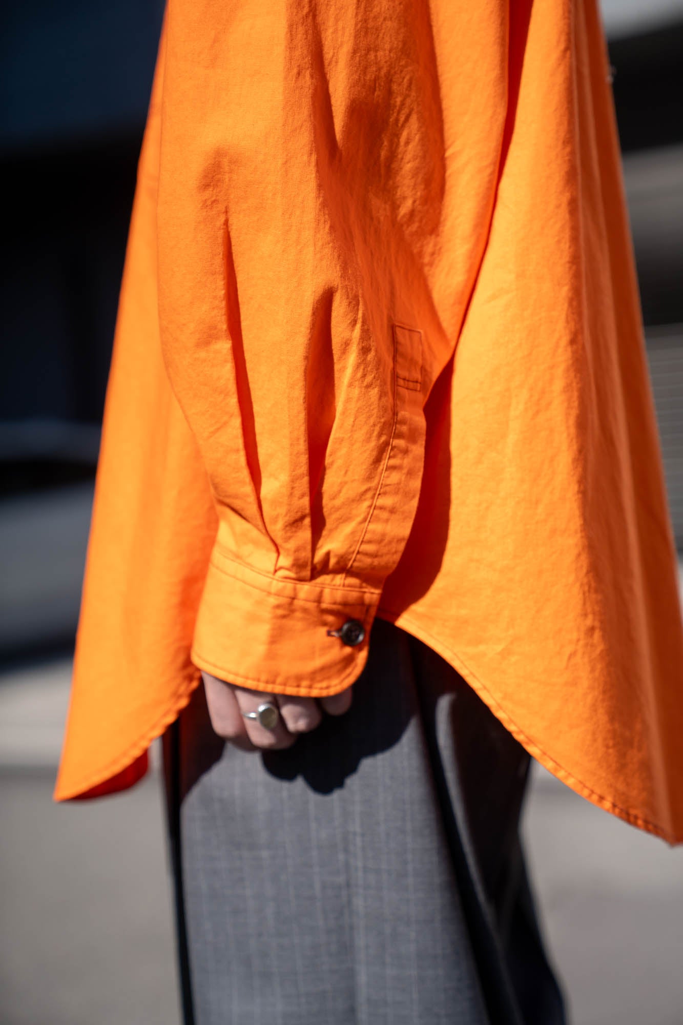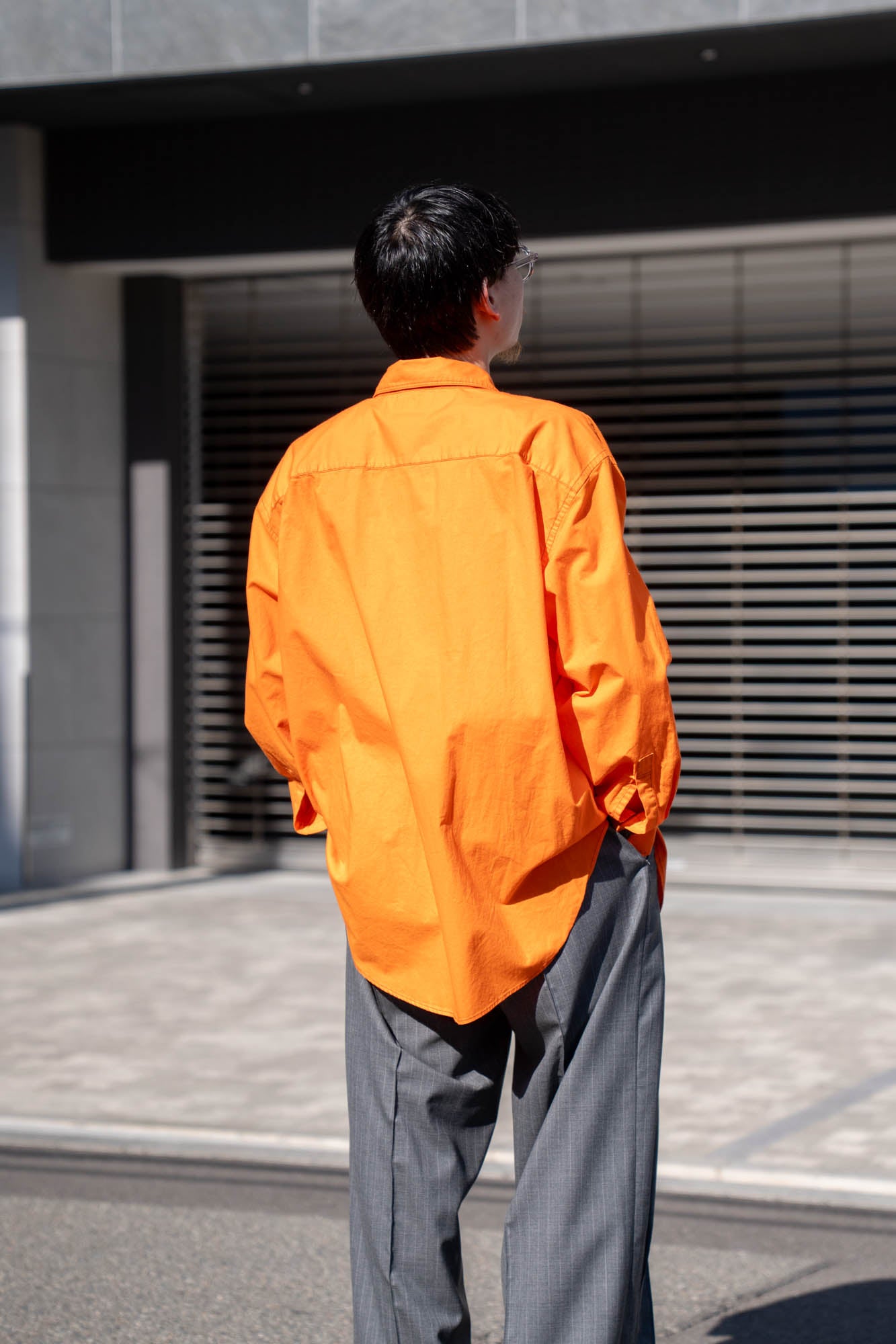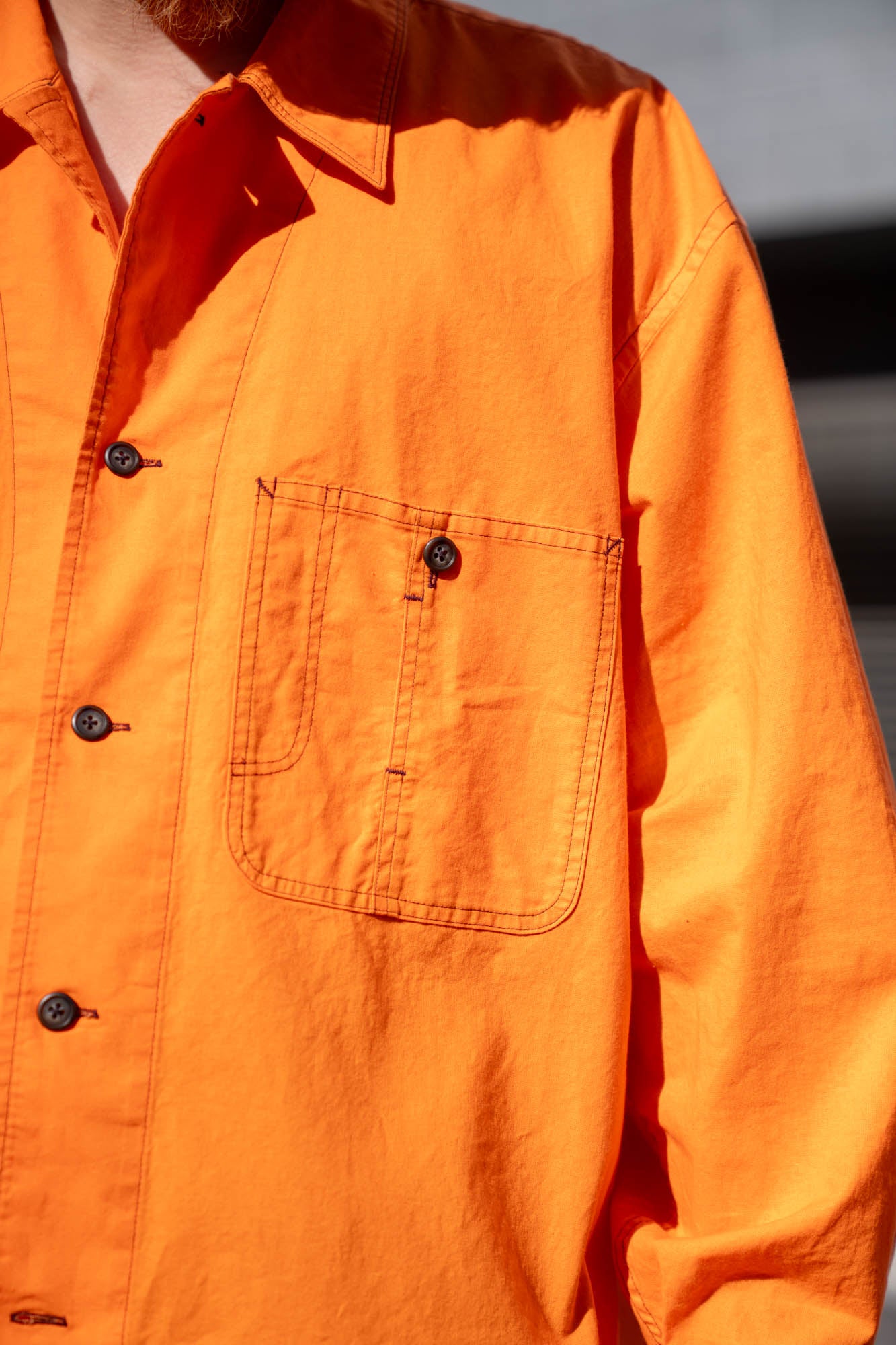 ワークジャケットのカバーオールのデザインをシャツに落とし込んだデザイン。