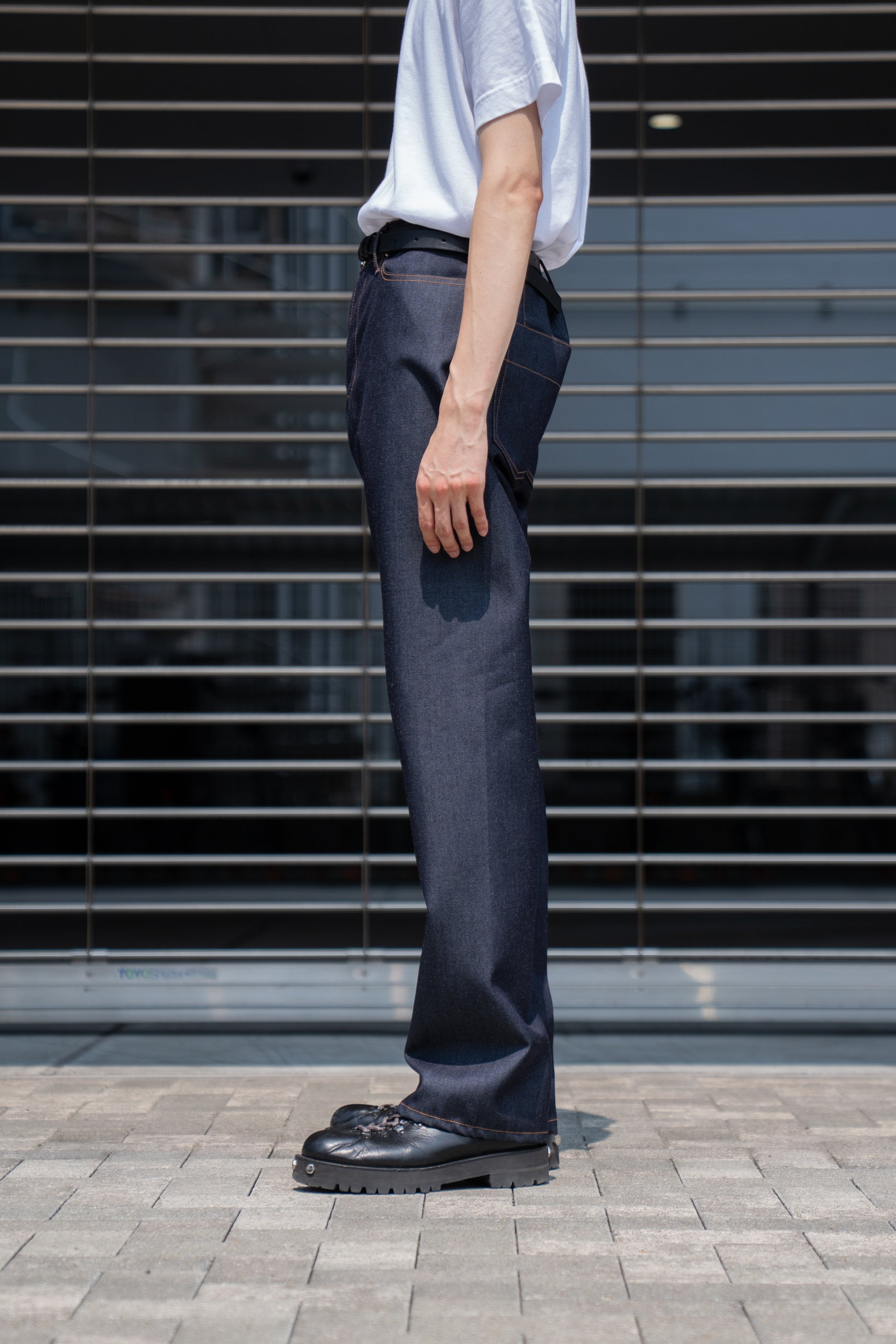 オーソドックスな5ポケットデニムをベースにしつつ、シルエットはストレートに整え、ジェンダーレスに楽しめる一本。