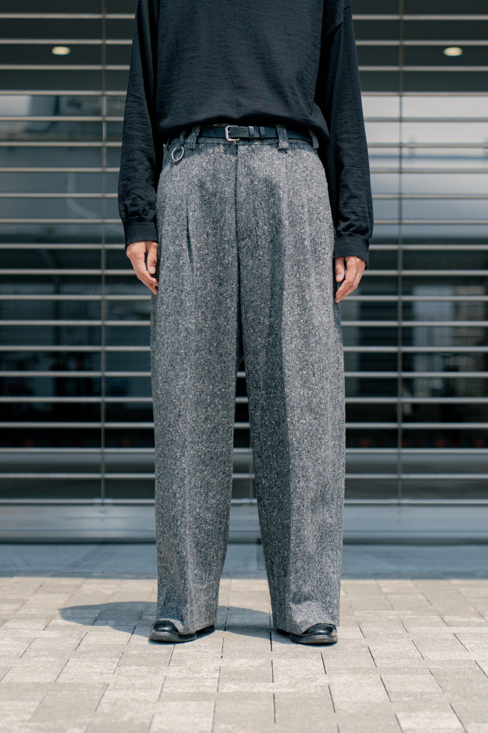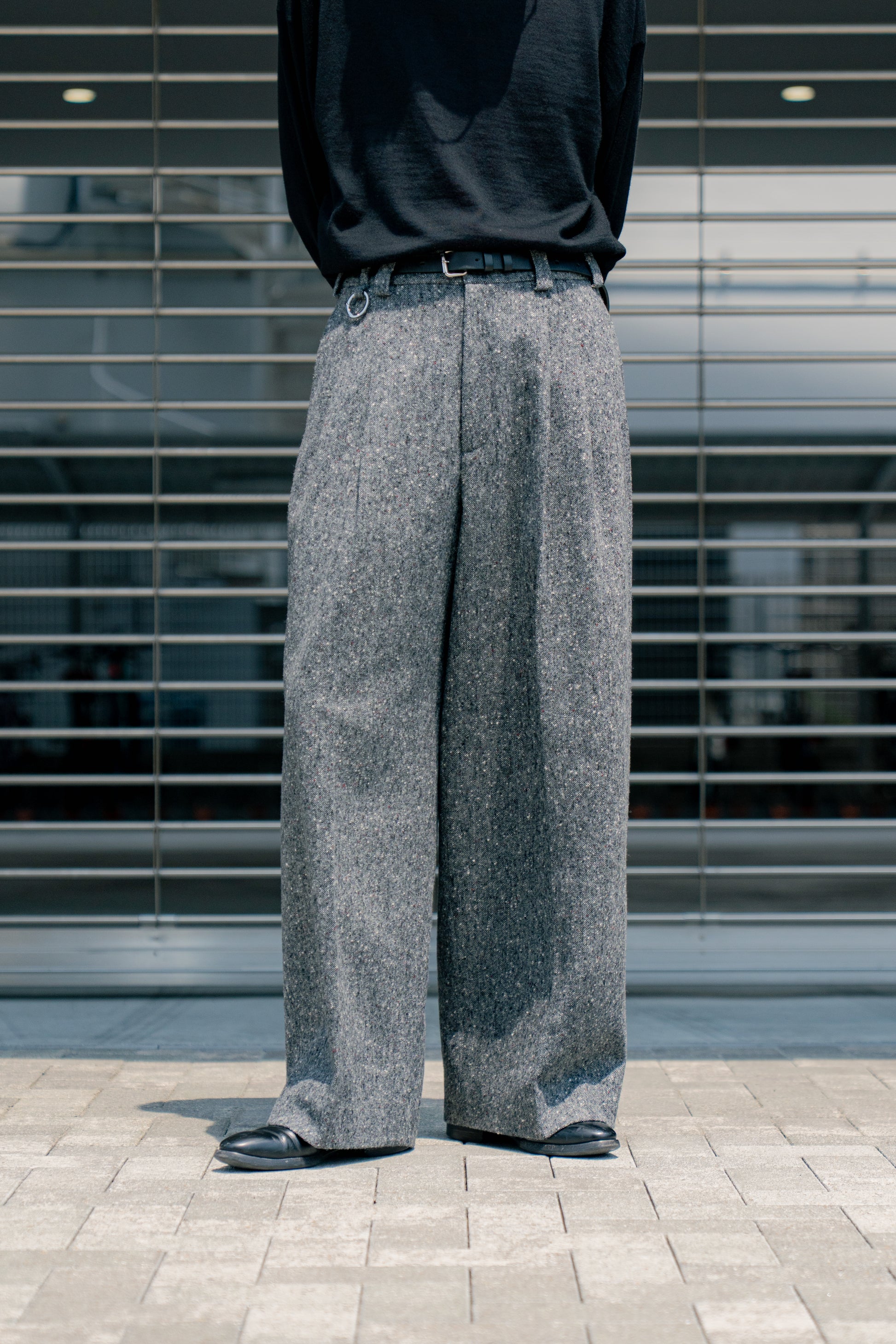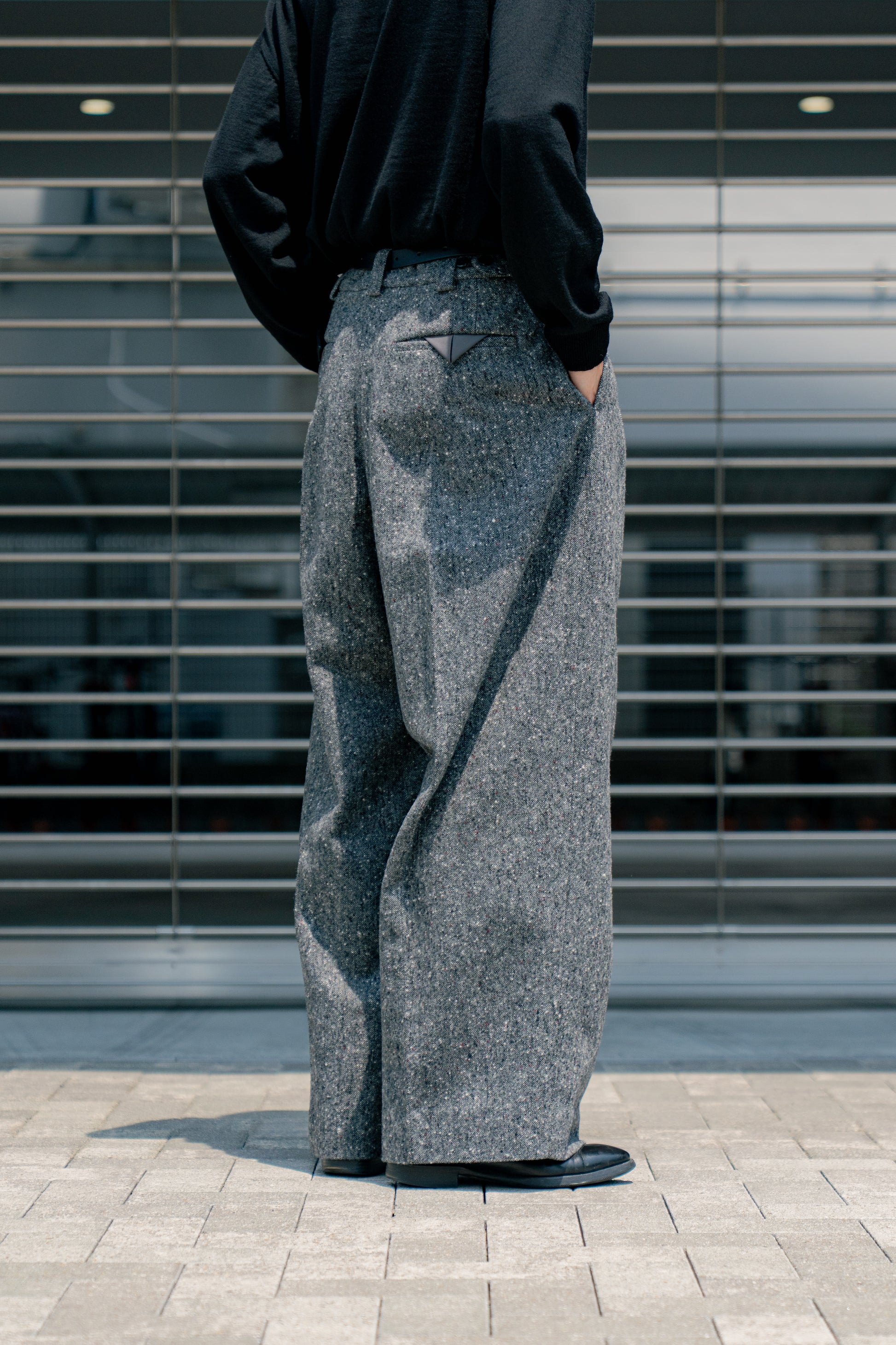 しっかりと太さを出したワイドシルエットが存在感を放つスラックス。
