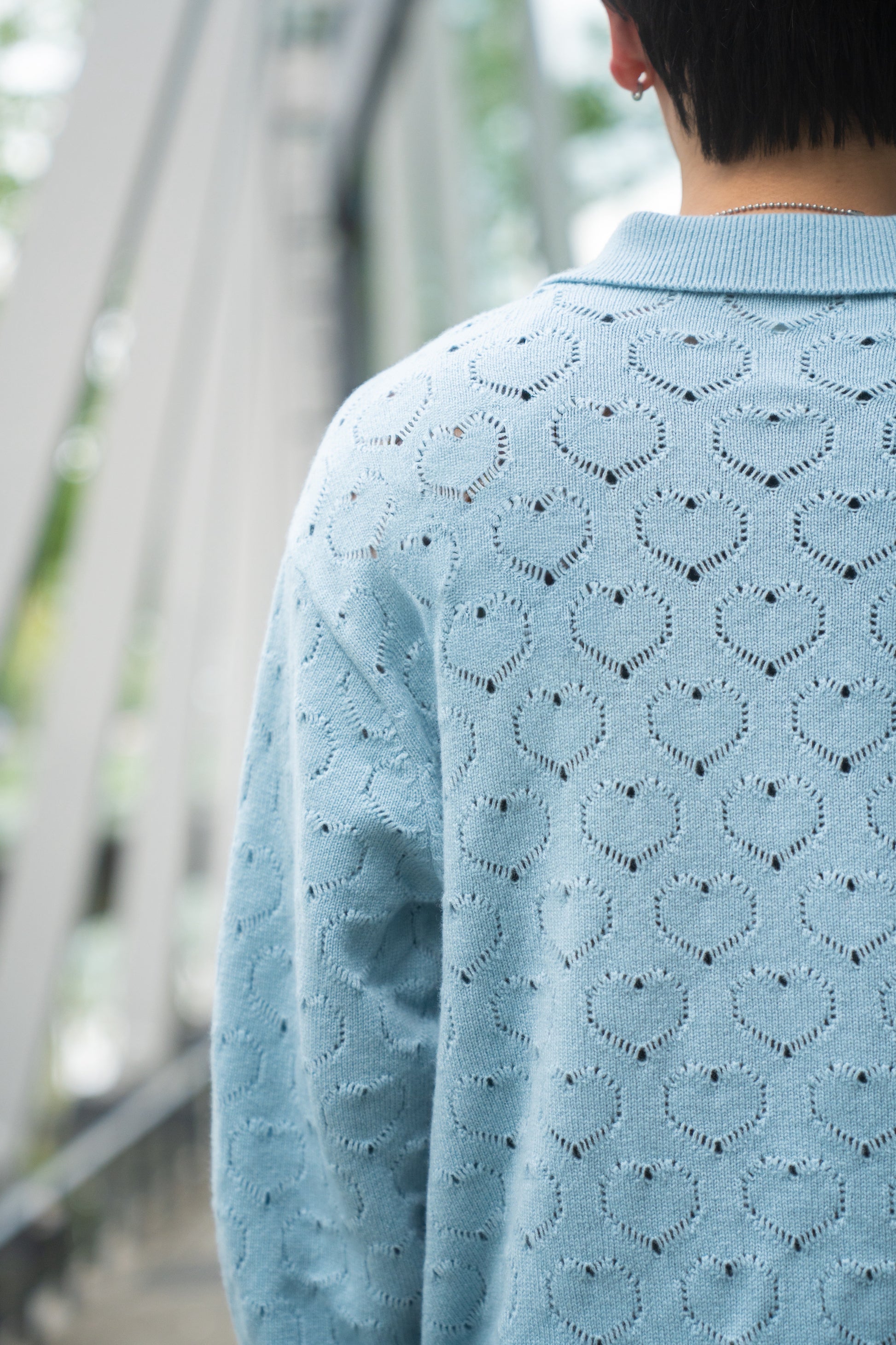 可愛らしいハート柄が特徴的なポロニット。