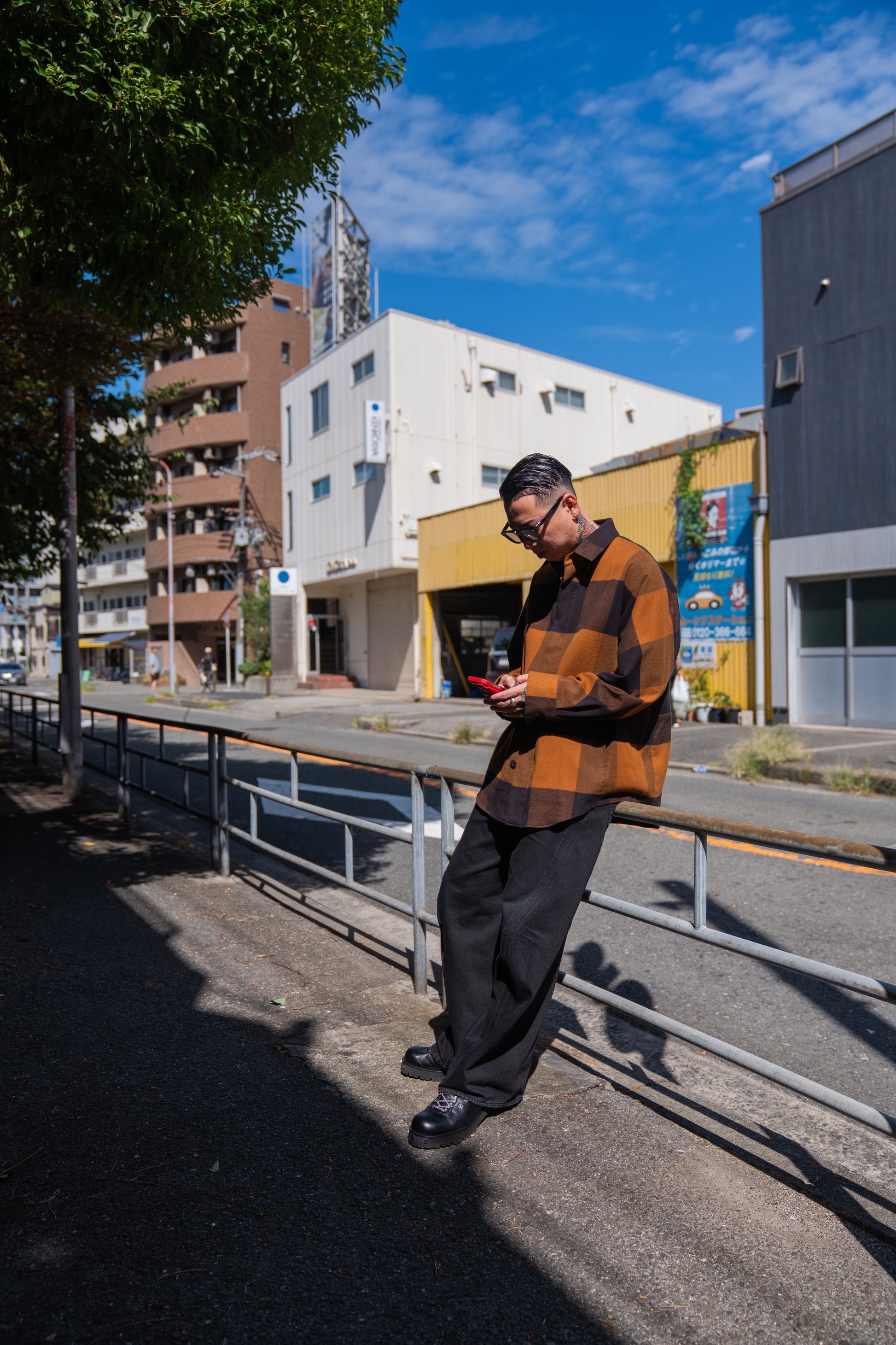 あえて大柄のチェックを採用することで、一般的なネルシャツの印象とは一線を画す、洗練された佇まいのアイテム。