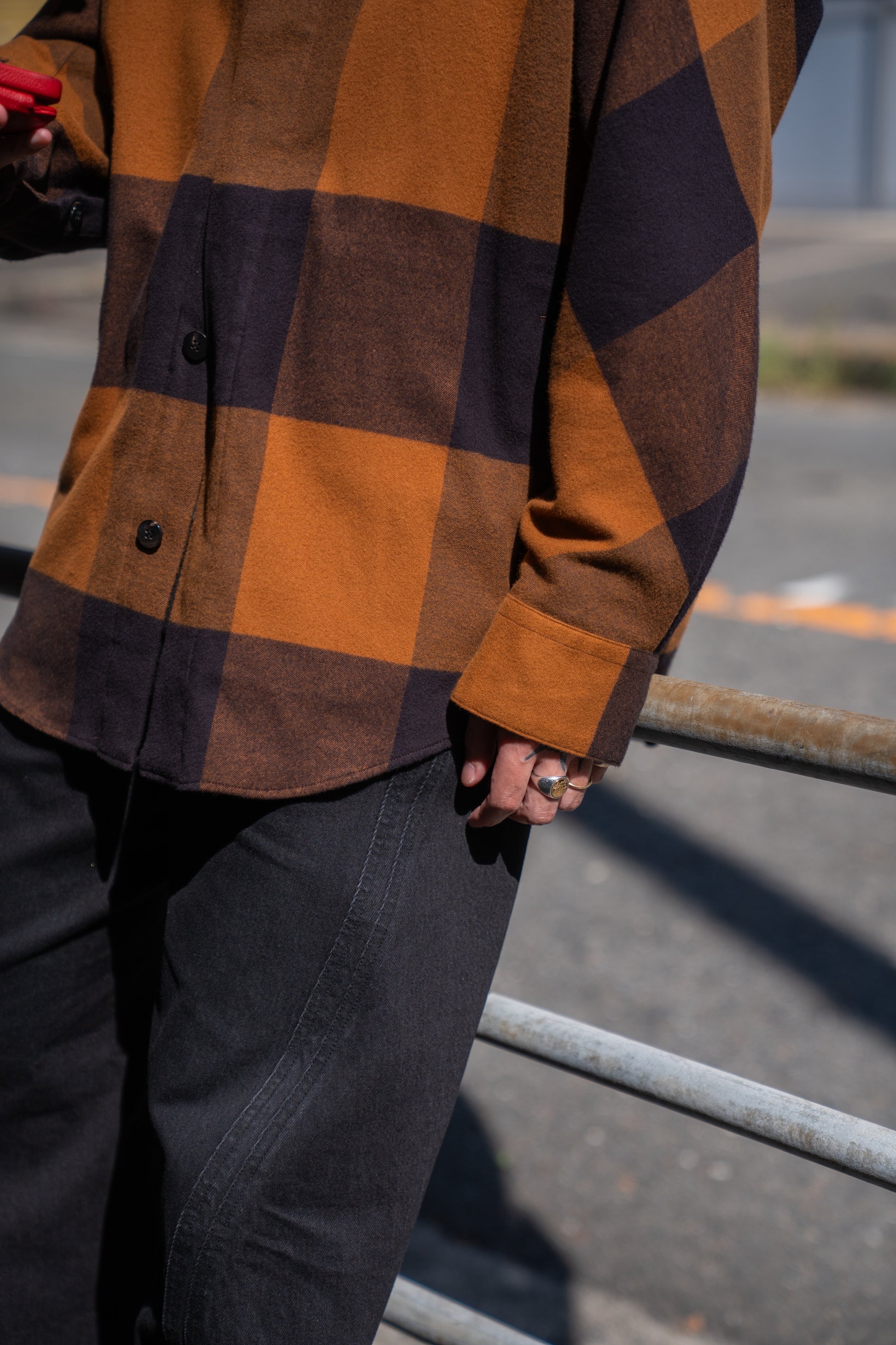 大柄のオリジナルバッファローチェックで仕立てたフランネルシャツ。