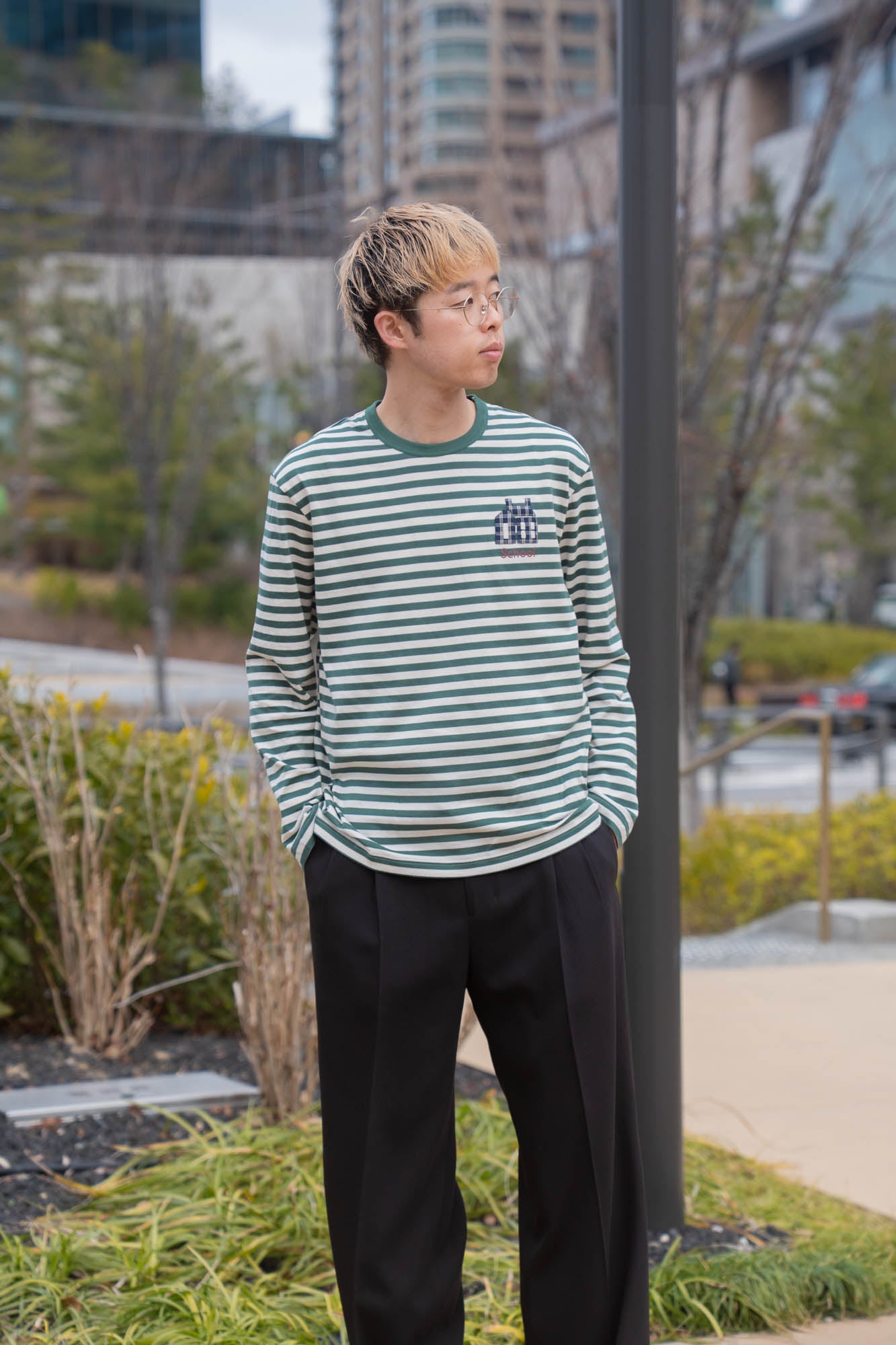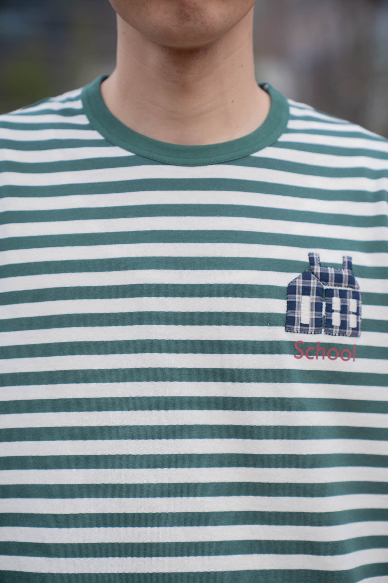 立体感のある刺繍と「School」のテキストが、KHOKIらしいストーリー性とクラフト感を感じさせるデザインです。