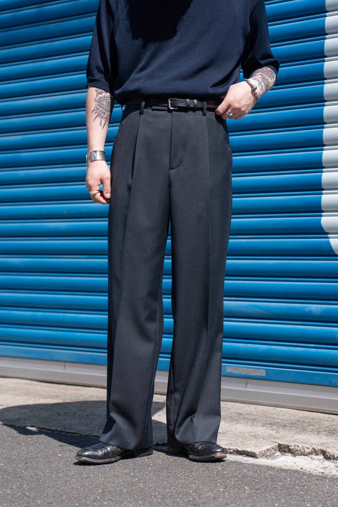 過不足なく快適に裾までスムーズに落ちるシルエットは、10年後に取り出して着てもモダンを失わないように多くの努力をしたパンツであり、単品でも様々なトップスやアウターとマッチ可能です。