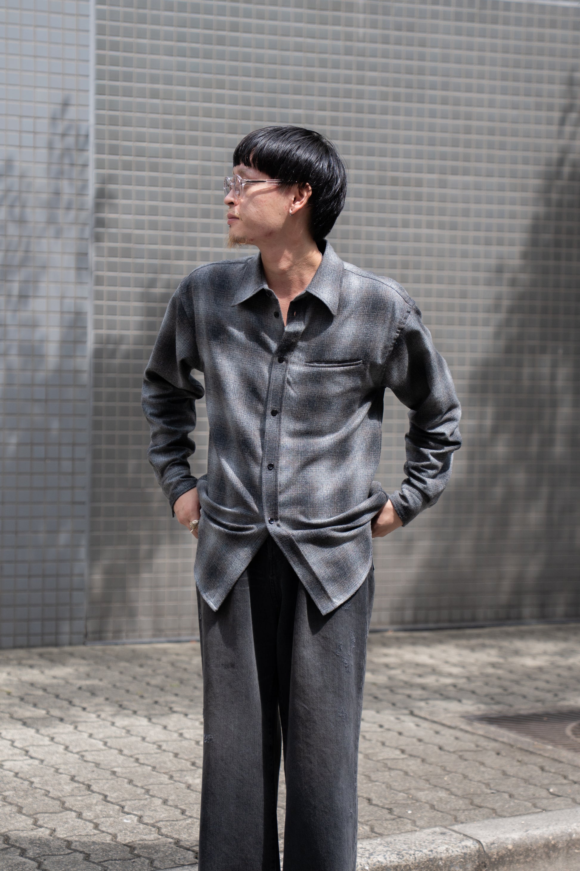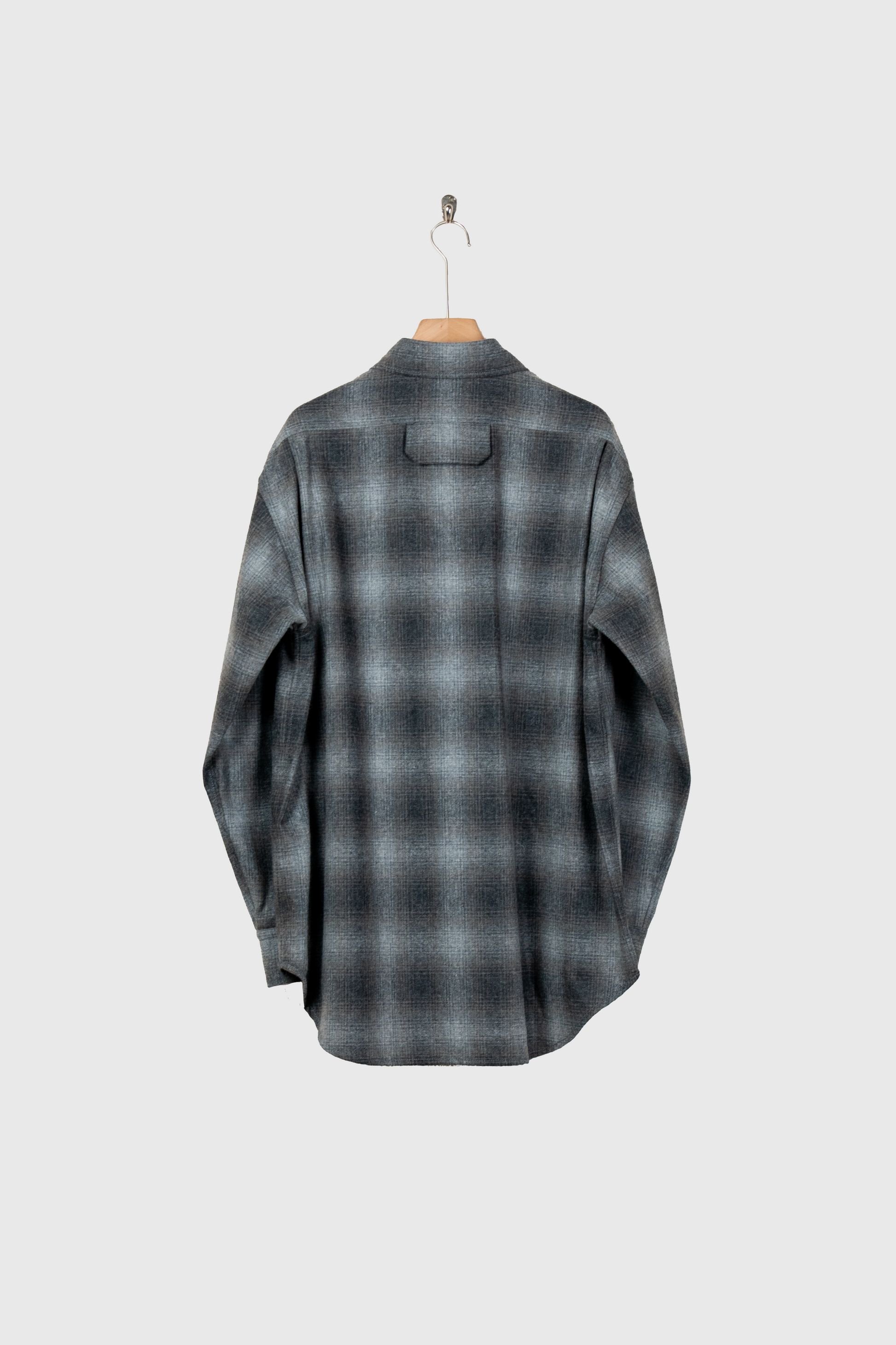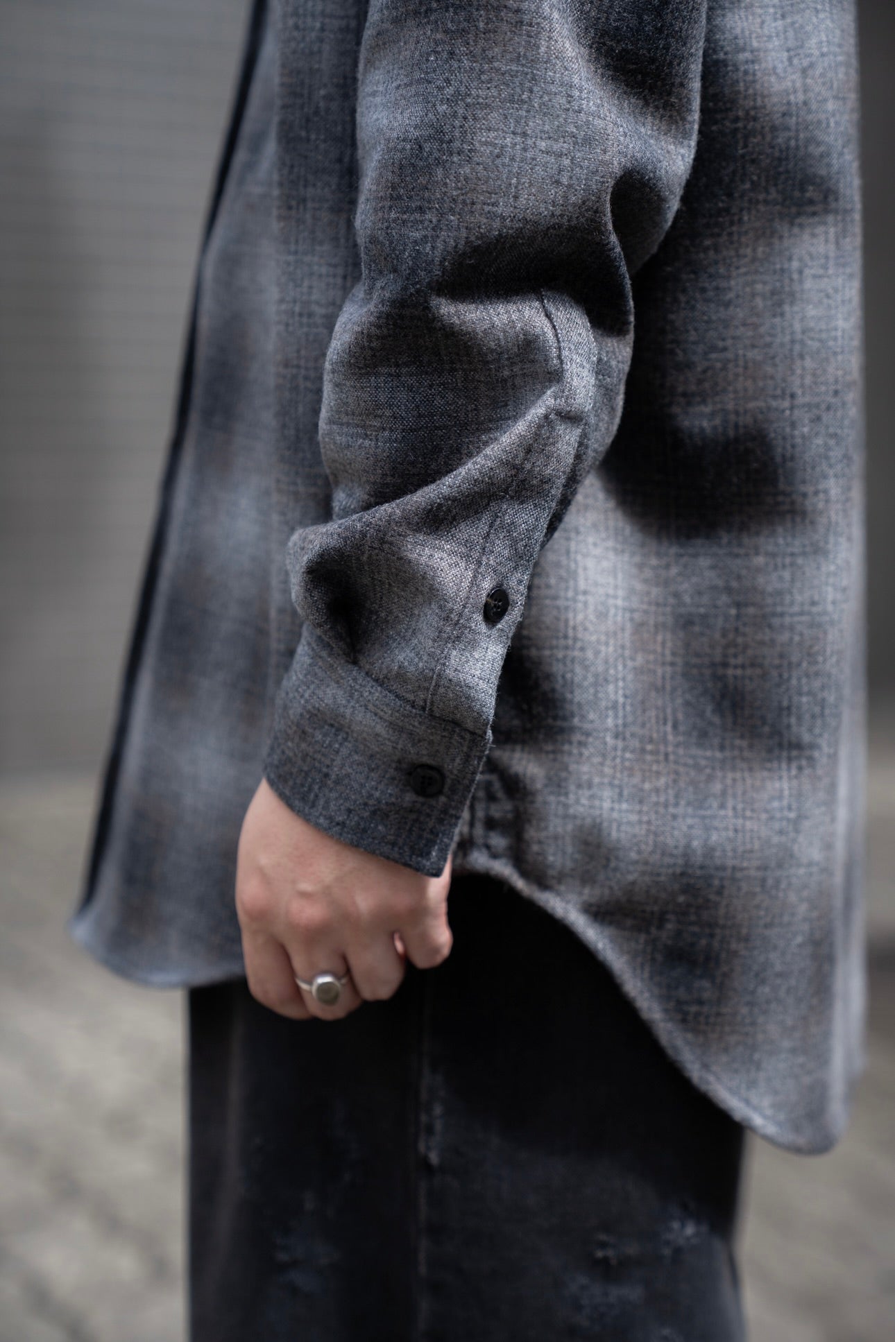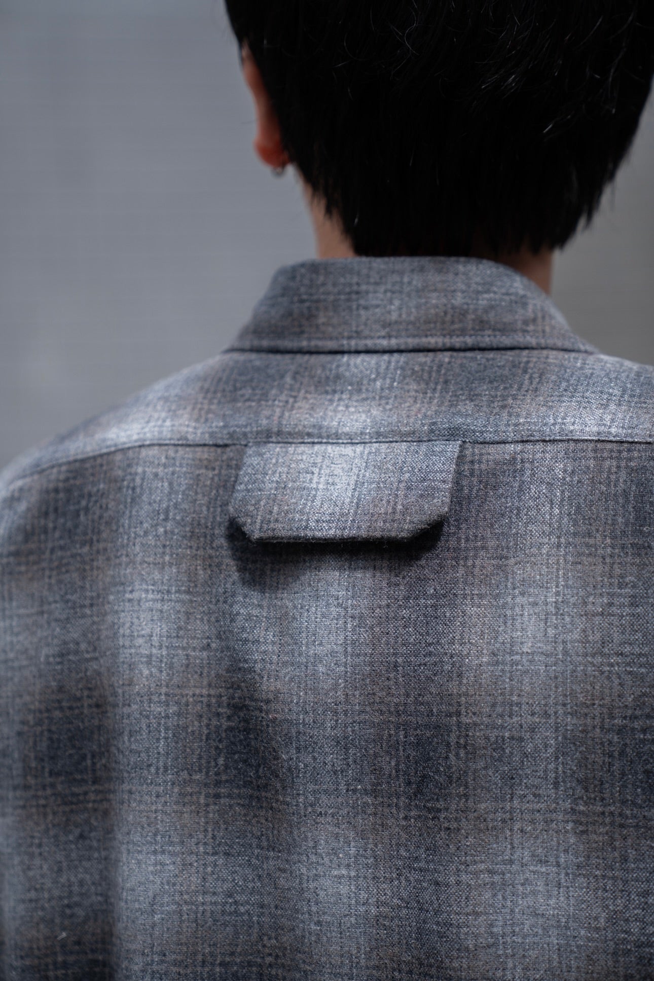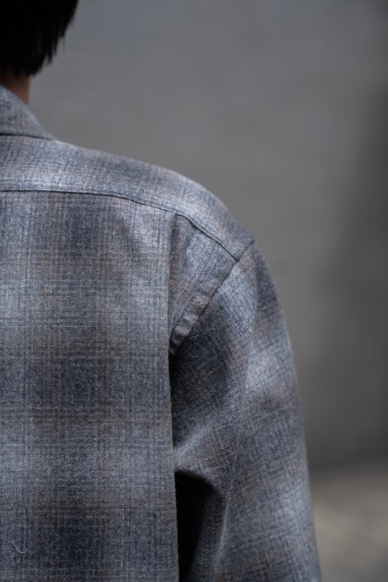 色目の美しいオンブレチェック柄のミックスウールで、ニュートラルなシャツを仕立てた1着。