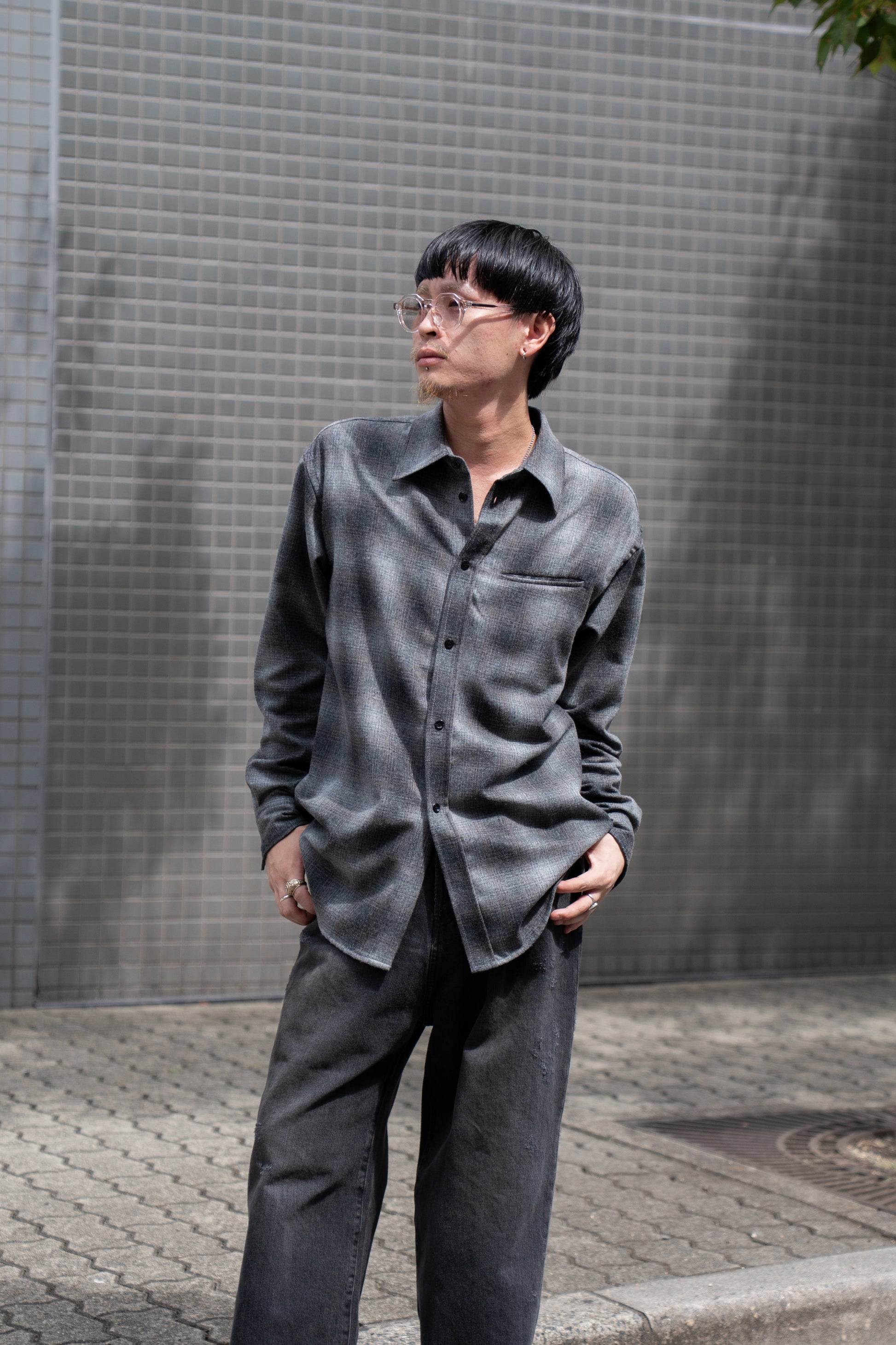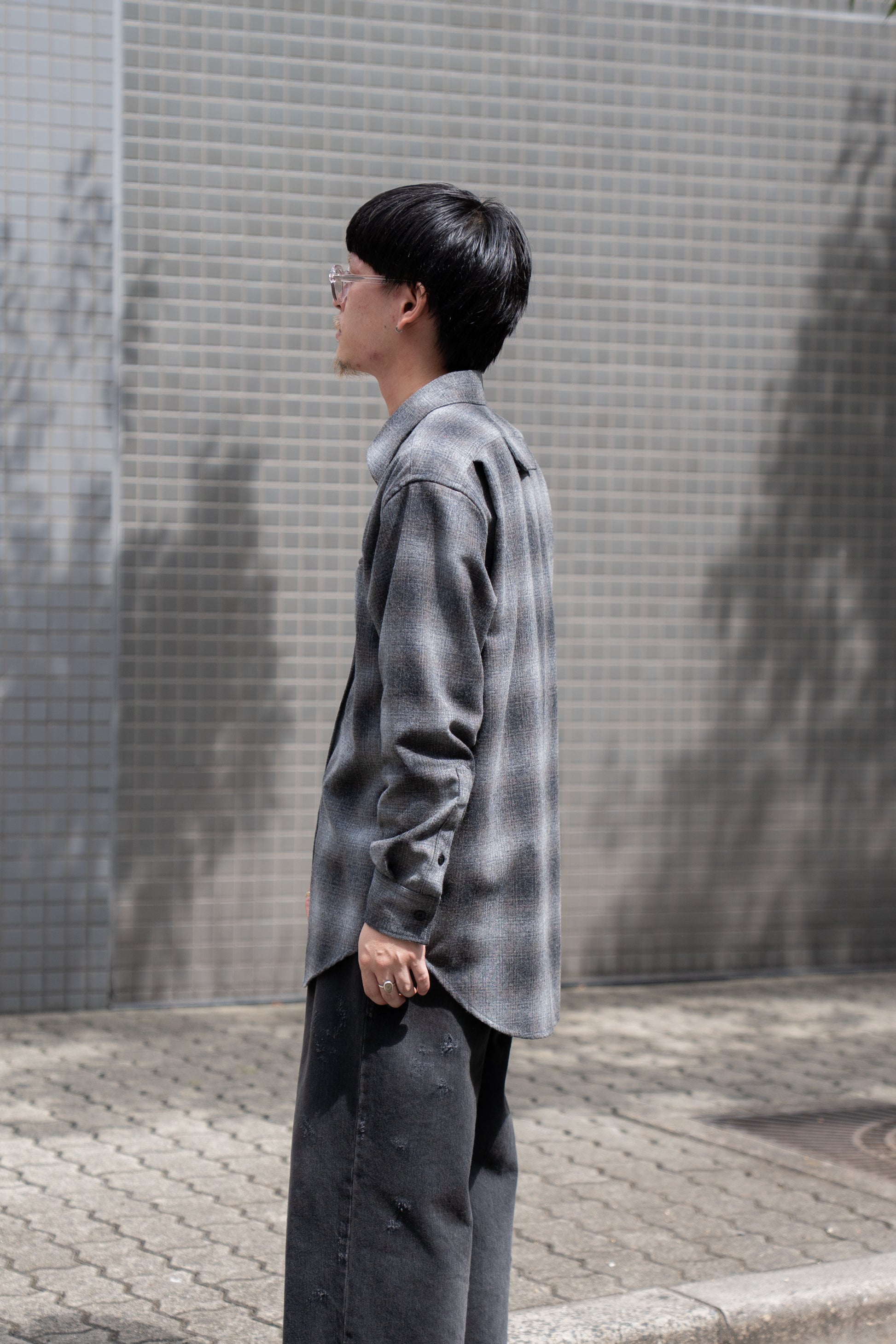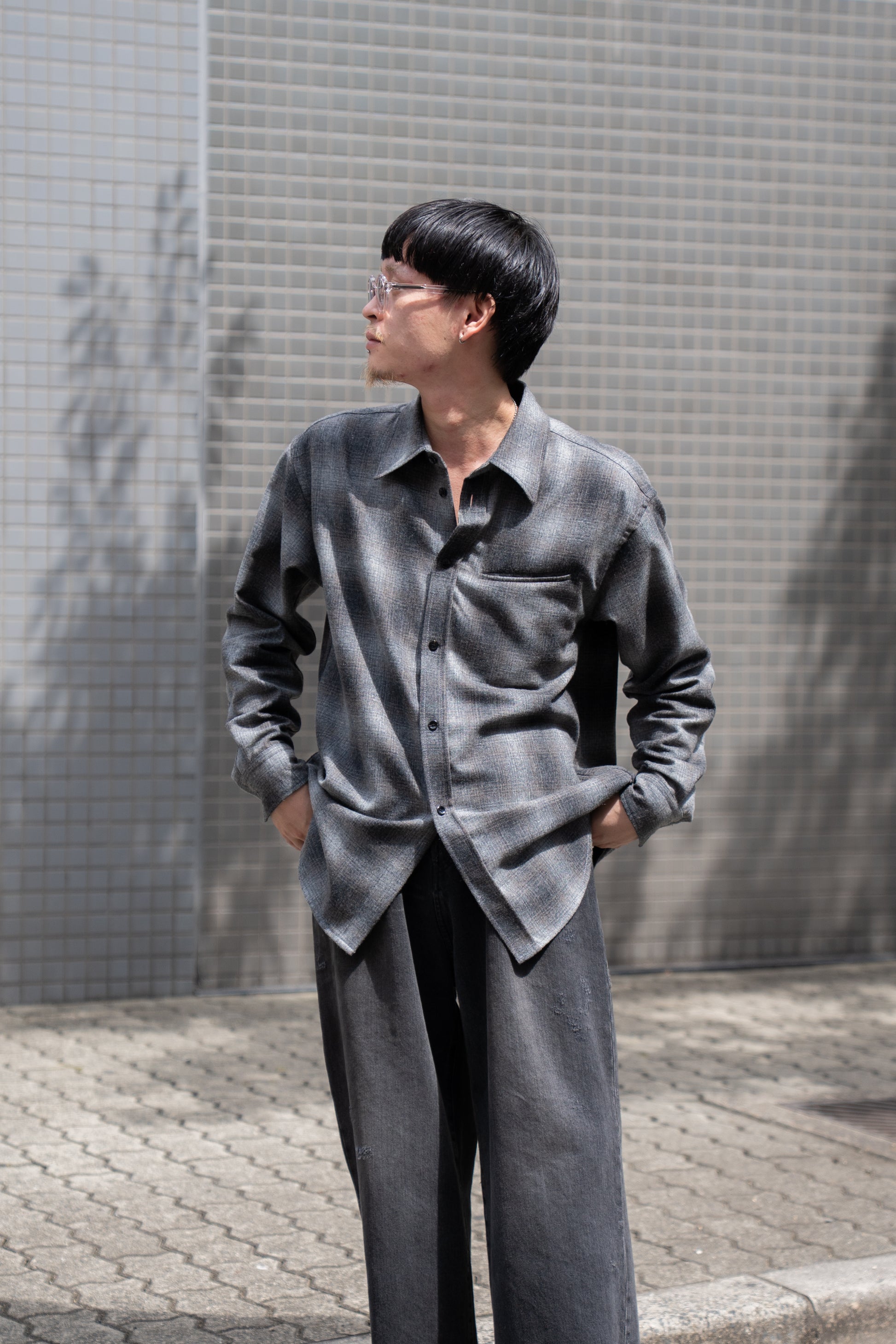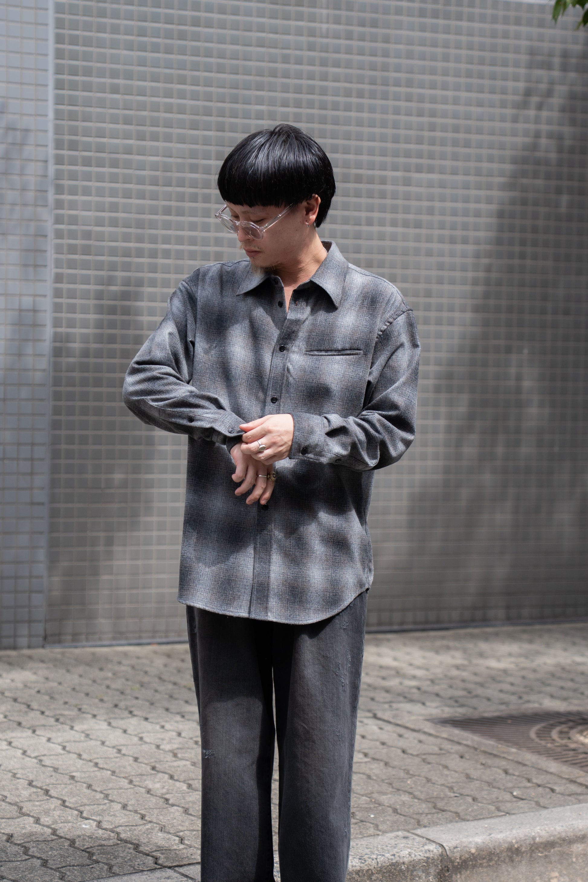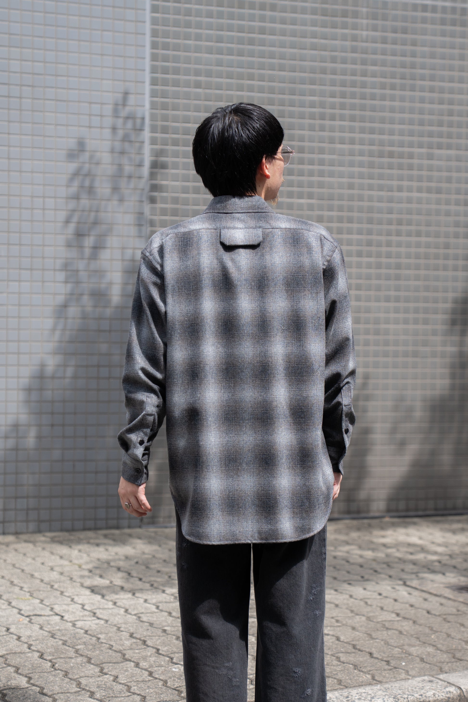 色目の美しいオンブレチェック柄のミックスウールで、ニュートラルなシャツを仕立てた1着。