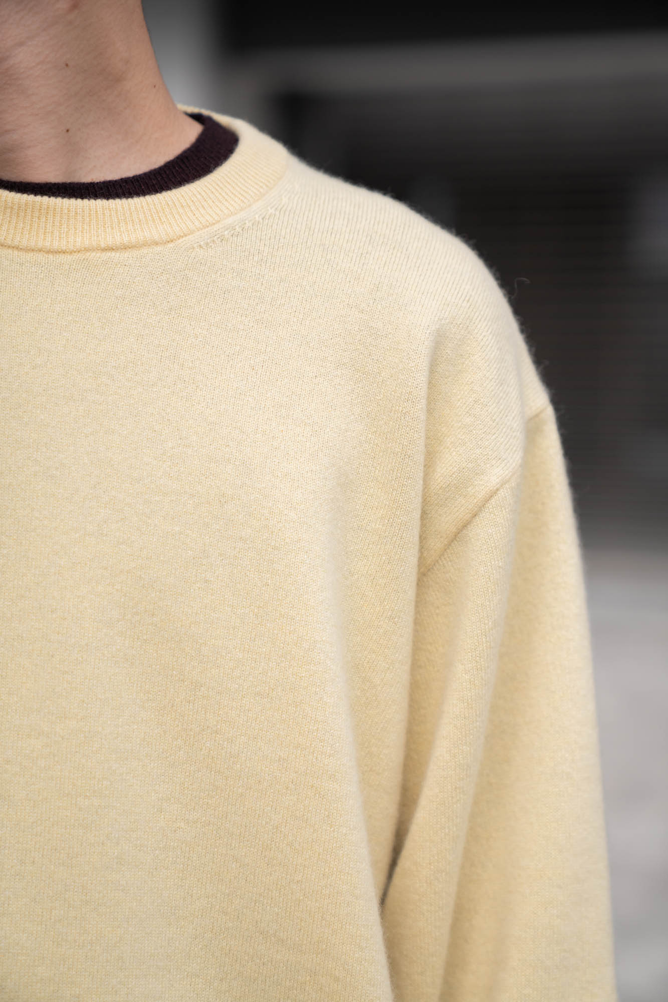 厳選された高品質のカシミヤ原料を丁寧に紡いだ高級カシミヤ糸を使用したクルーネックセーター。