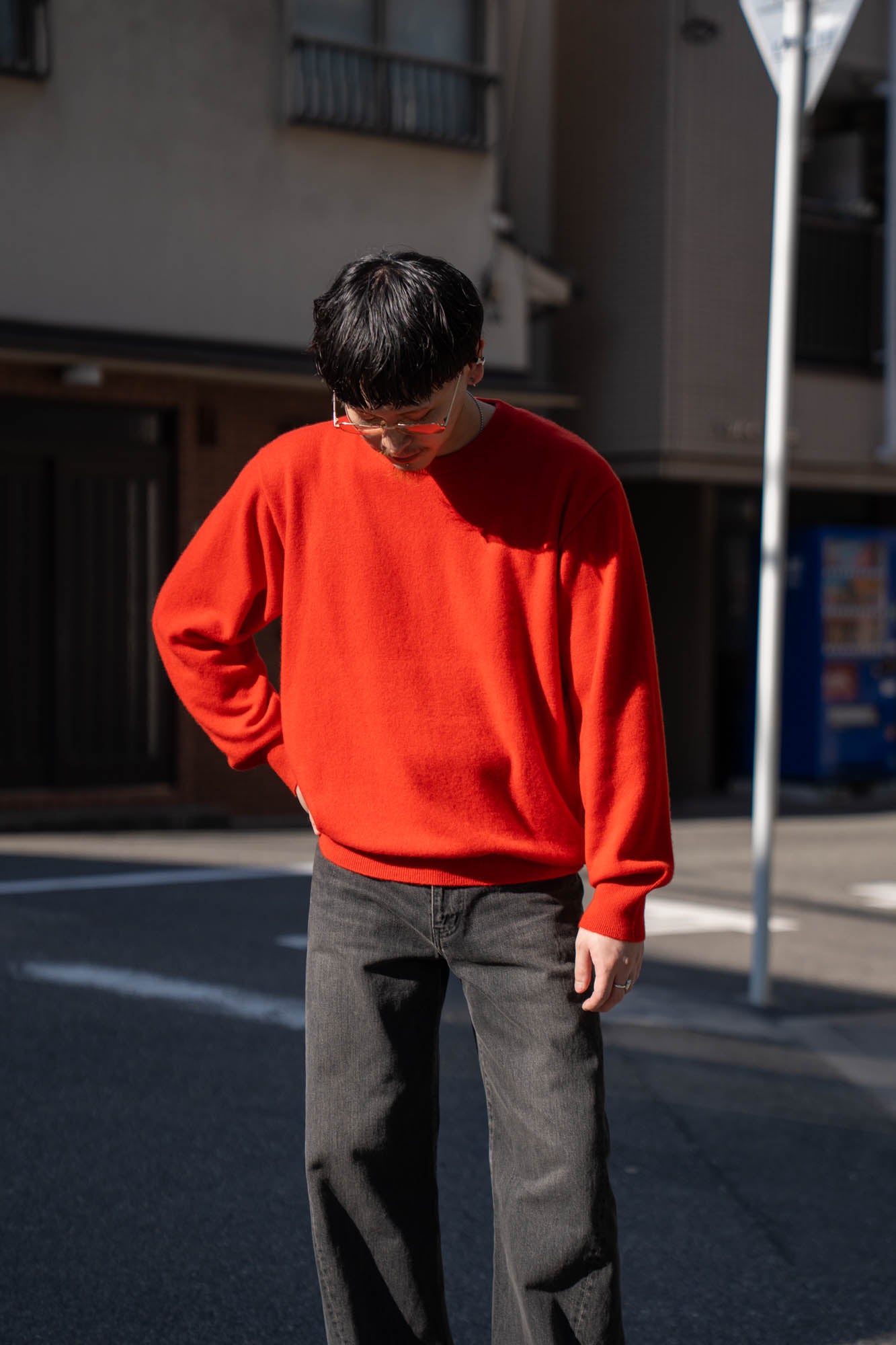 厳選された高品質のカシミヤ原料を丁寧に紡いだ高級カシミヤ糸を使用したクルーネックセーター。